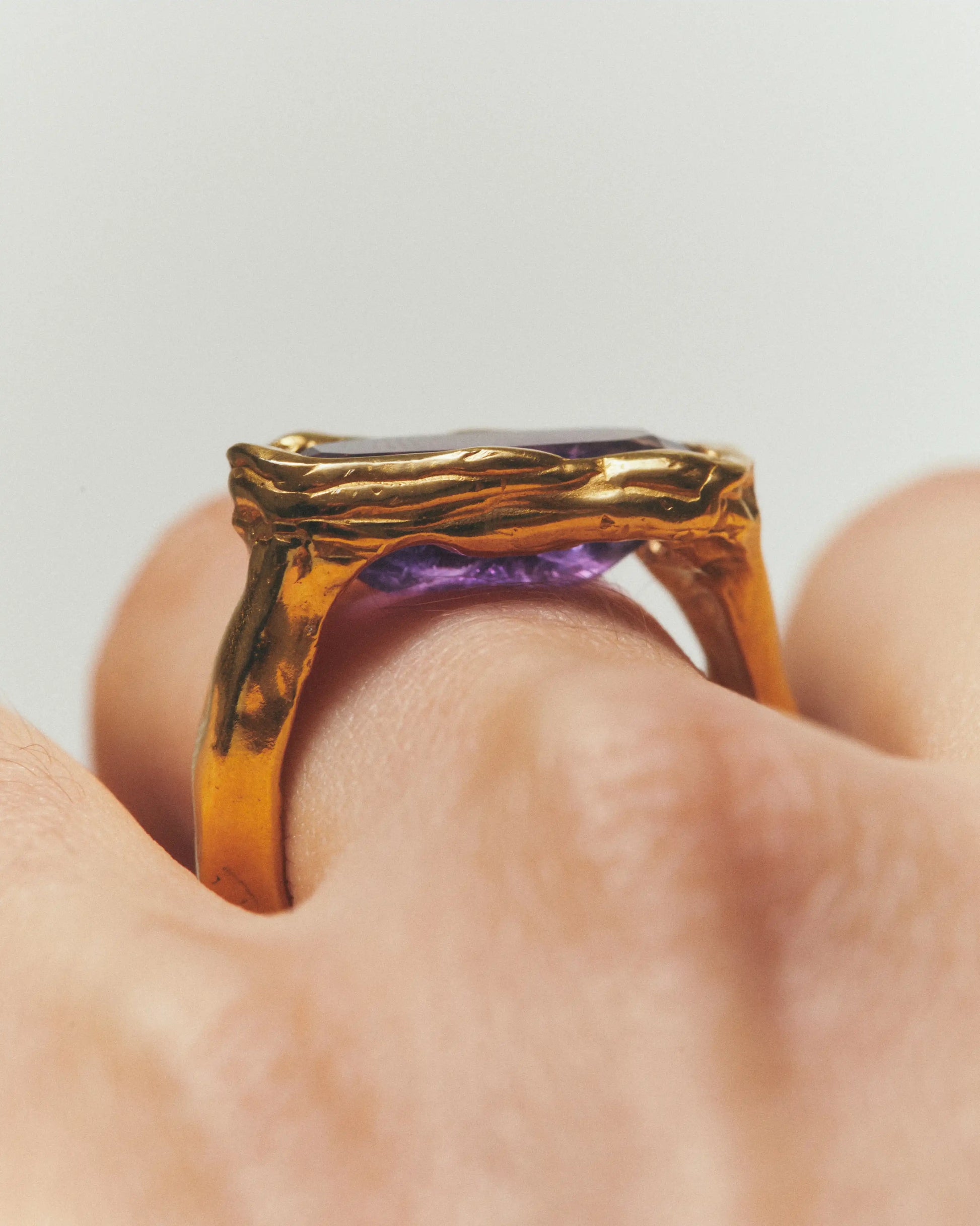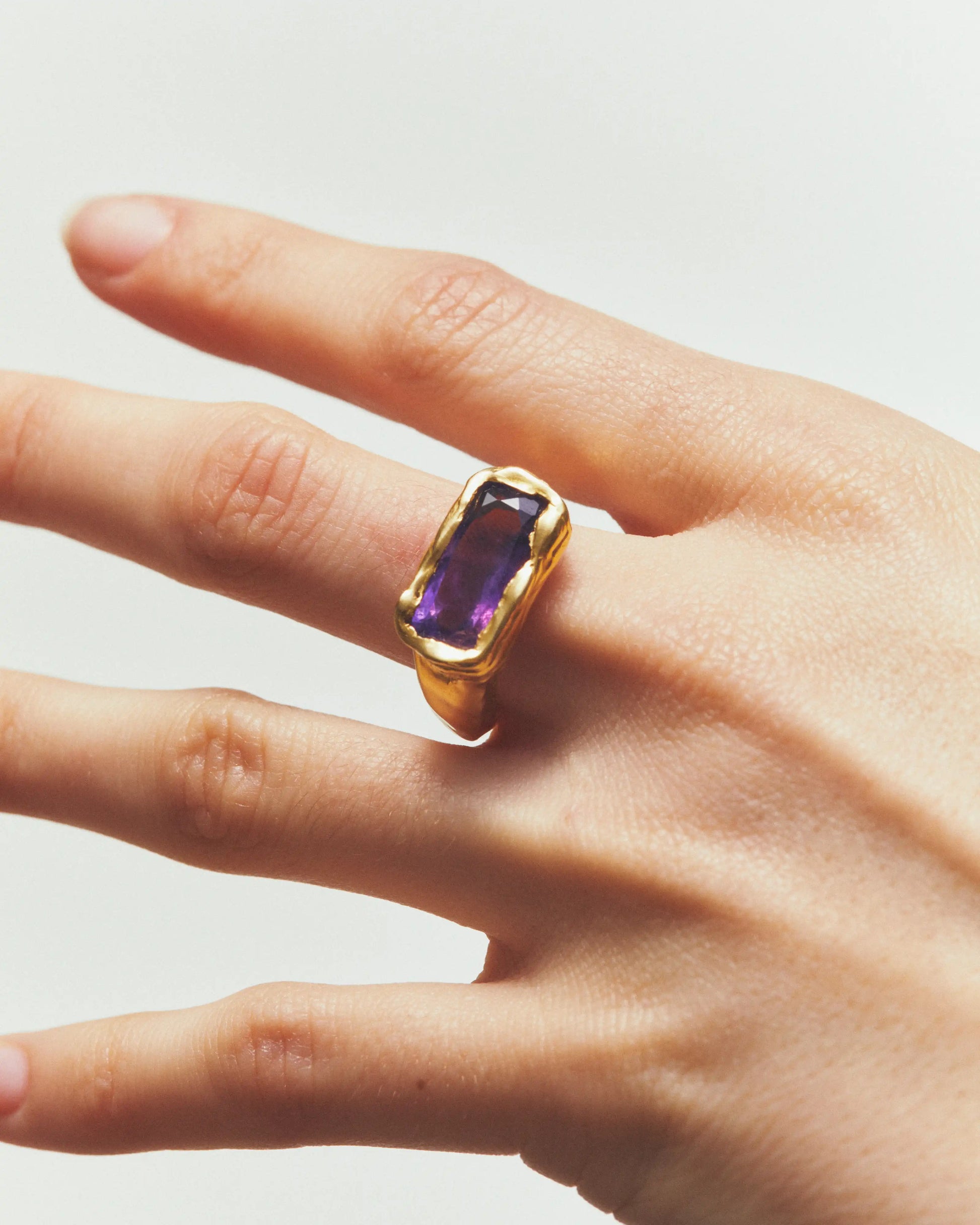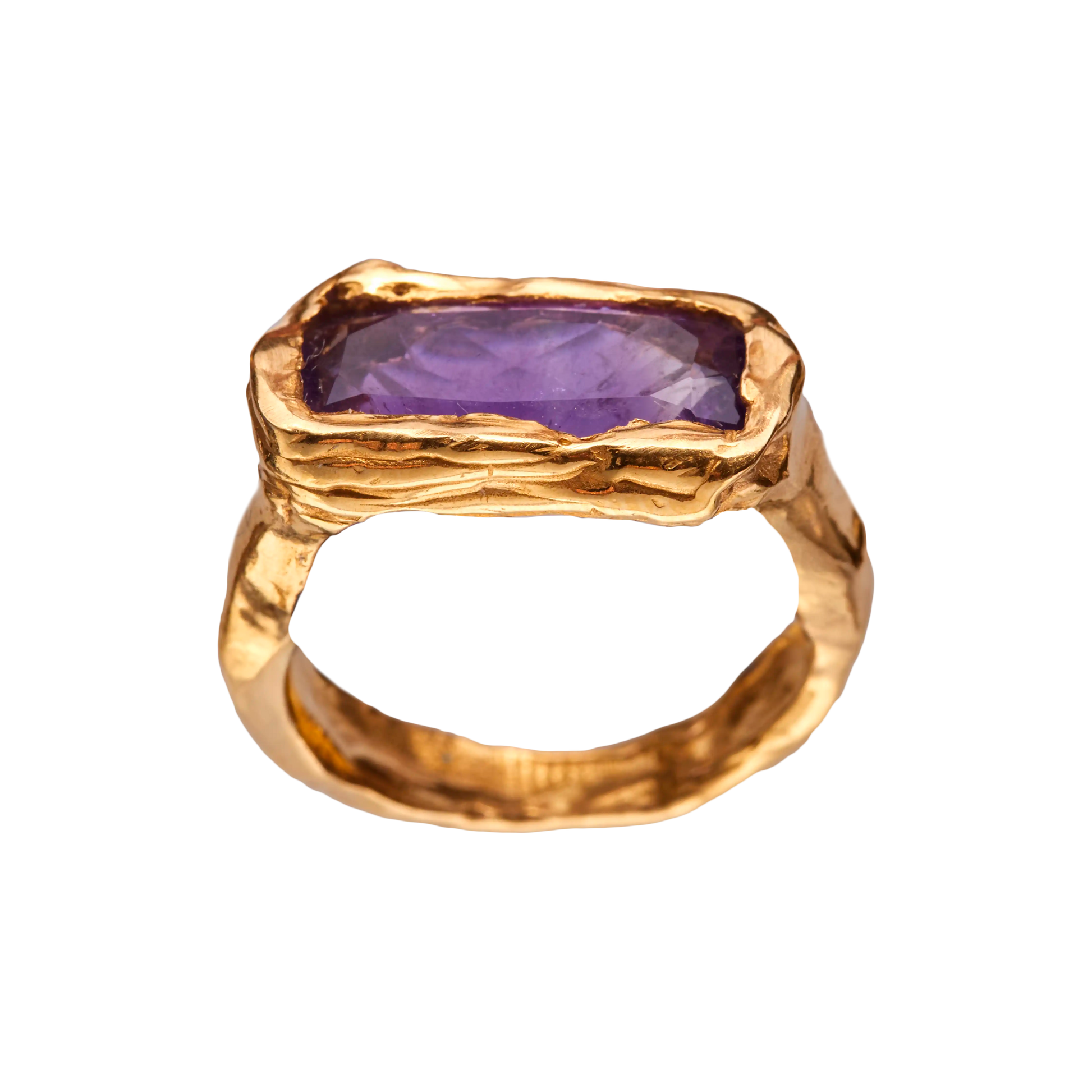 Febrero, handmade gold plated recycled 925 sterling silver ring with a natural Amethyst gem.