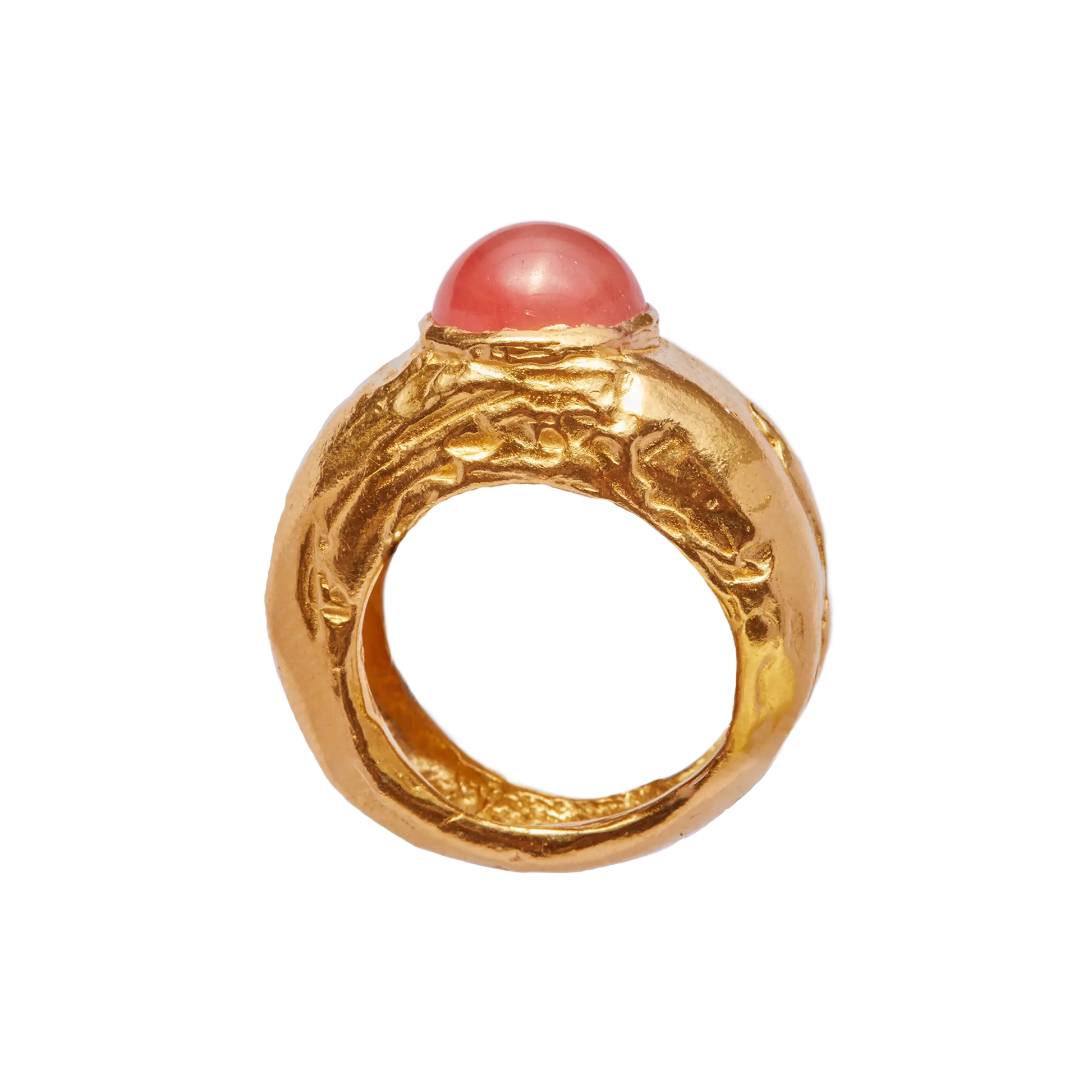 Fruto Cherry, handmade gold plated recycled 925 sterling silver ring with rose crystal stone.