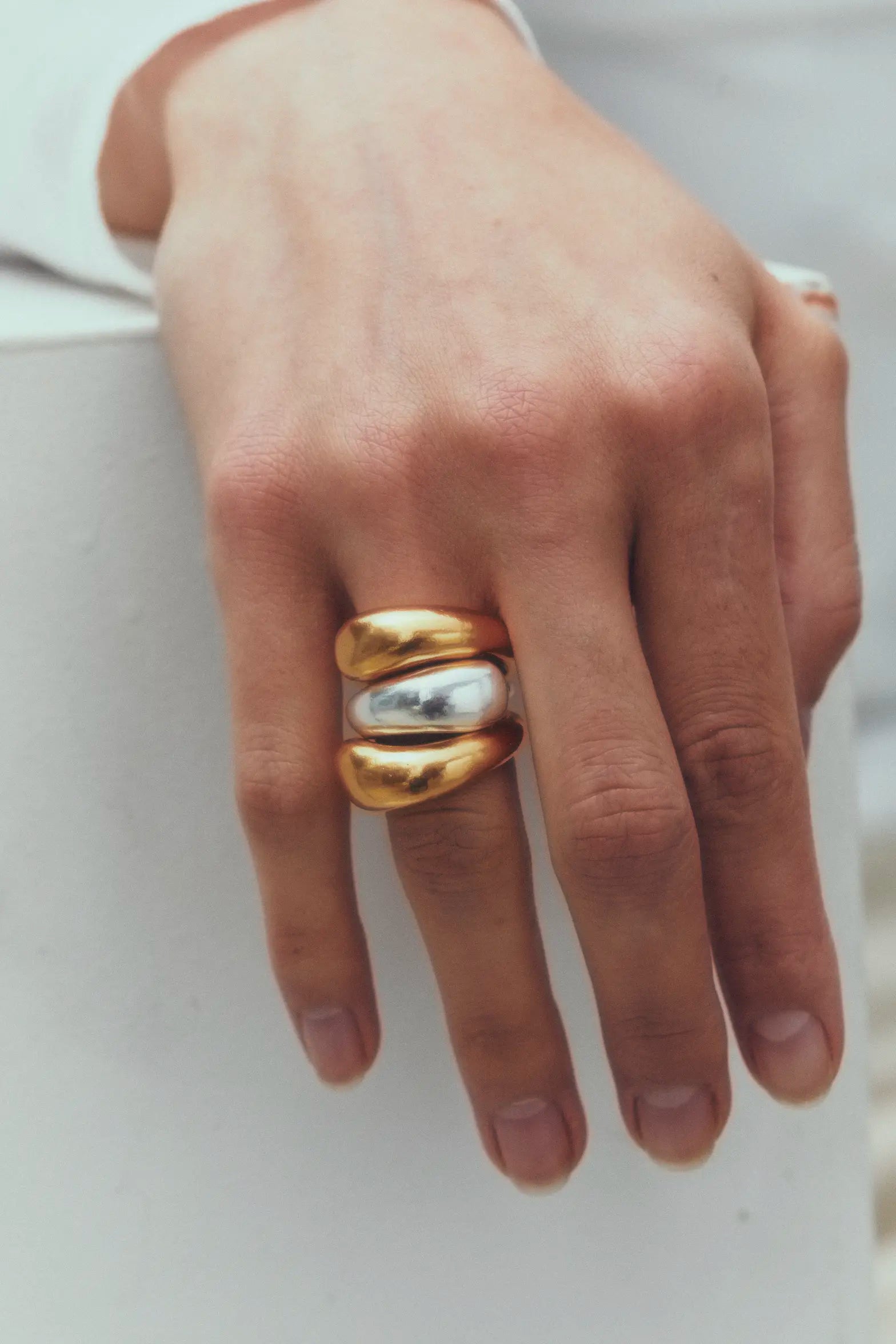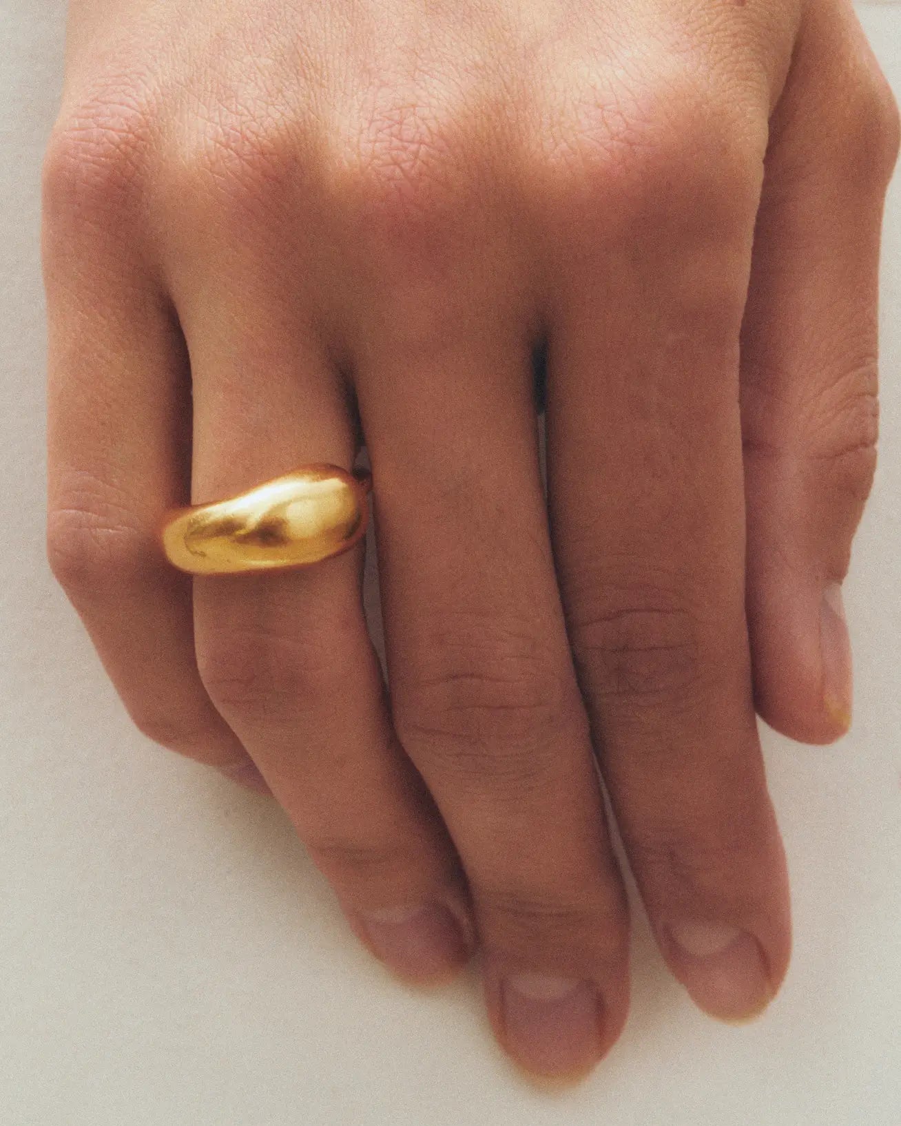 Gota, handmade gold plated recycled 925 sterling silver ring.