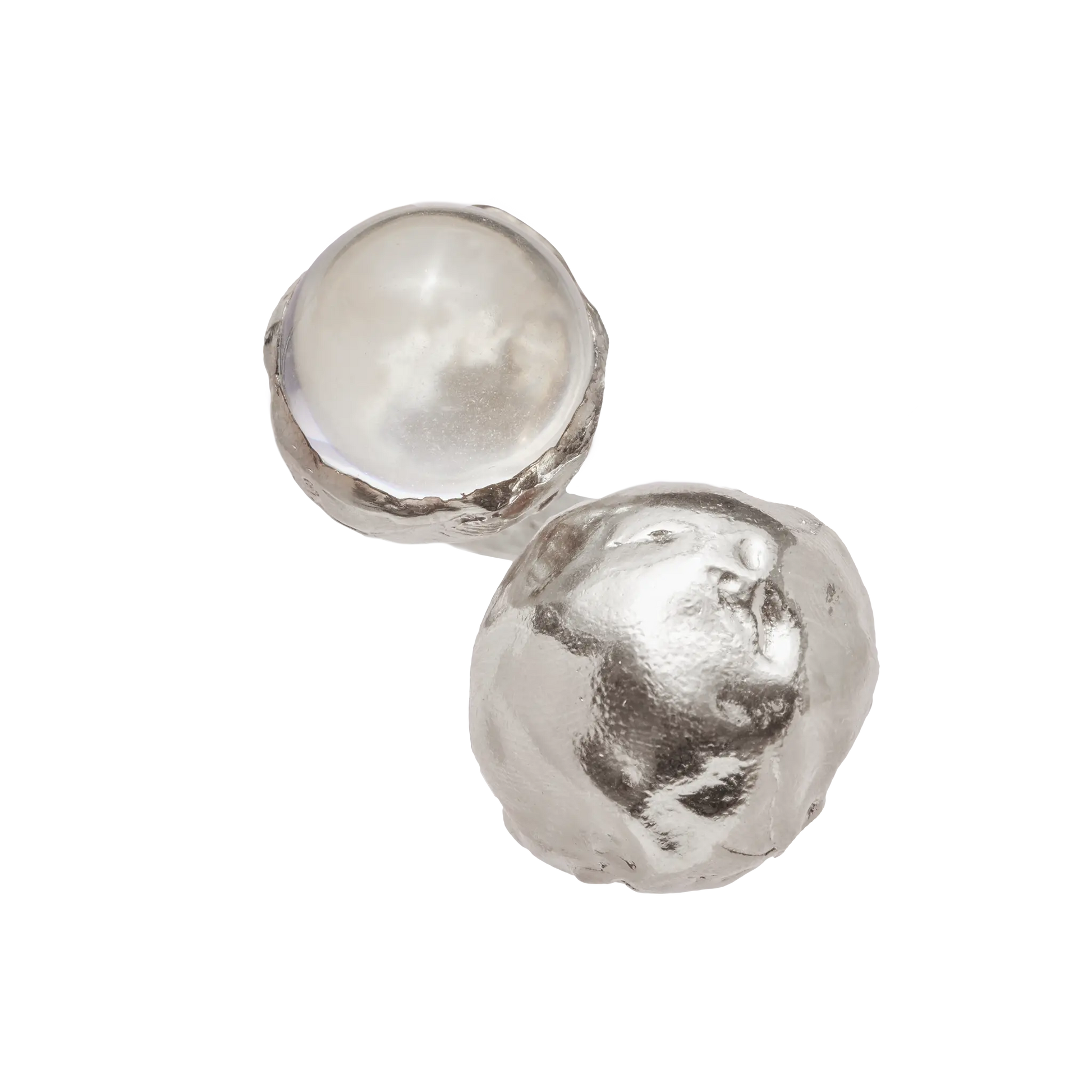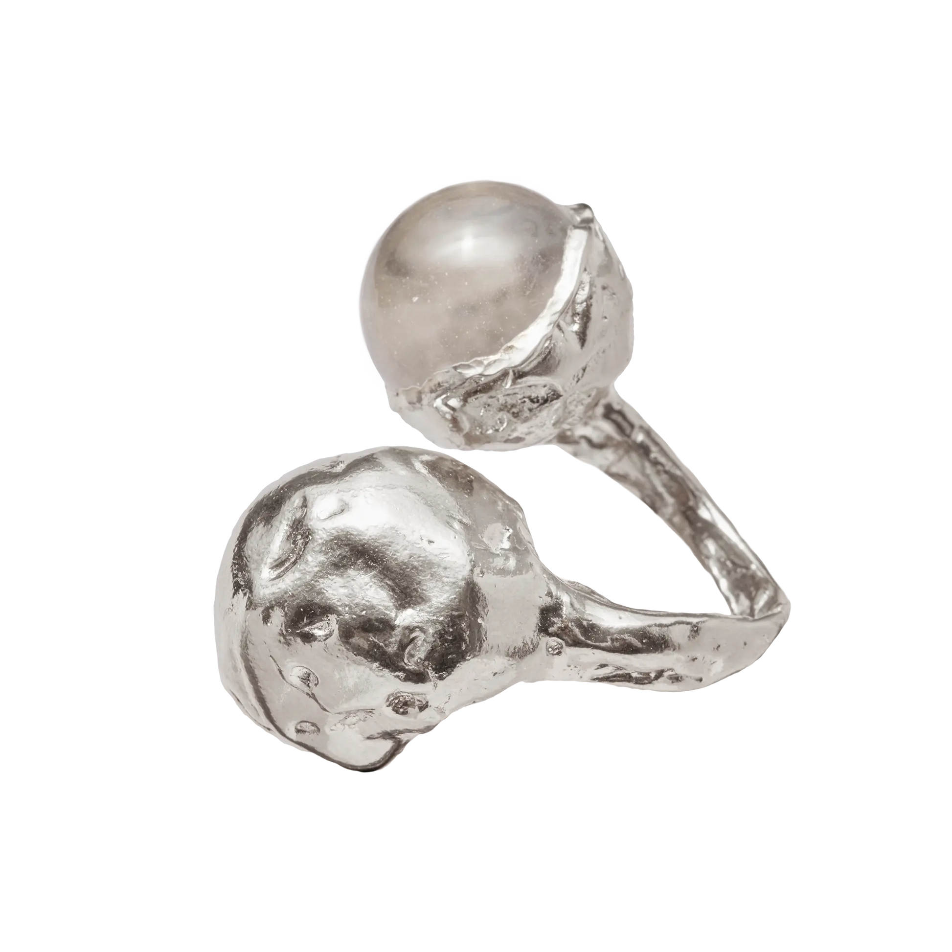 Guinda Agua, handmade recycled 925 sterling silver ring with white crystal stone.