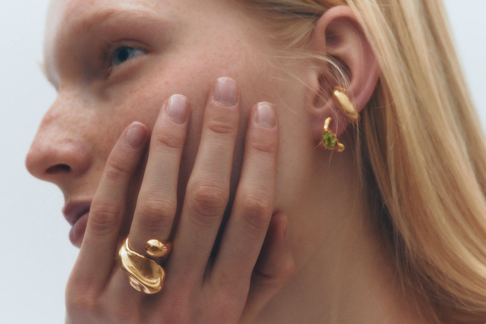 Helio, handmade gold plated recycled 925 sterling silver ring.