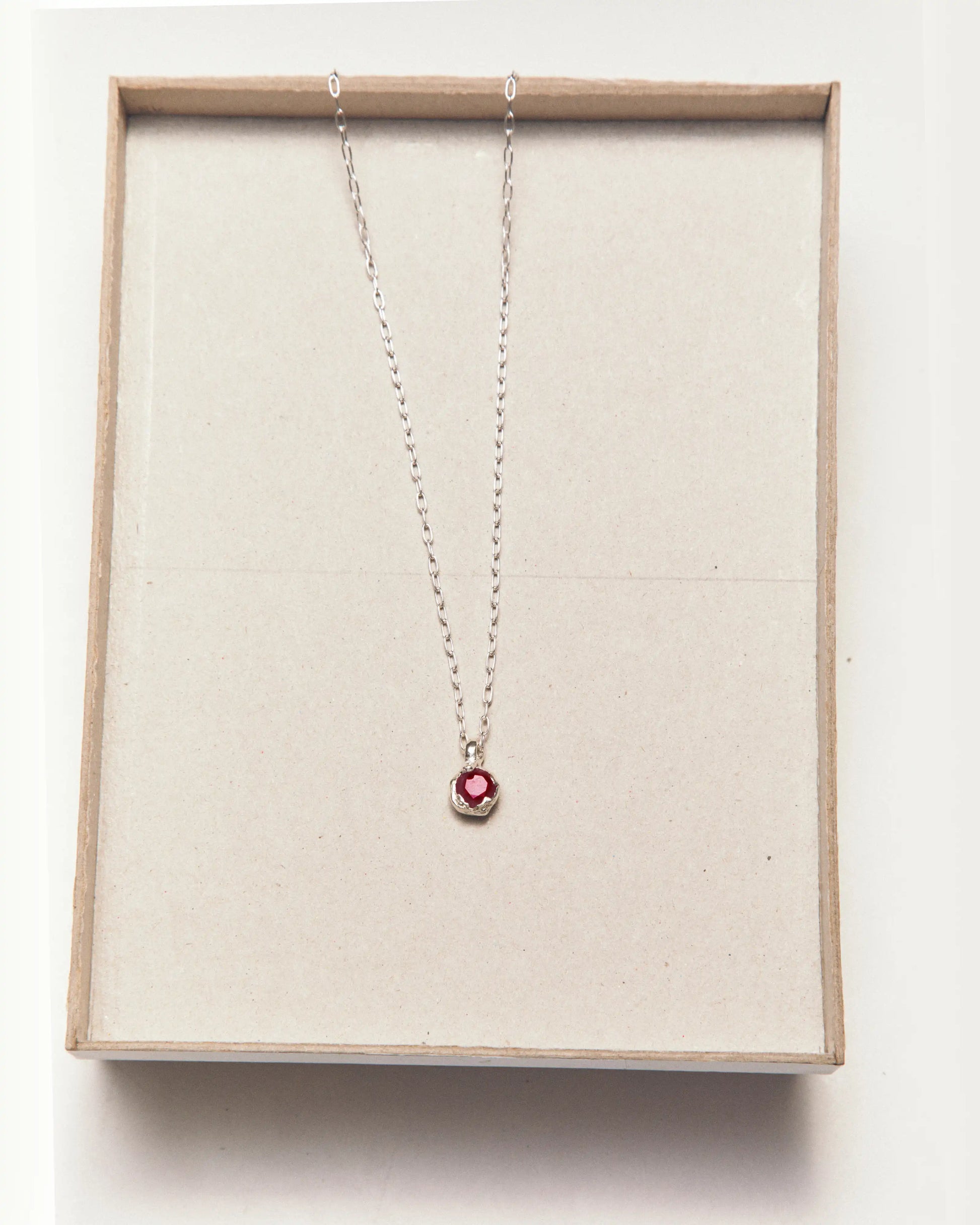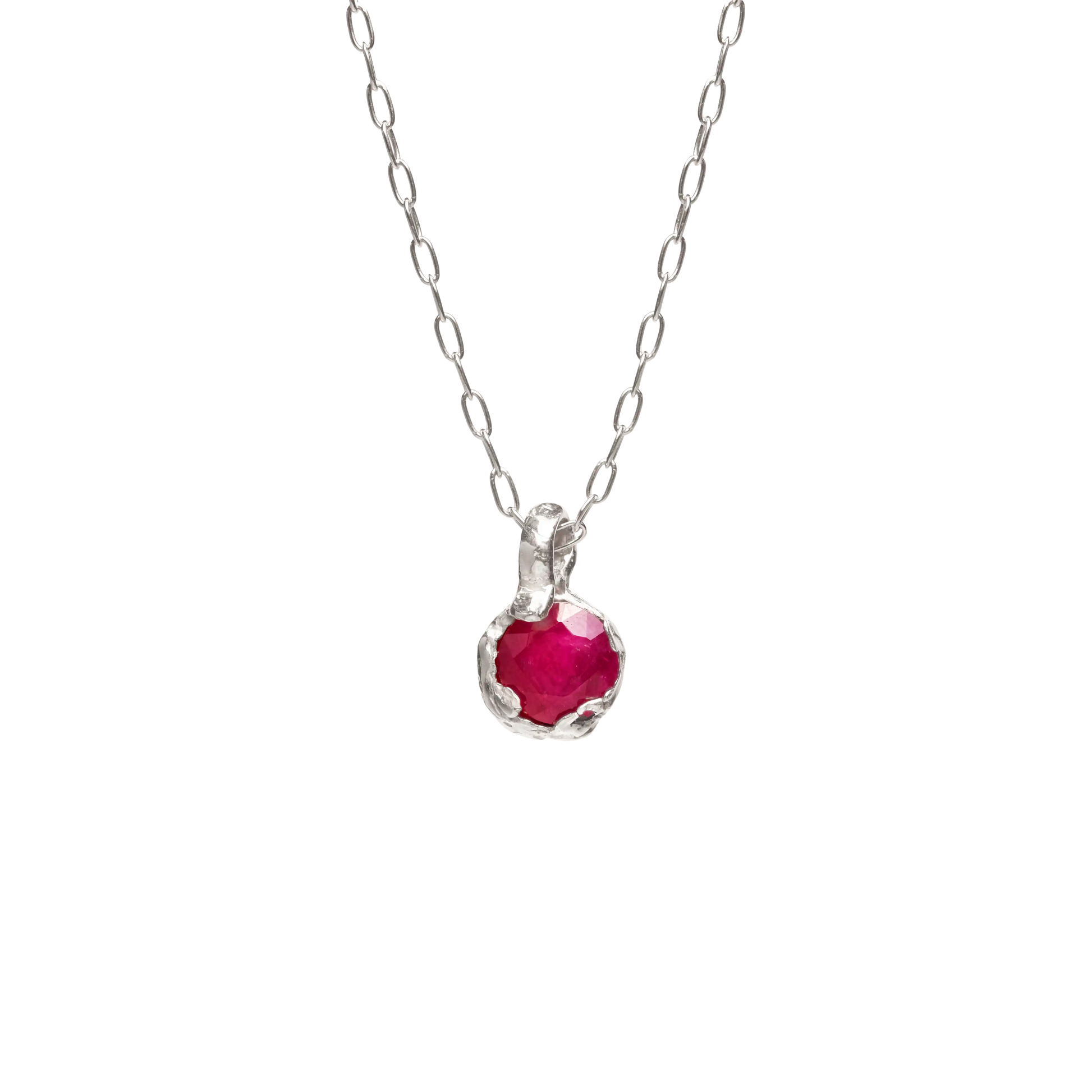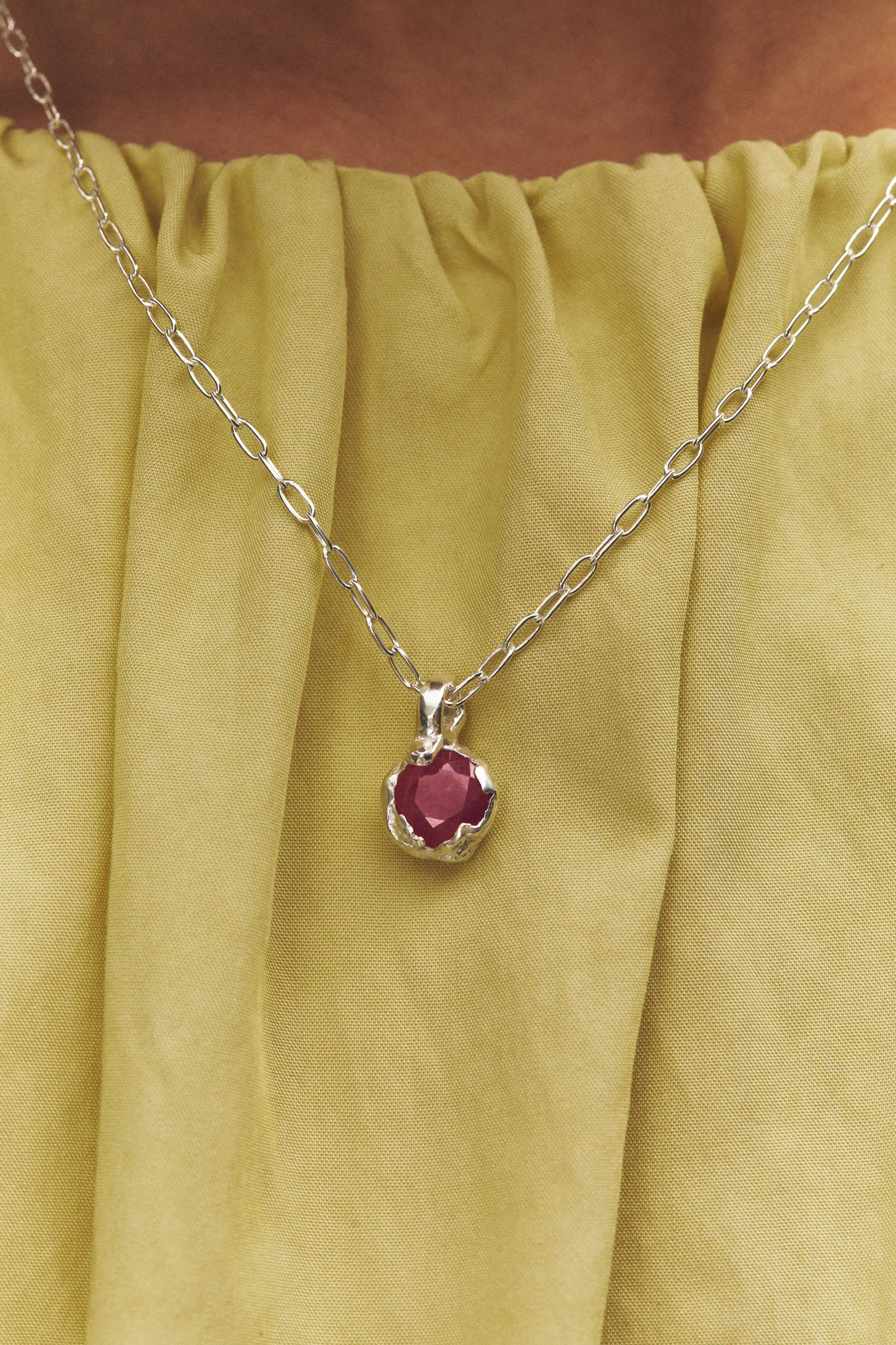 Julio, handmade recycled 925 sterling silver necklace with a natural Ruby gem.