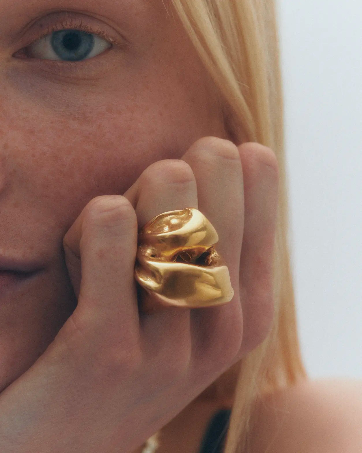 Malva, handmade gold plated recycled 925 sterling silver ring.