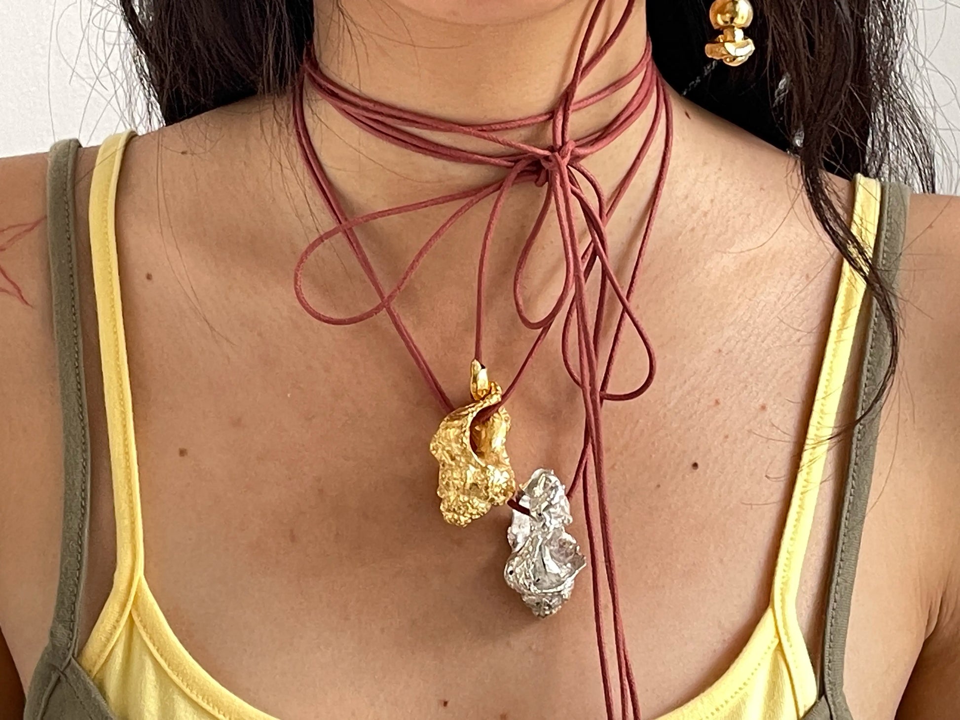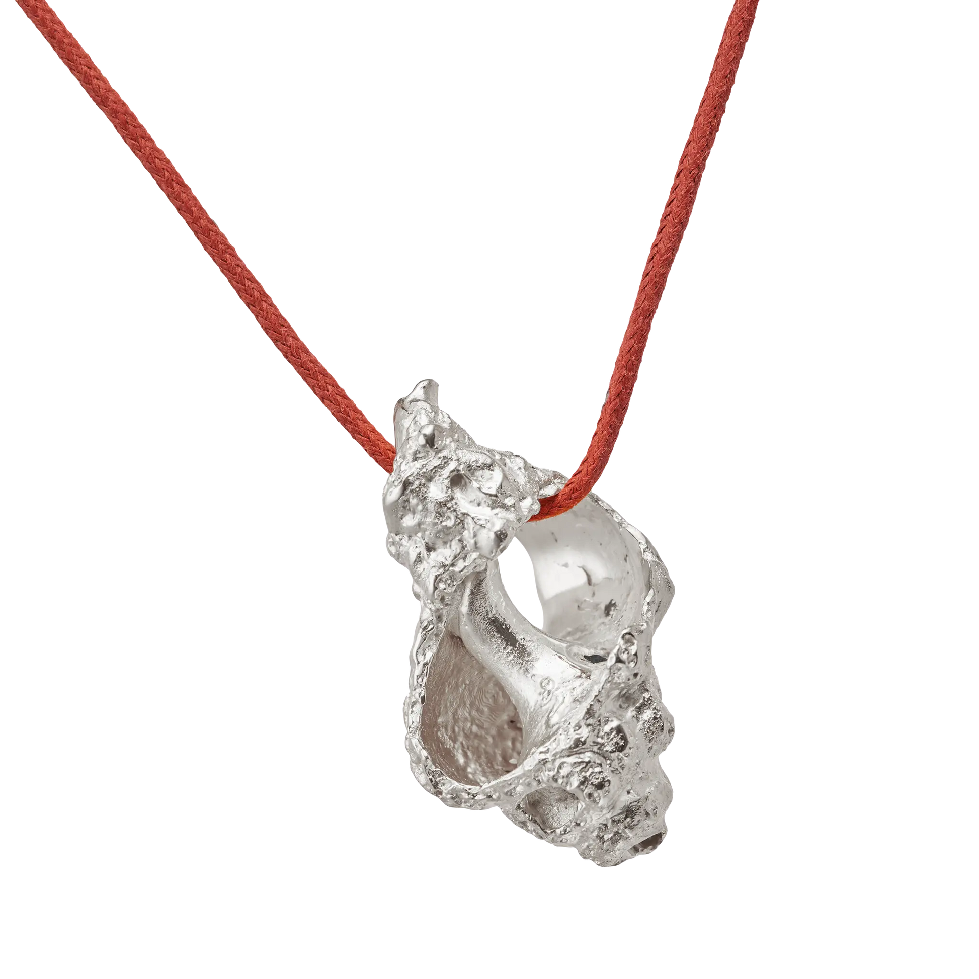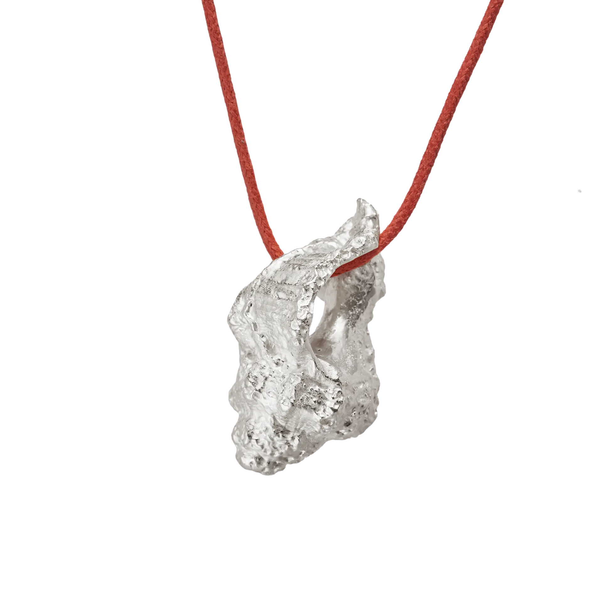 Marea, handmade recycled 925 sterling silver necklace with a pink cord.