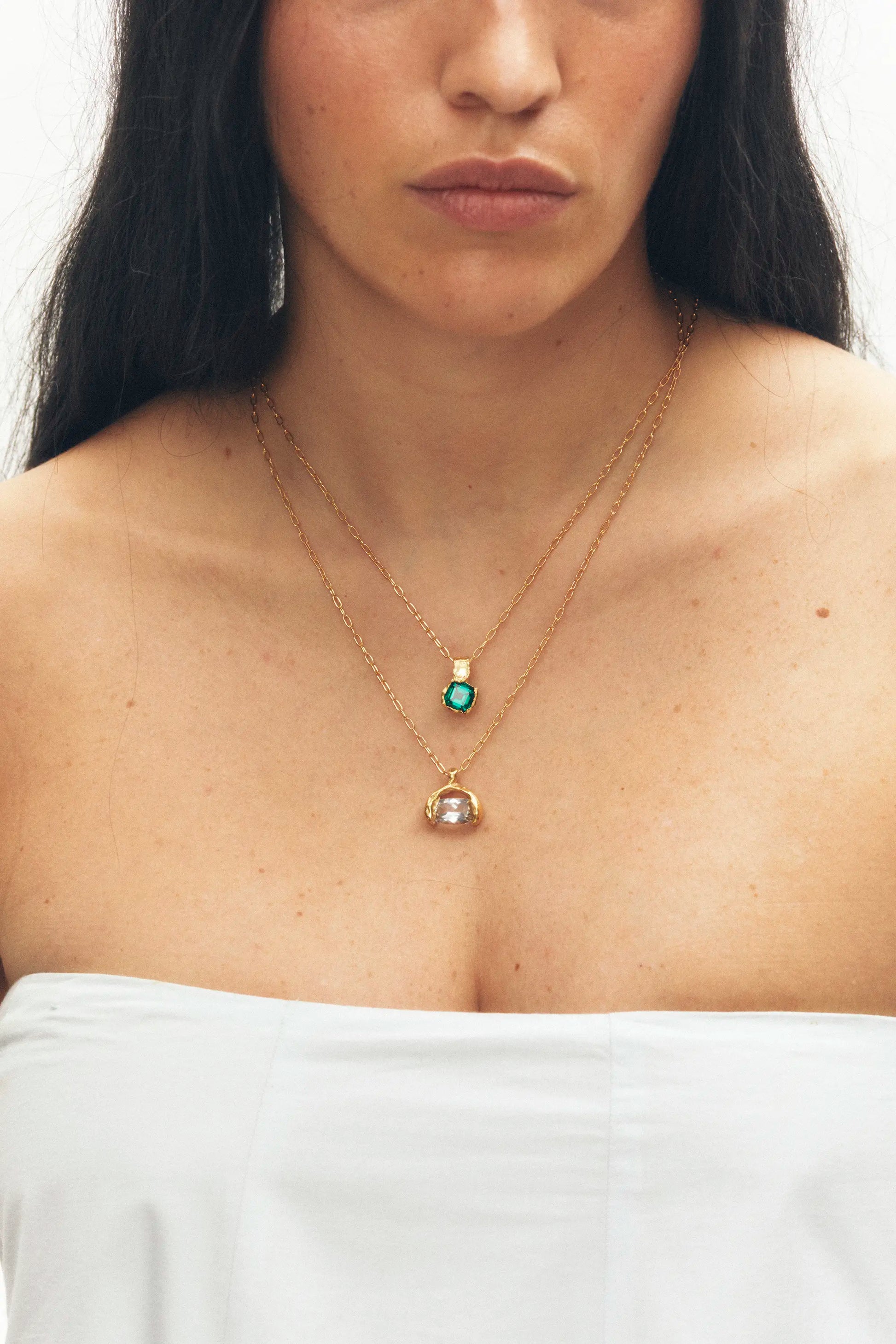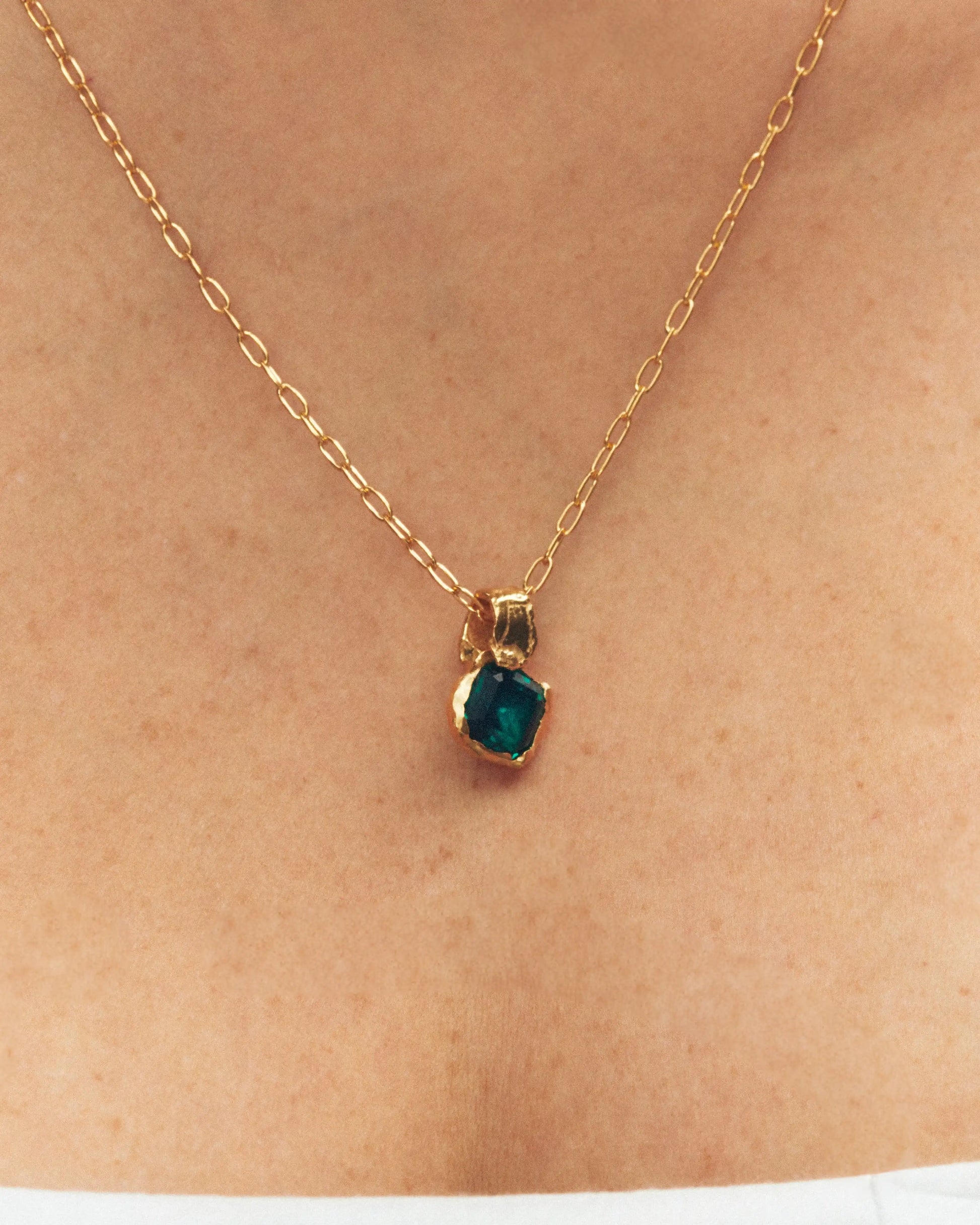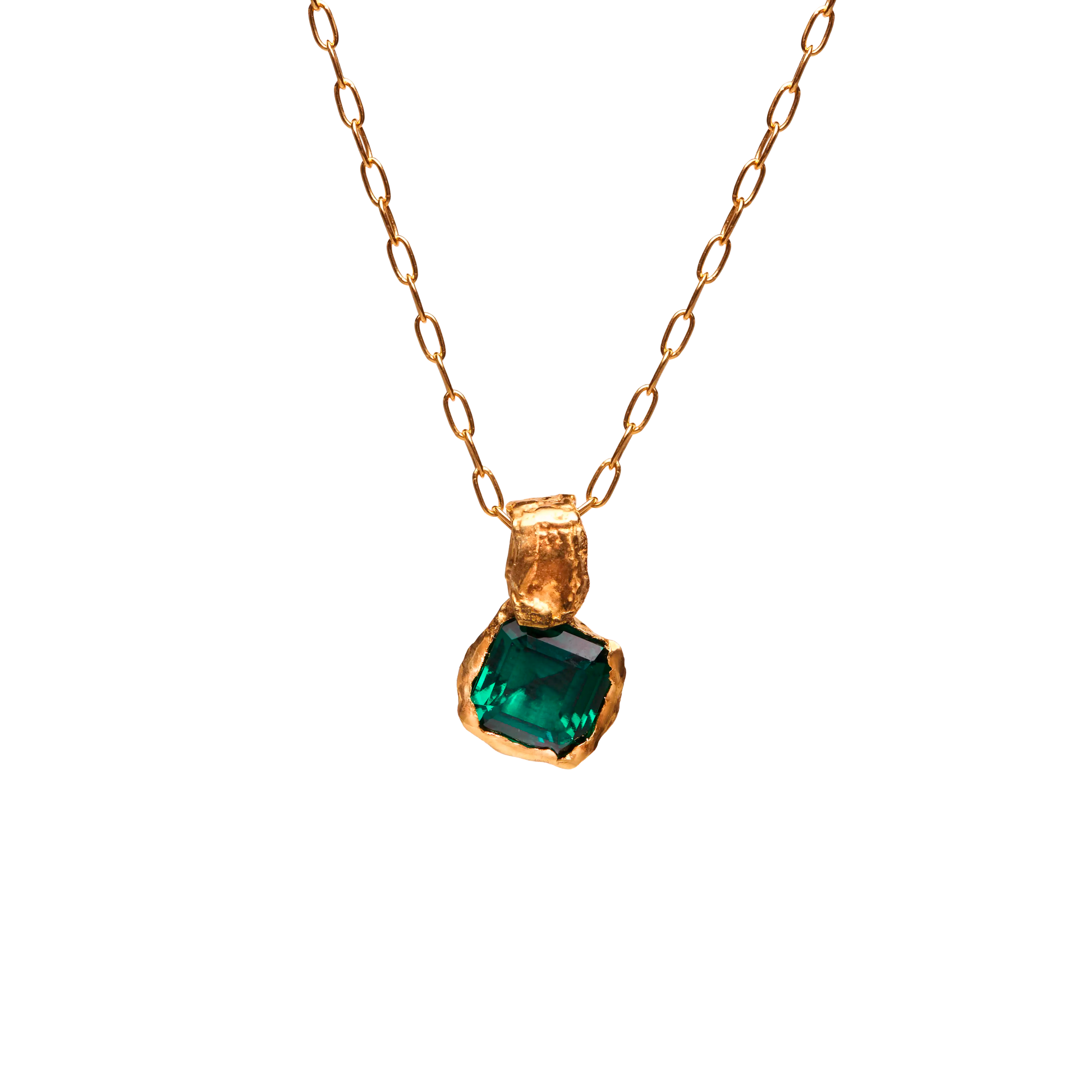 Mayo, handmade gold plated necklace with a natural Emerald gem.