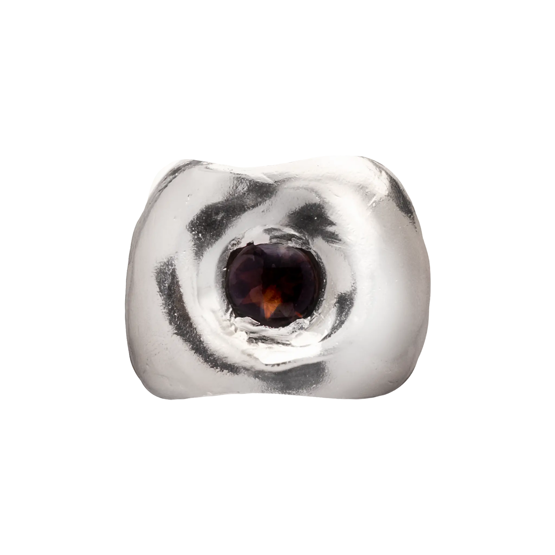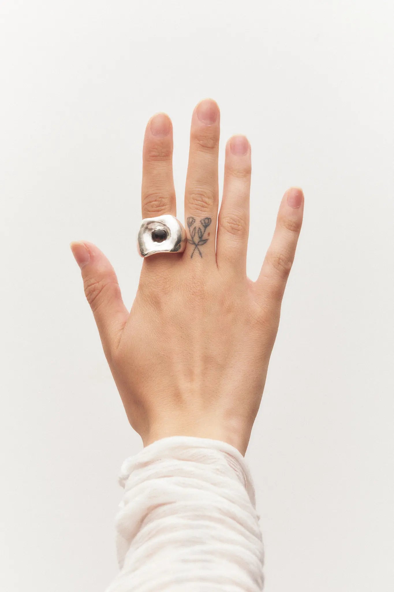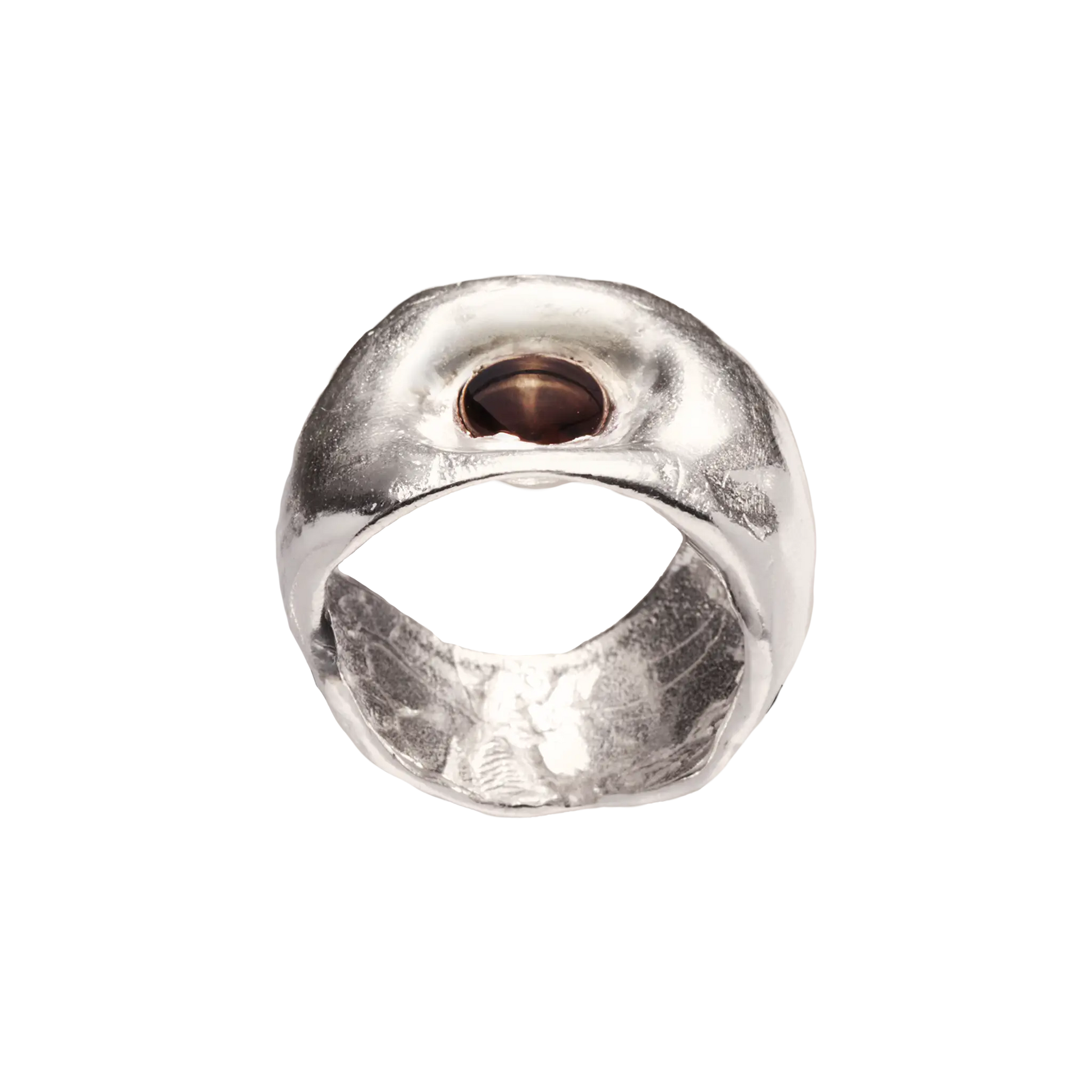 Moma Brown, handmade recycled 925 sterling silver ring with natural smoky quartz stone.