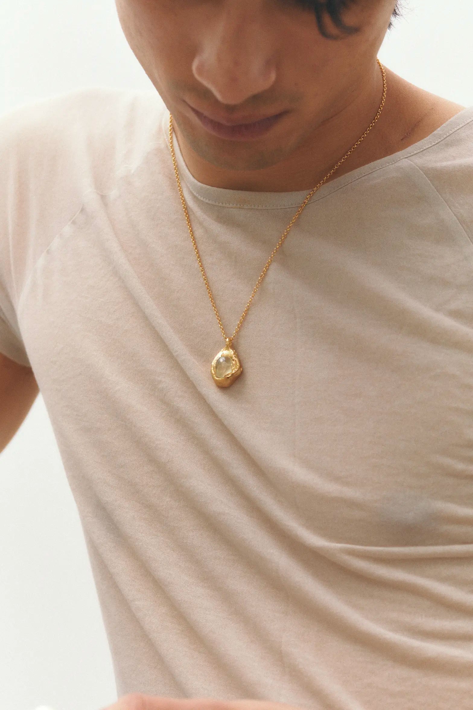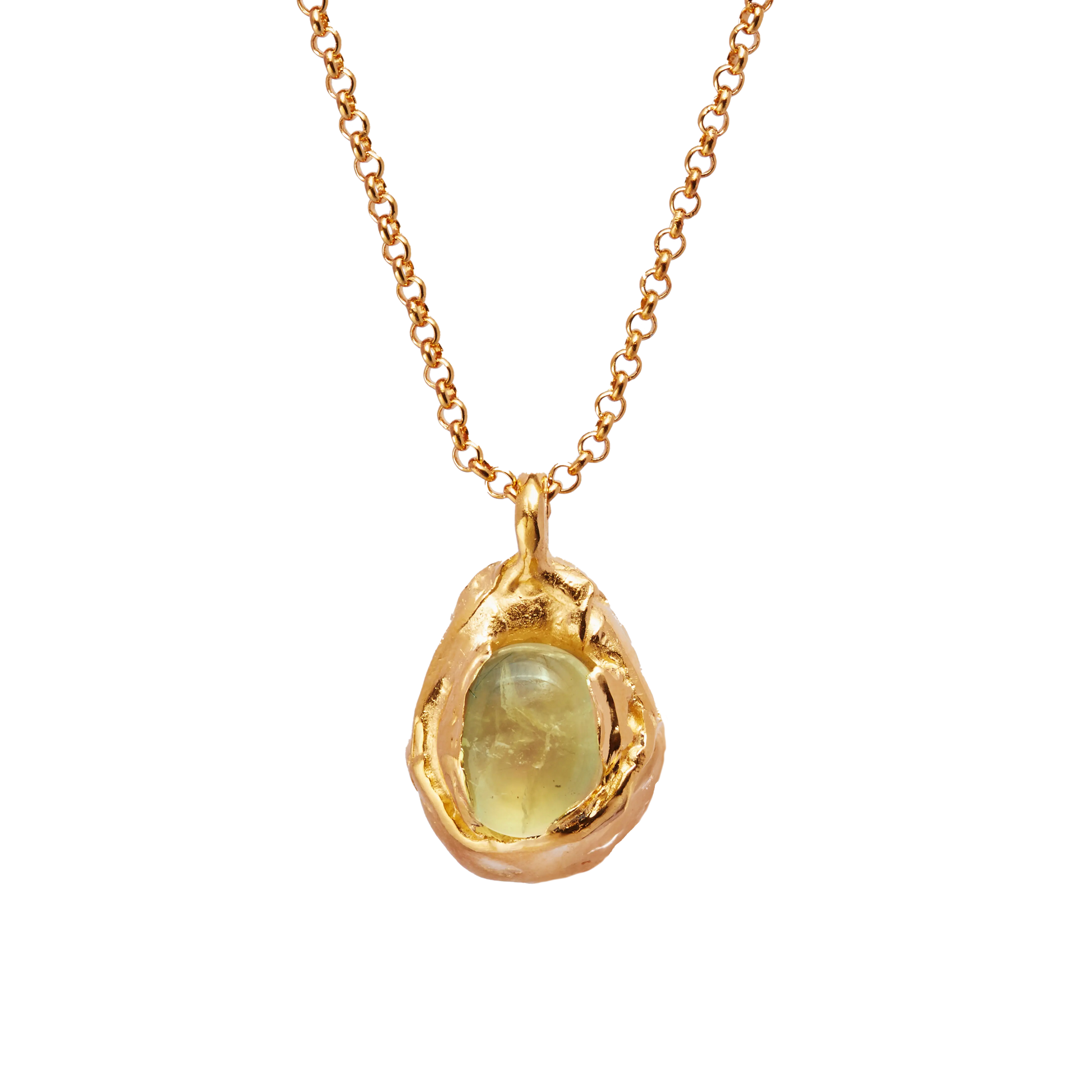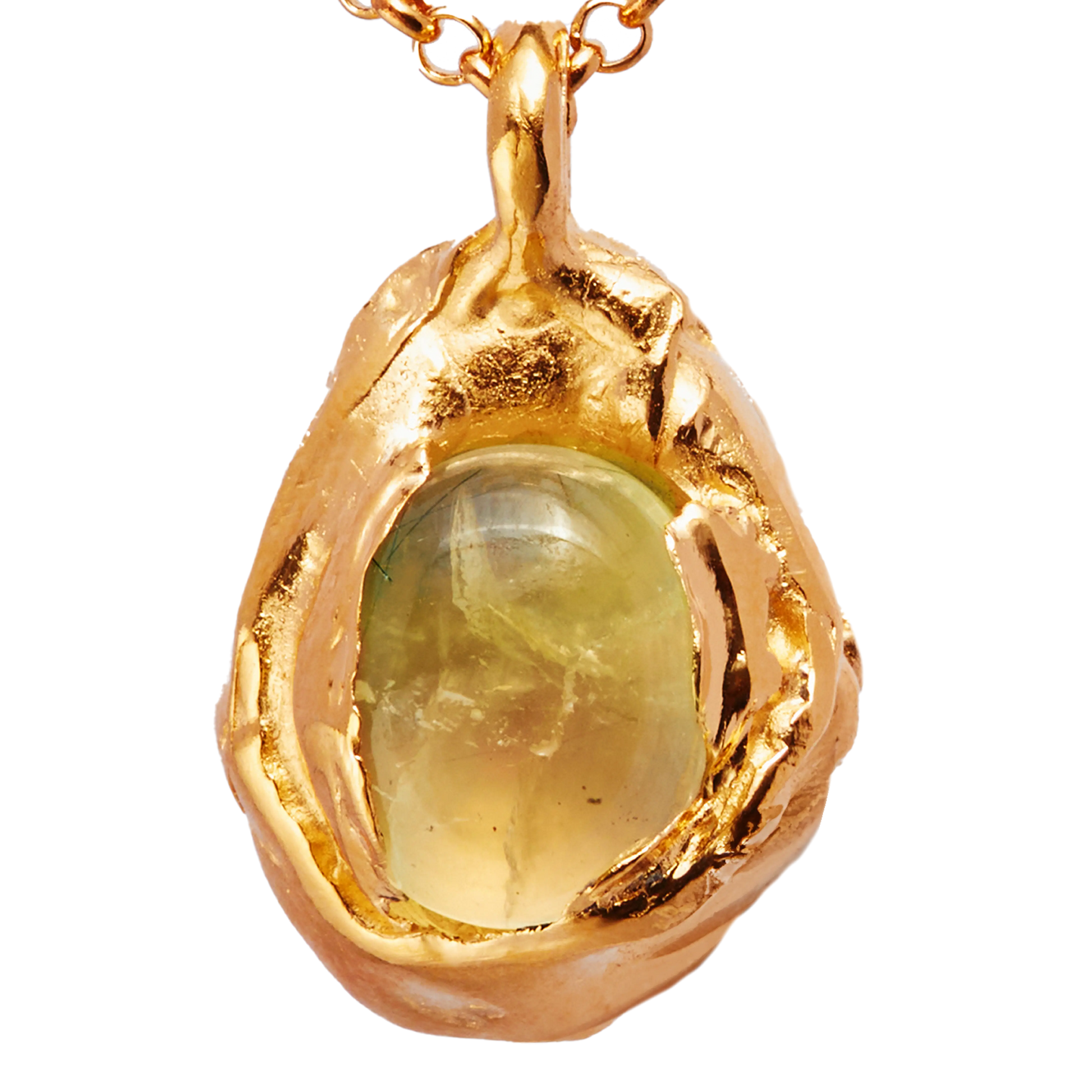 Nectar Uva, handmade gold plated necklace with natural green prehnite stone.