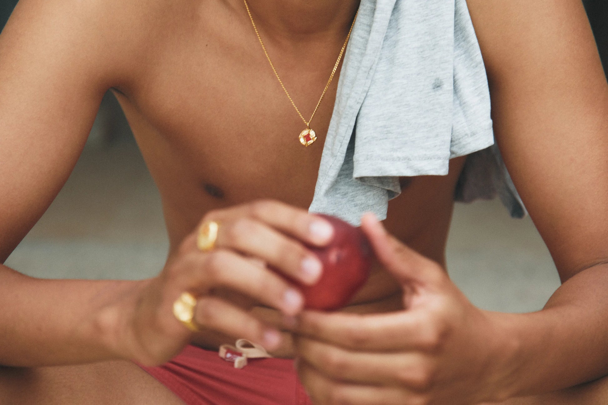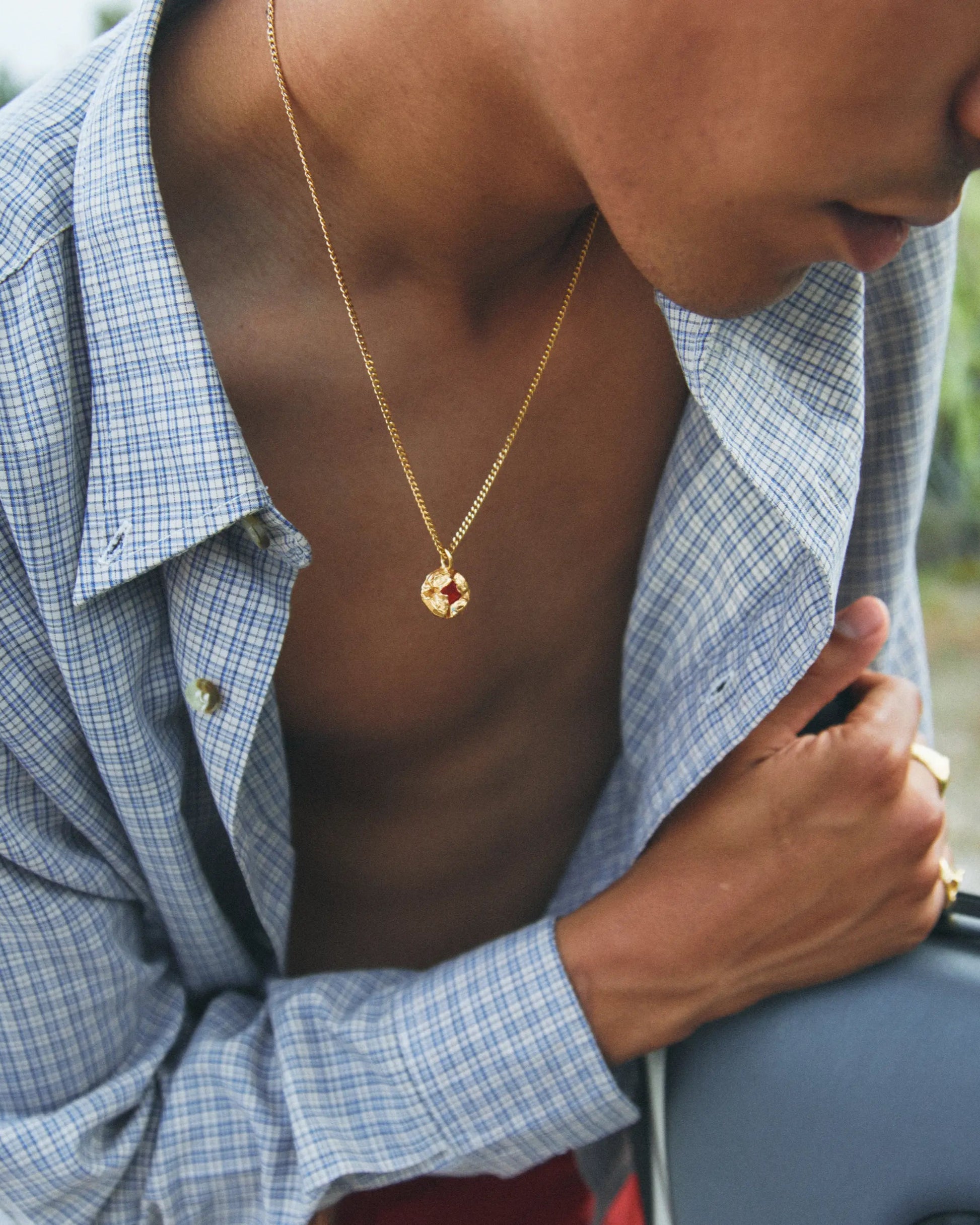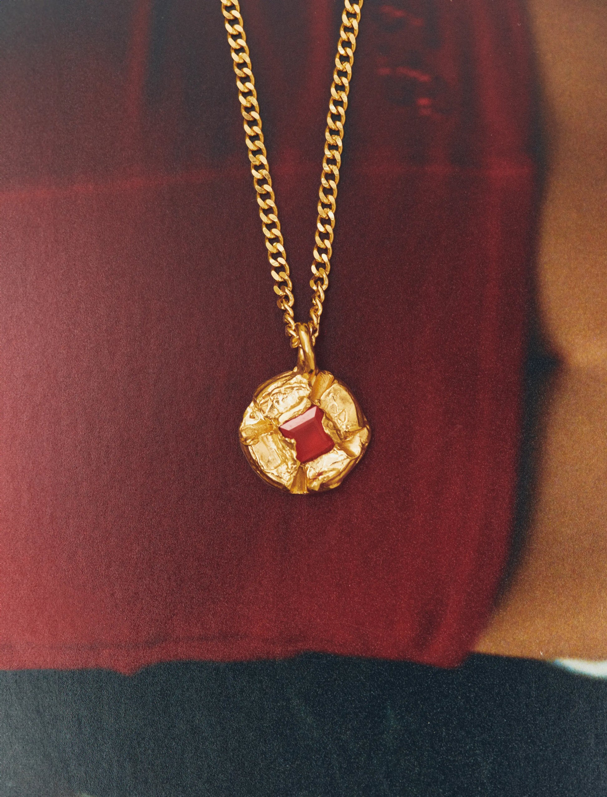 Norte, handmade gold plated necklace with natural Red Onyx stone.