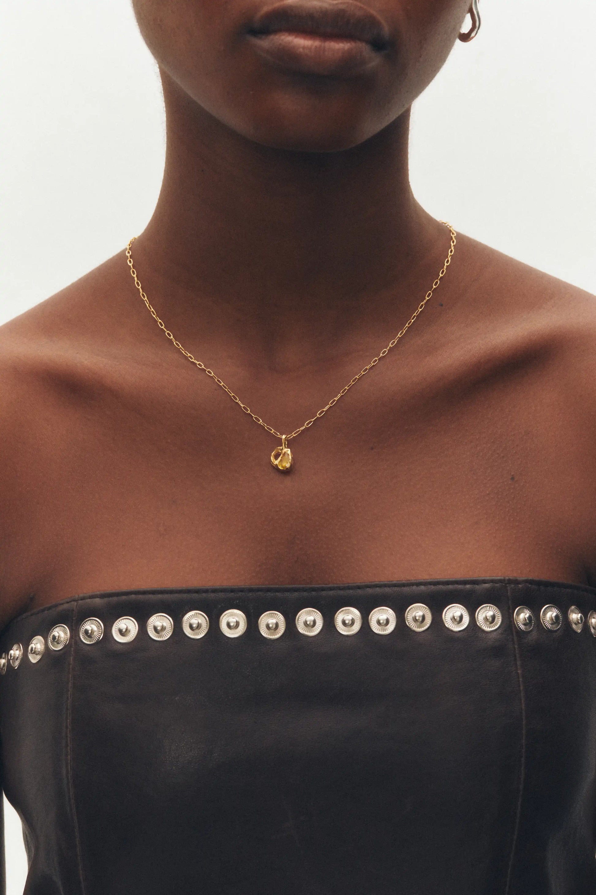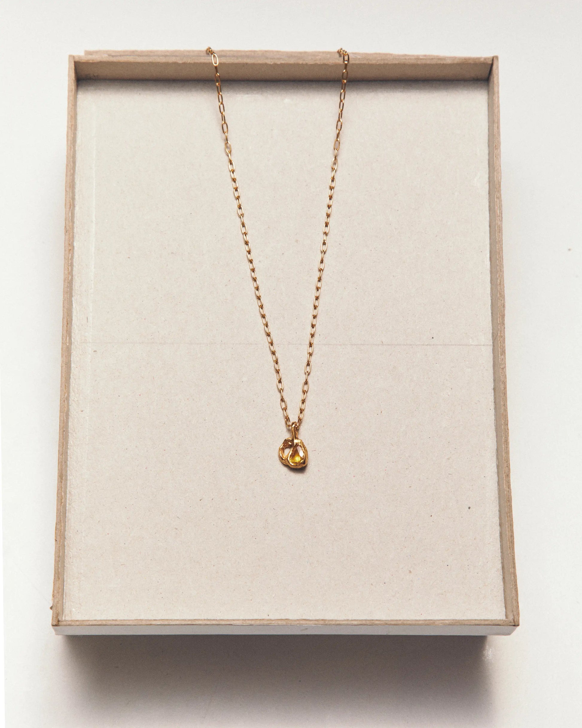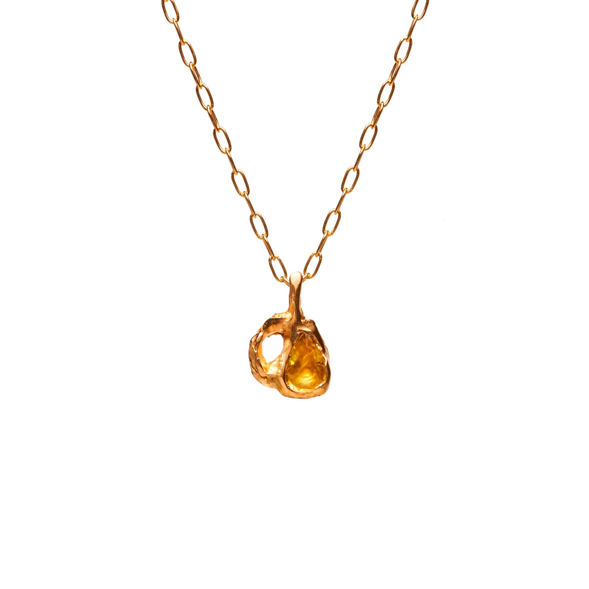 Noviembre, handmade gold plated necklace with a natural Yellow Sapphire gem.