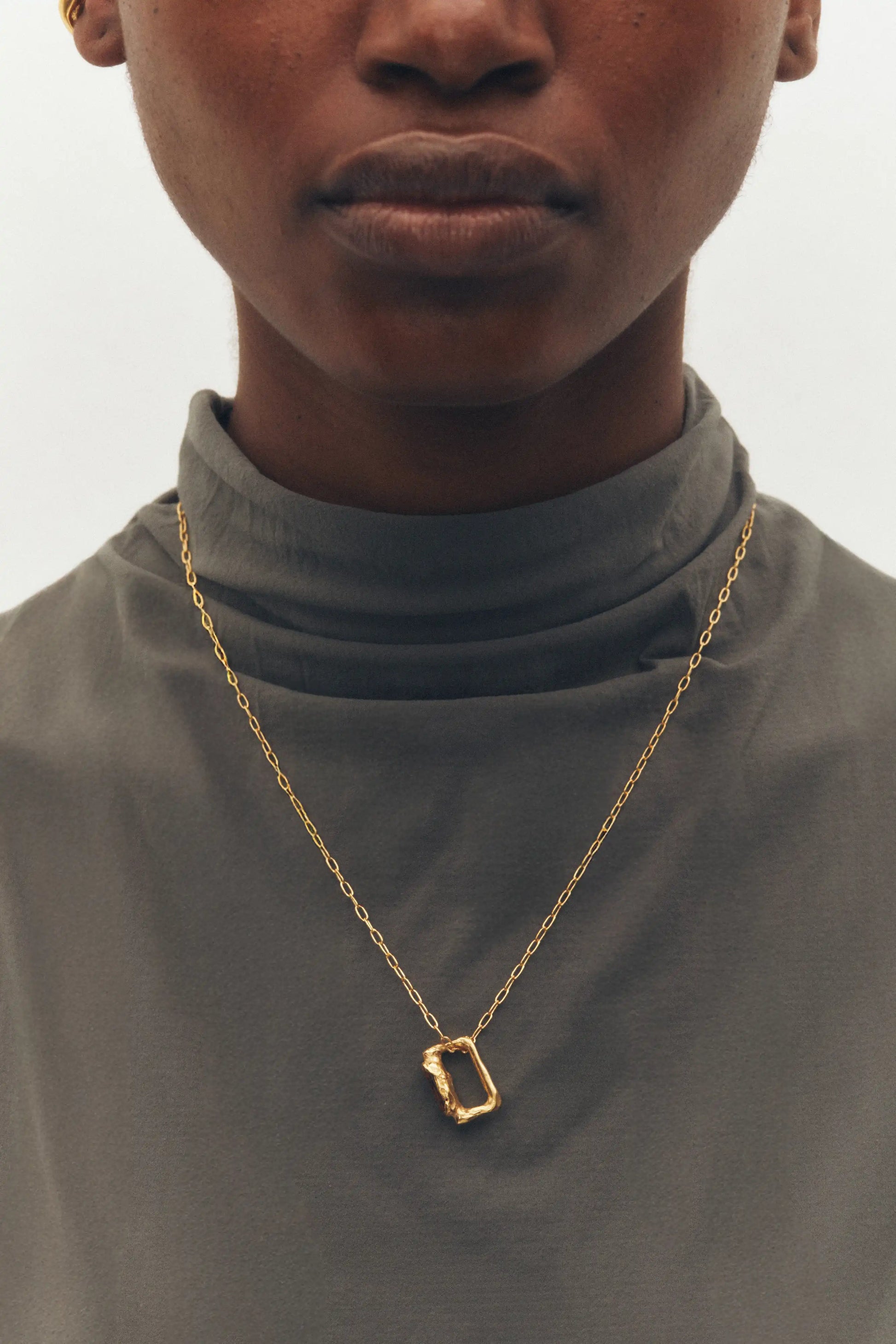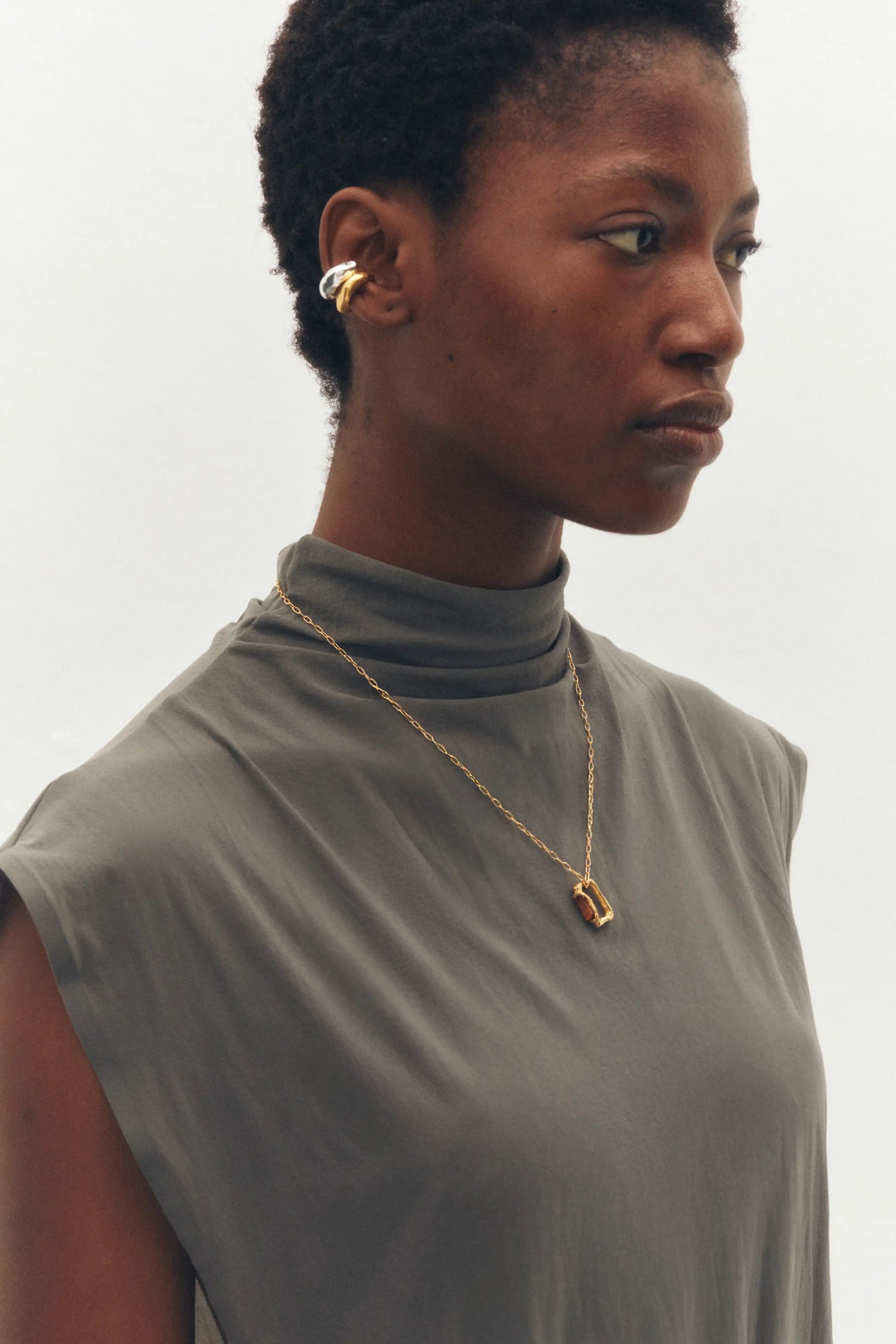 Octubre, handmade gold plated necklace with a natural Tourmaline gem.