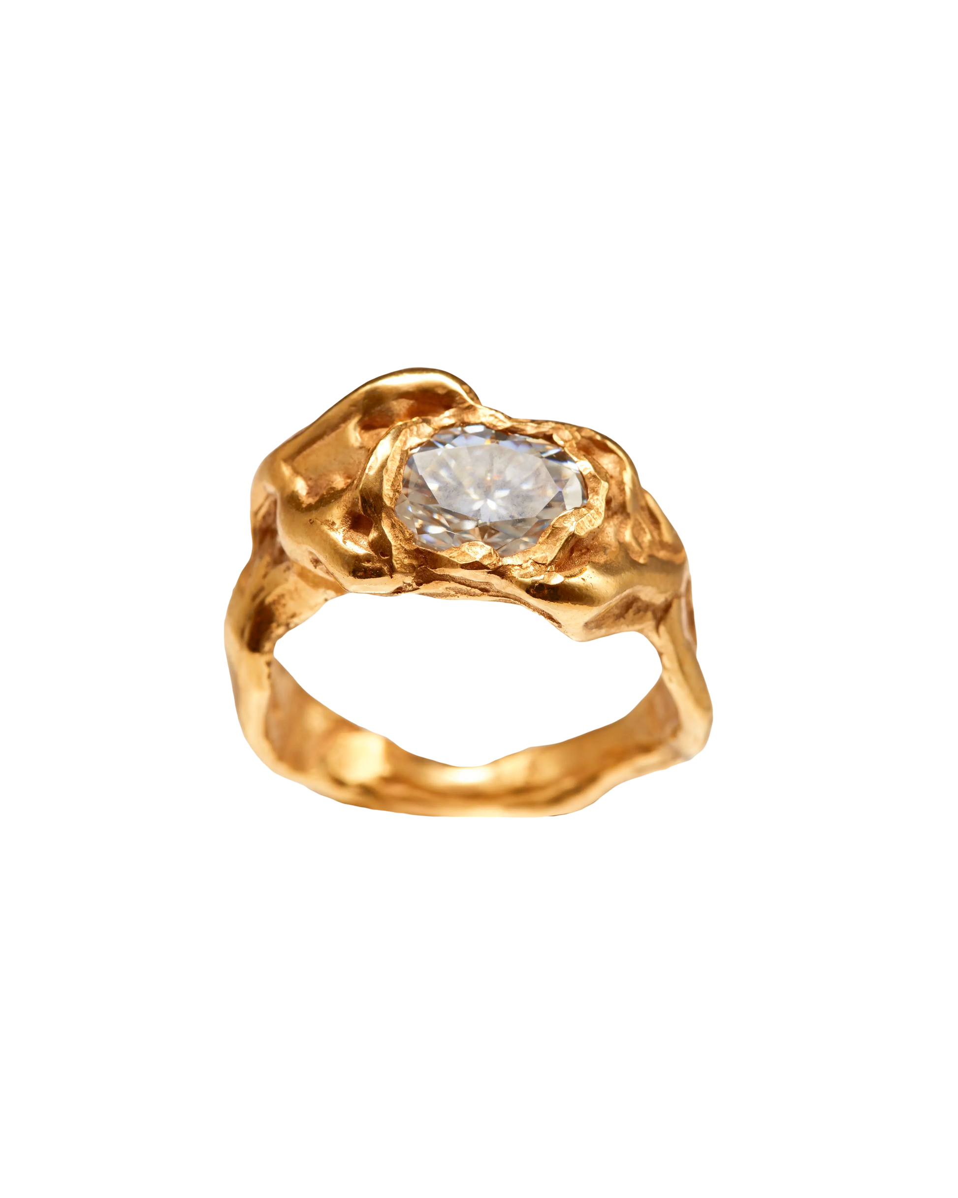 18k solid gold Ola Ring, handcrafted in our workshop and set with an oval-cut 1 carat diamond.