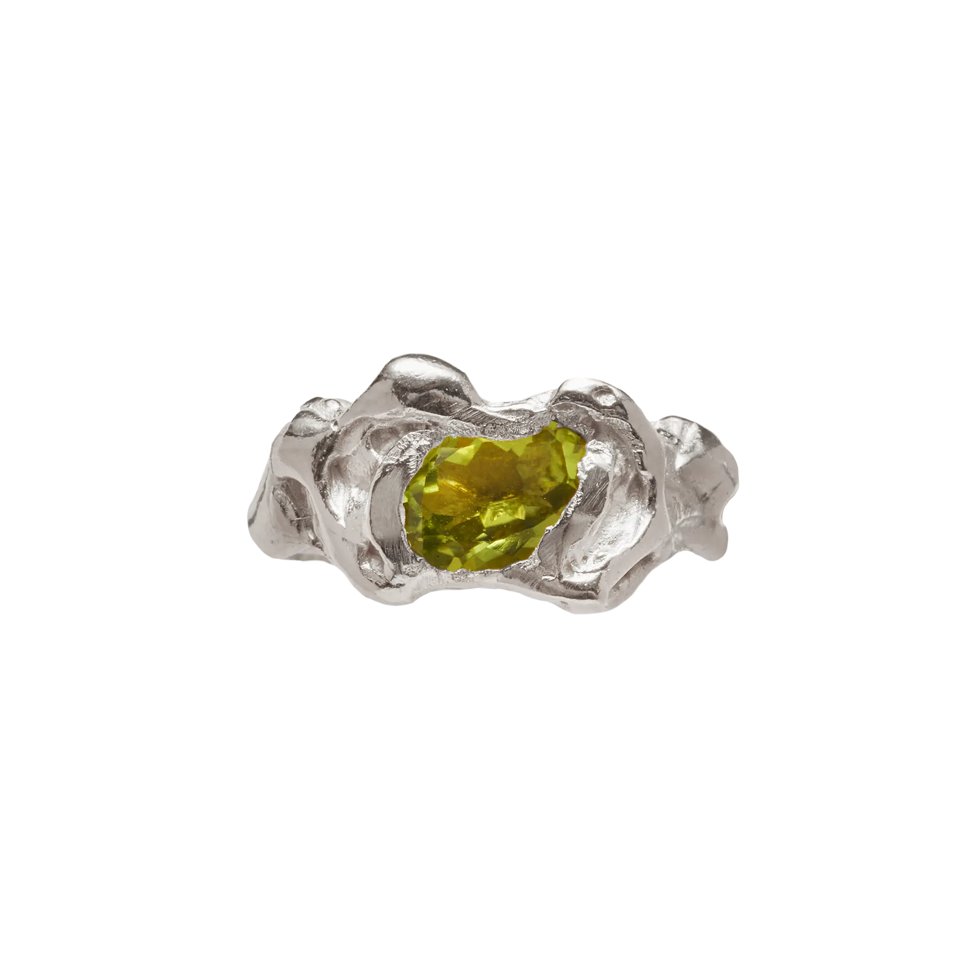 Ola Green, handmade recycled 925 sterling silver ring with green peridot natural stone.