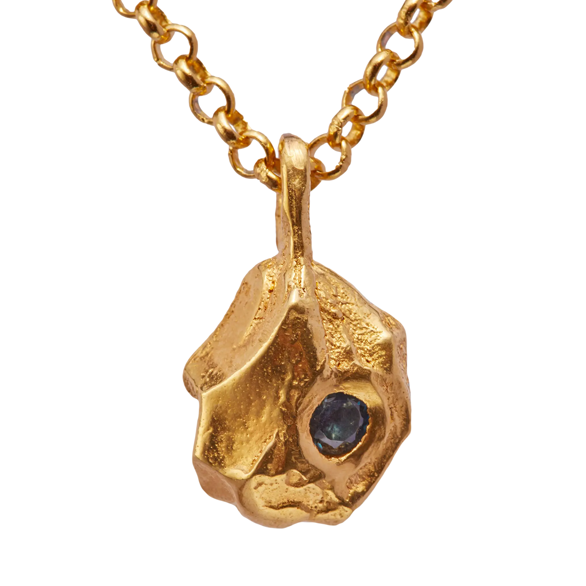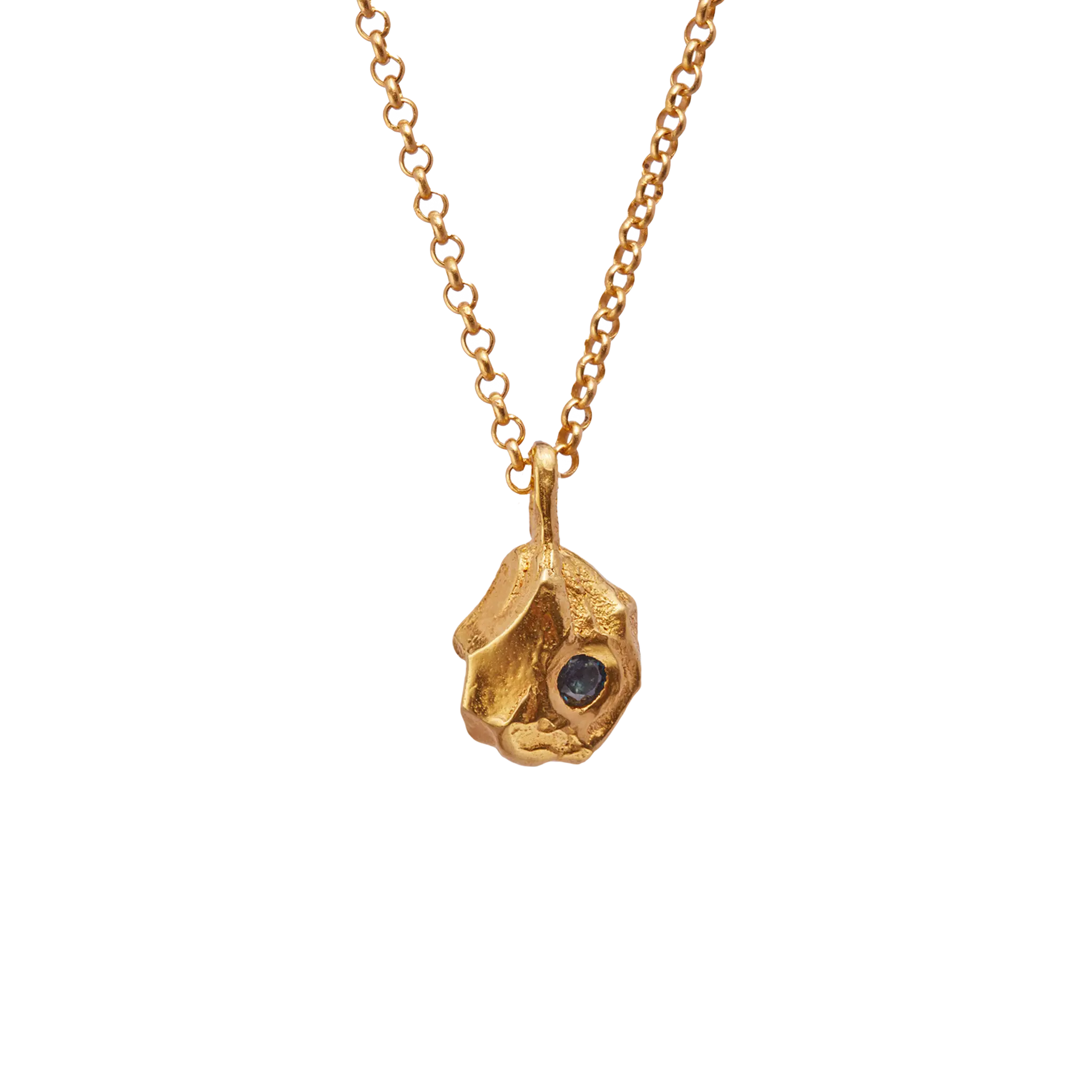 Por un perro, handmade gold plated necklace with natural London Blue Topaz stone.