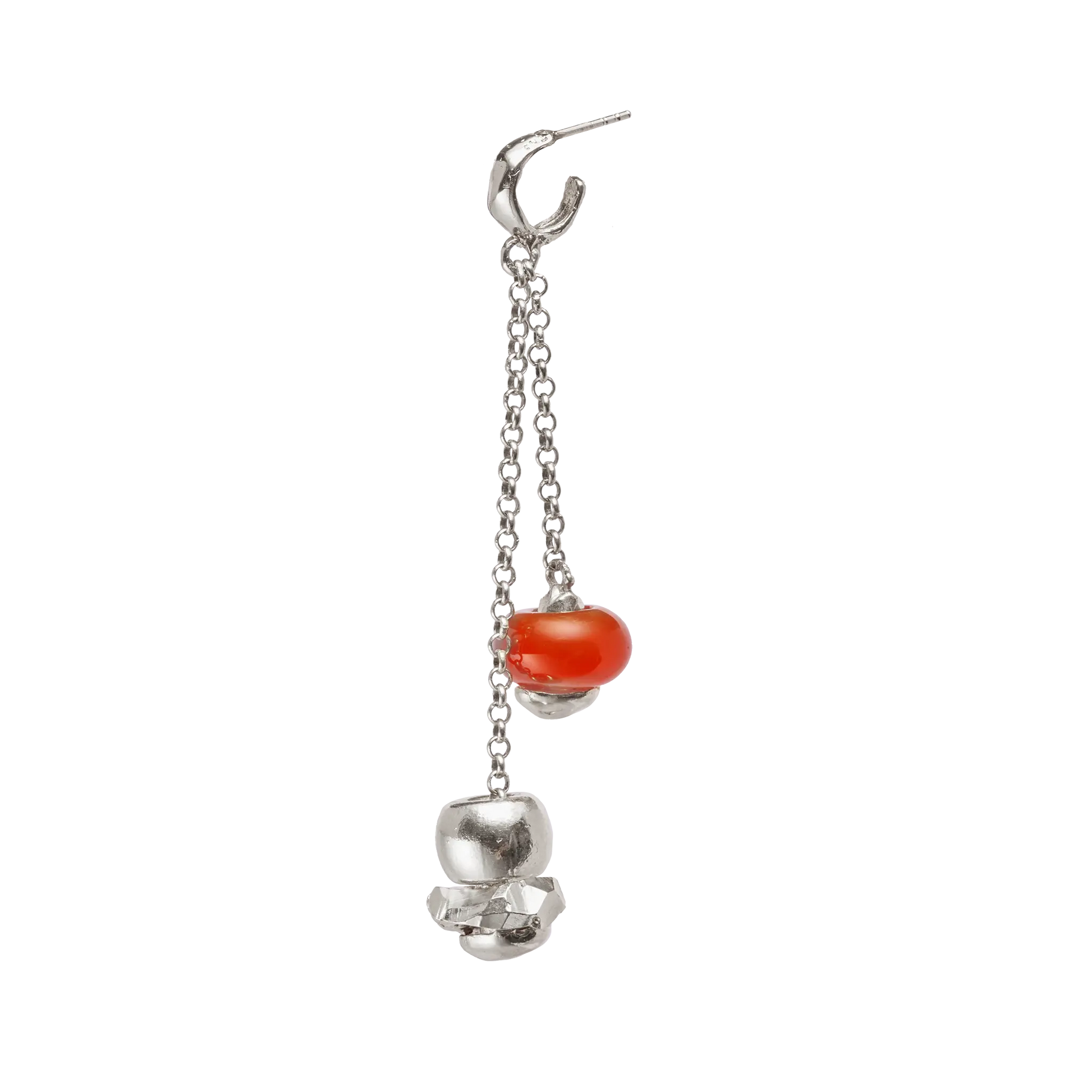 recycled 925 sterling silver long earring with natural Orange Agate stone. This earring is sold by unit.