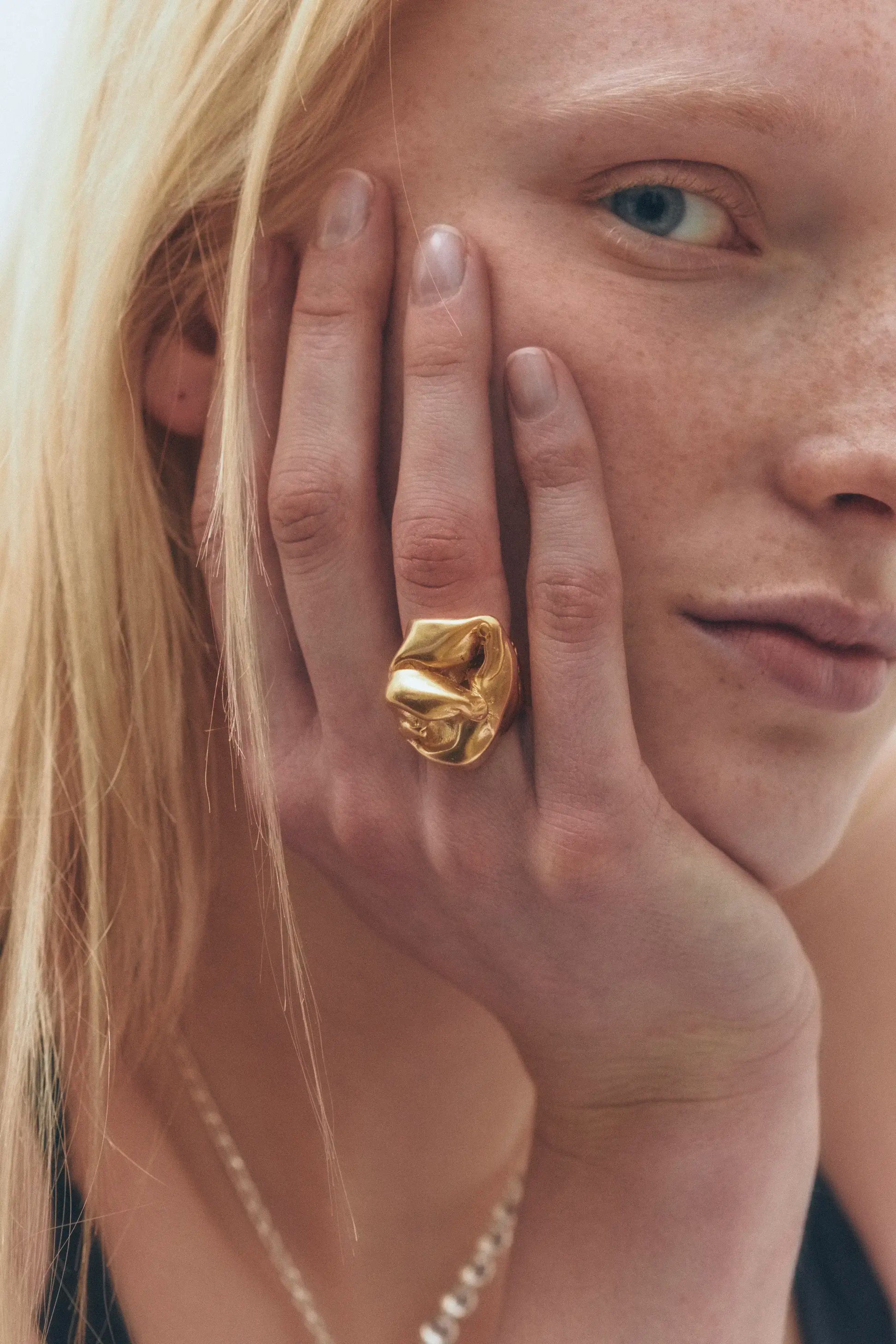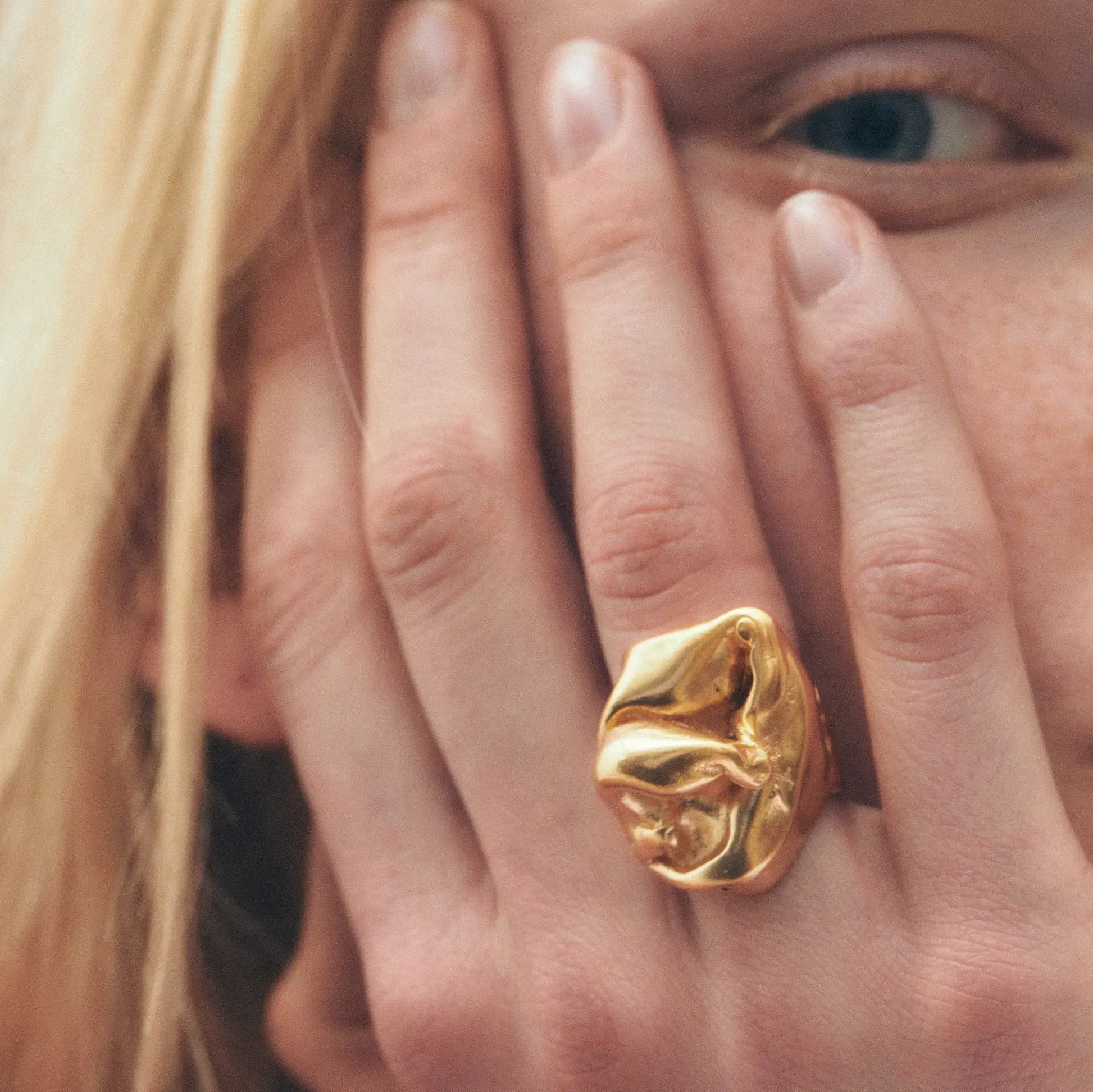 Rodeo, handmade gold plated recycled 925 sterling silver ring.