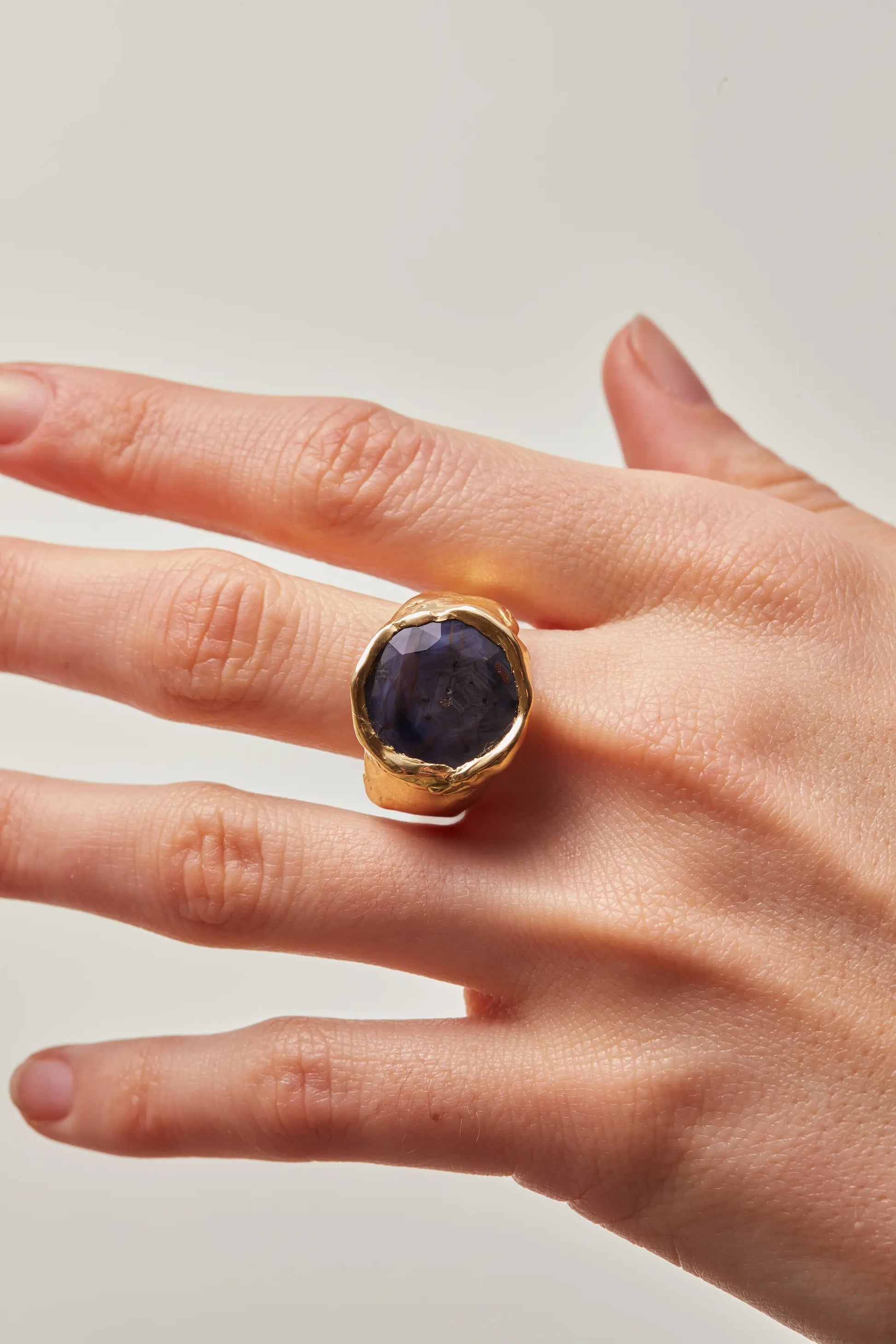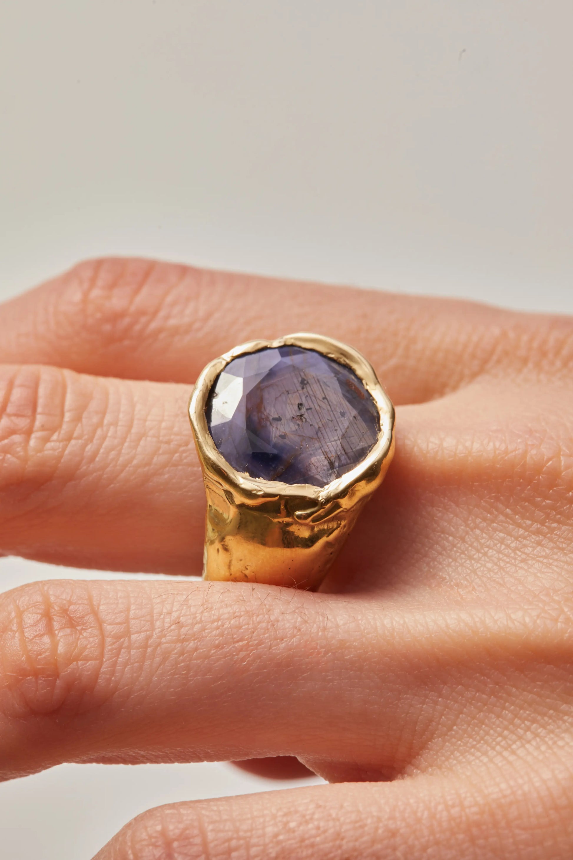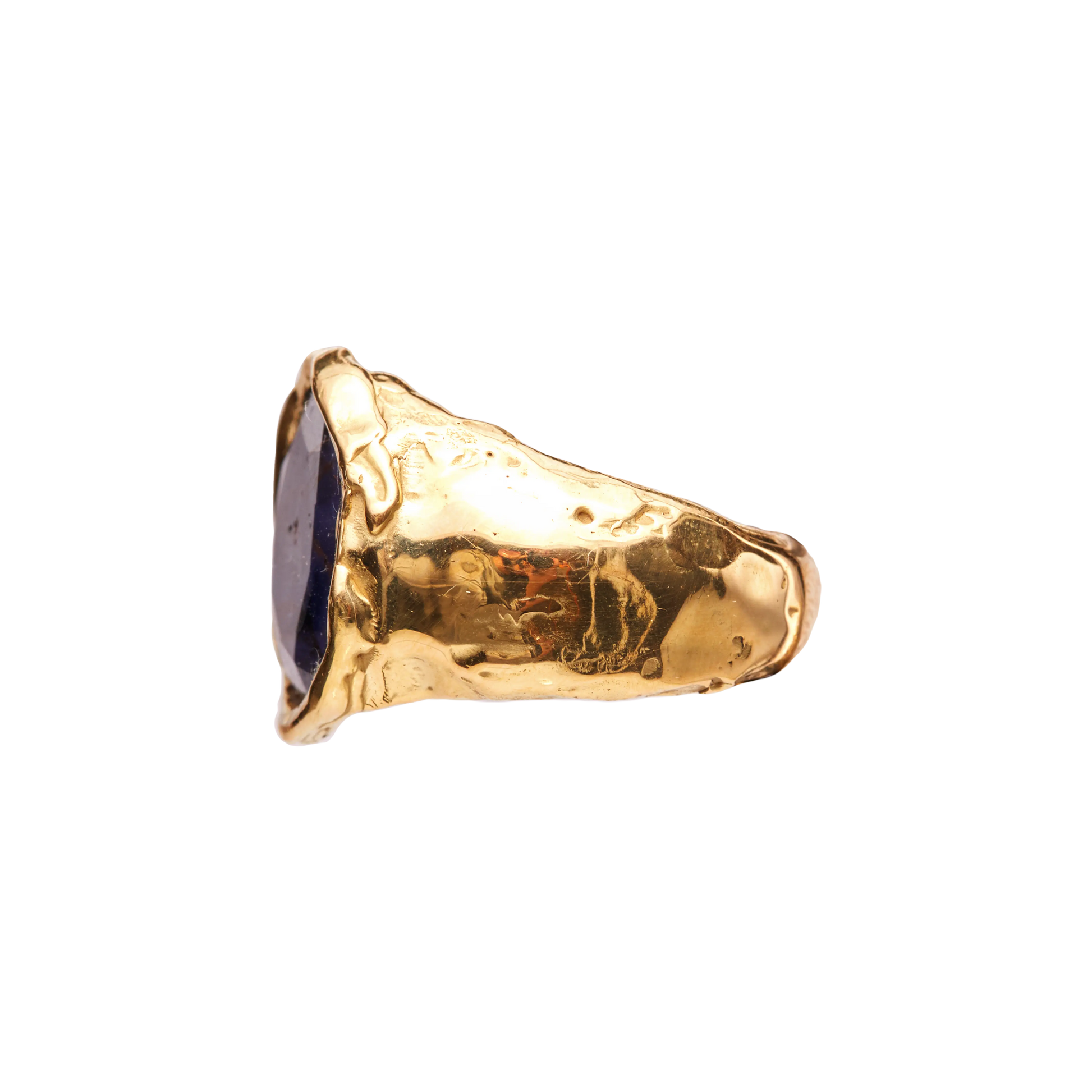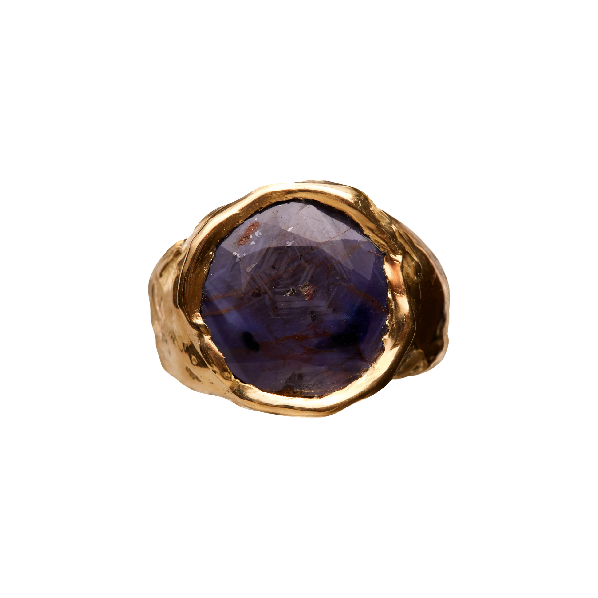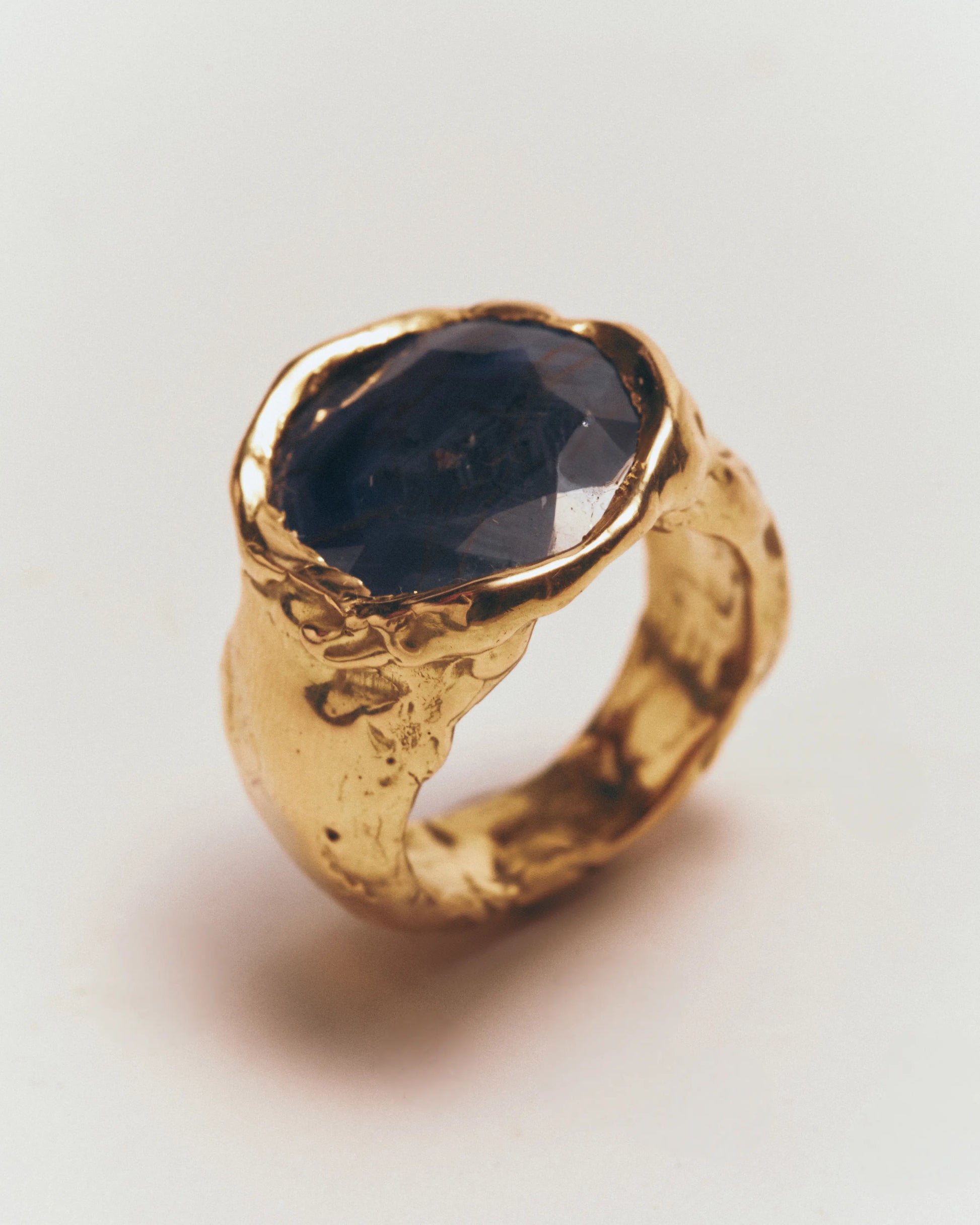 Solid gold ring handcrafted in a unique way, featuring a one-of-a-kind sapphire. Each stone is carefully selected, ensuring no two are ever the same. Crafted in 18k solid gold, a piece created to stand by you and by many generations.