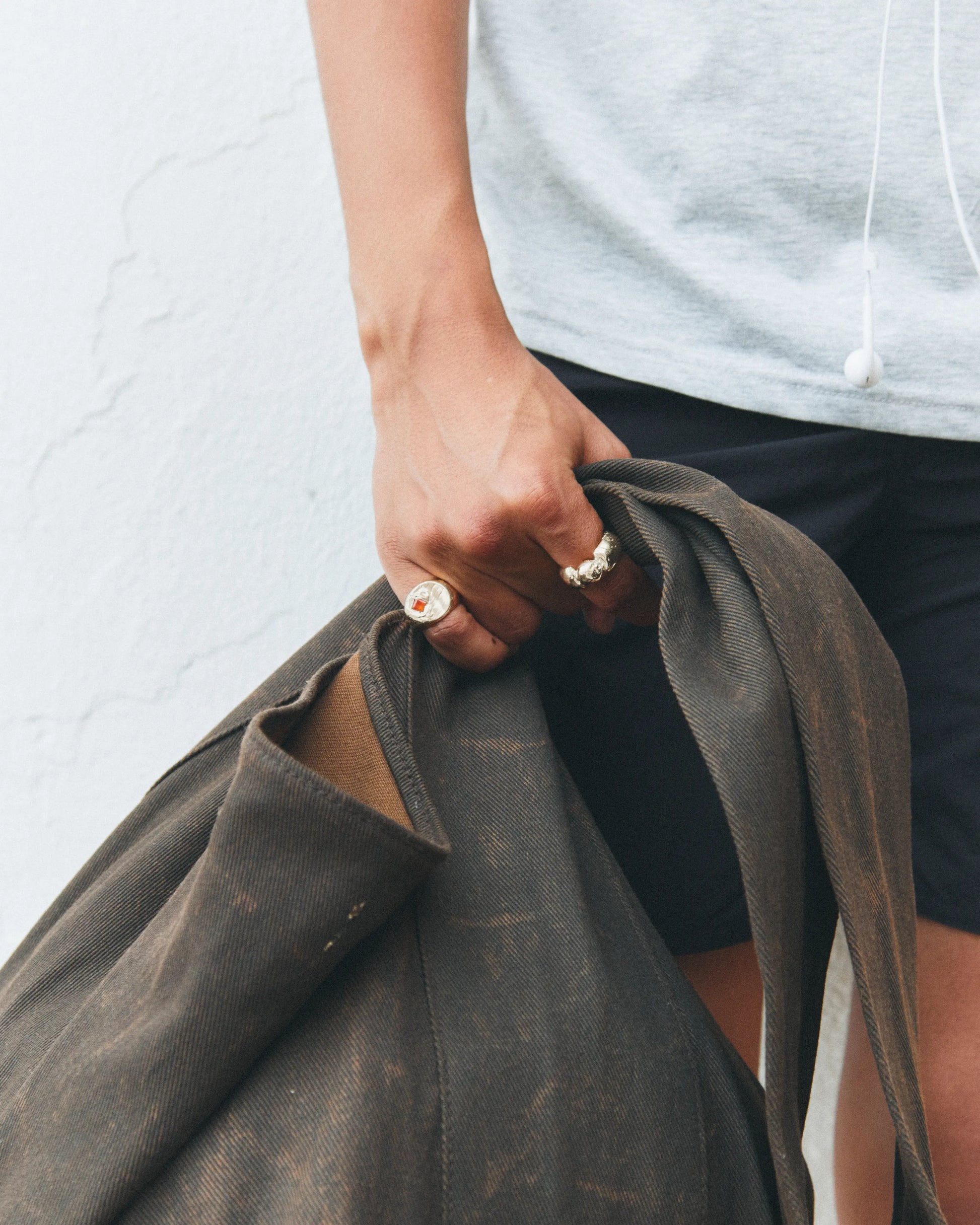 Sello Norte, handmade recycled 925 sterling silver ring with natural Red Onyx and Rose Garnet stones.