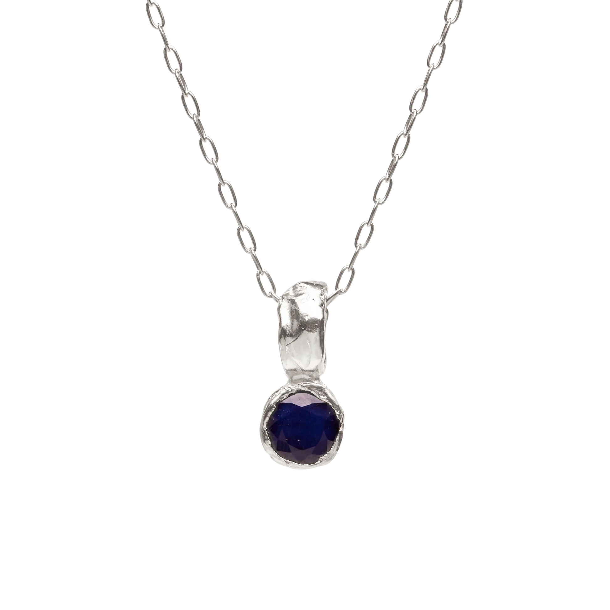 Septiembre, handmade recycled 925 sterling silver necklace with a natural Blue Sapphire gem.