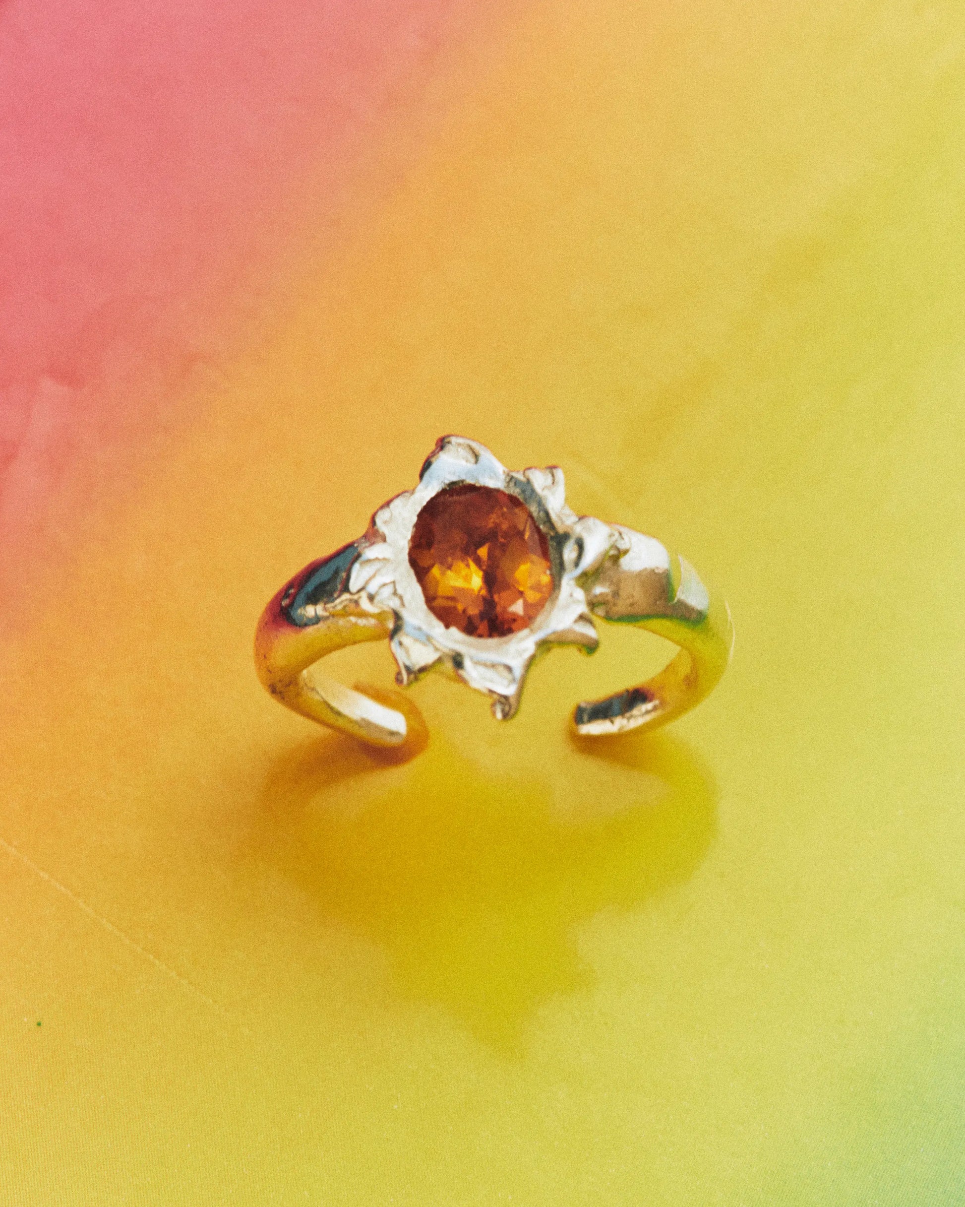 Soleil, handmade recycled 925 sterling silver toe ring with natural Orange Citrine stone. One size only.
