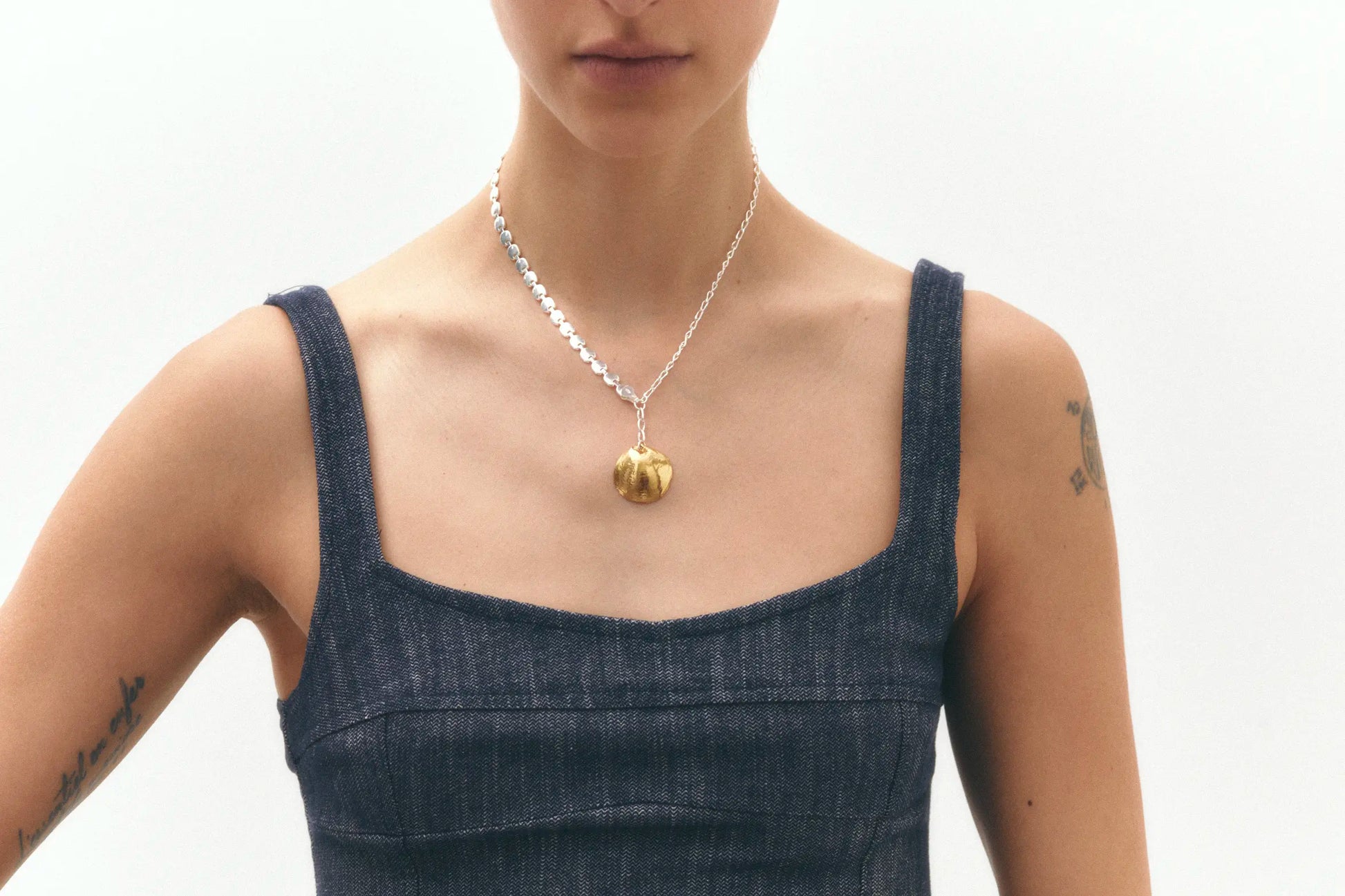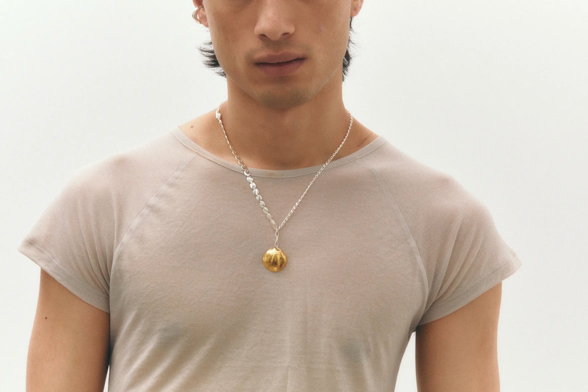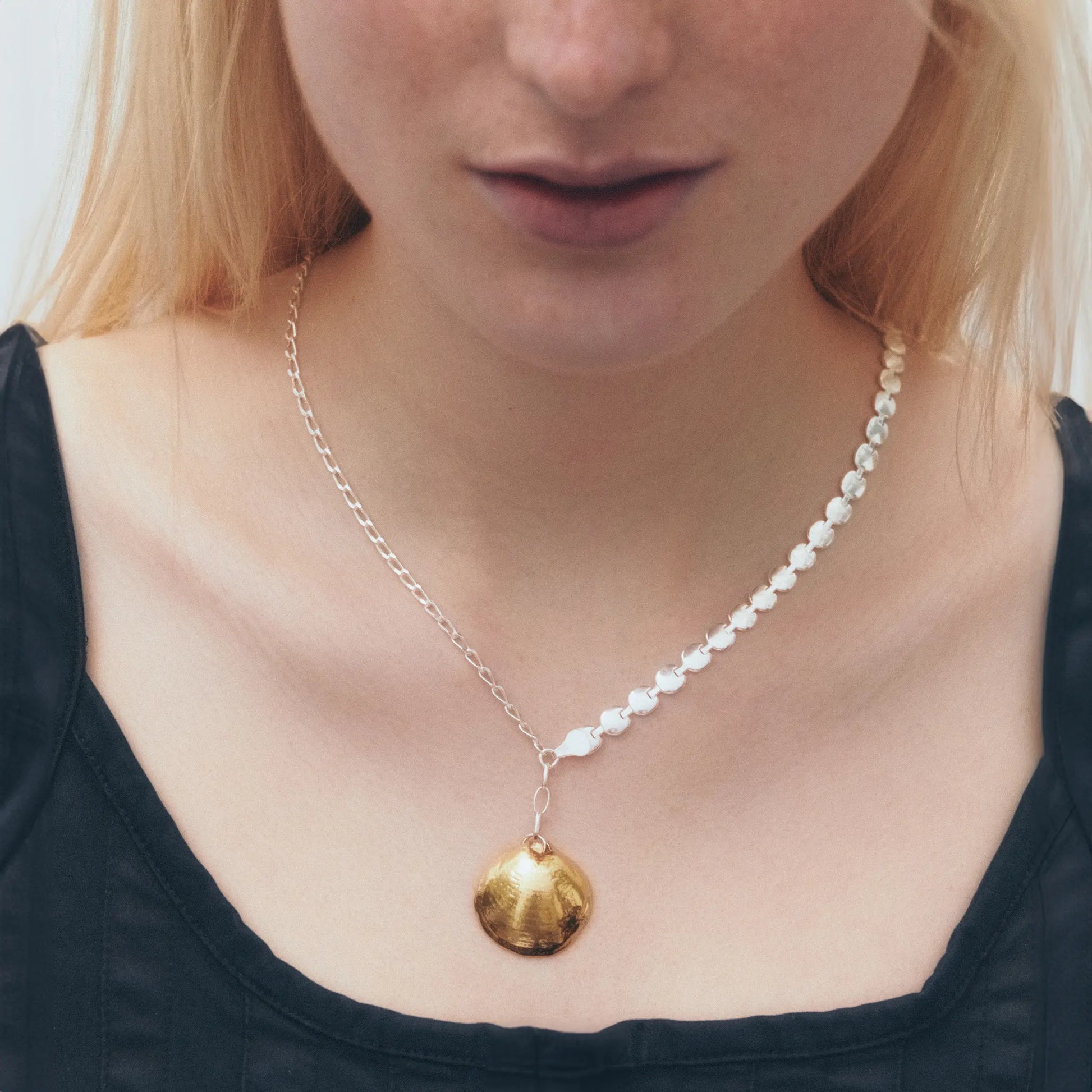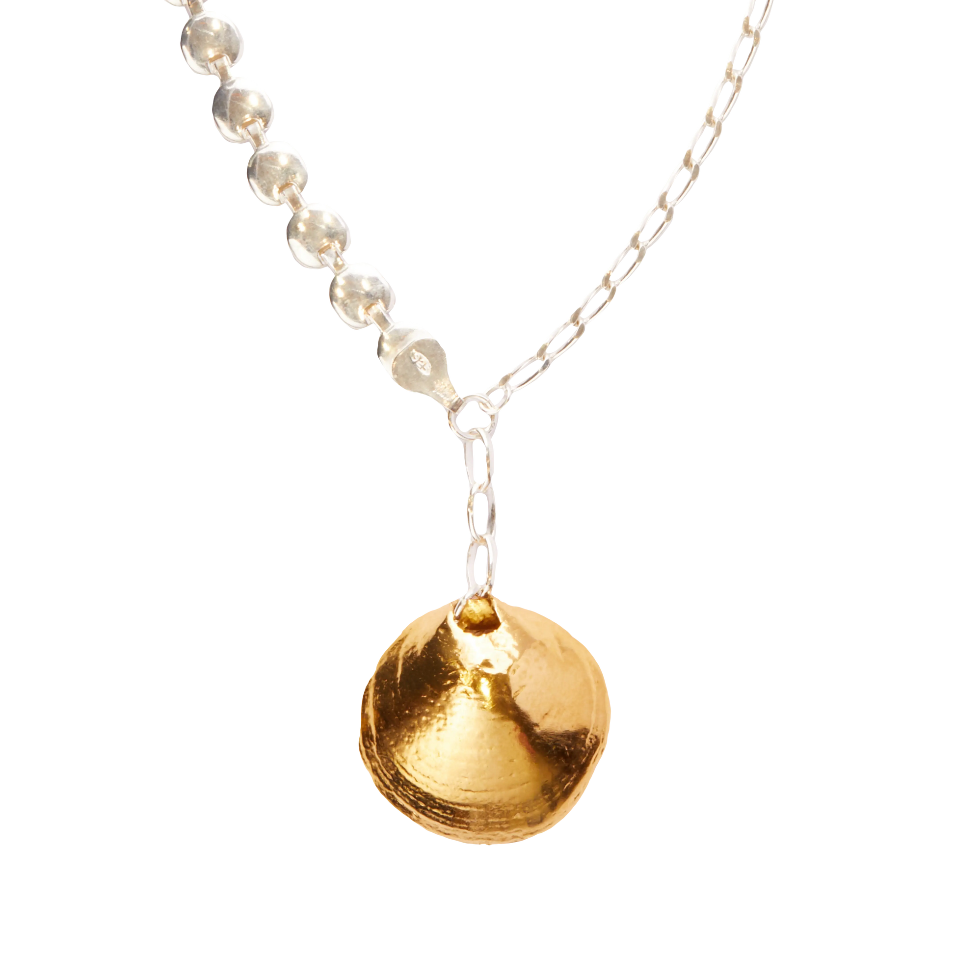 Una Concha en la Arena, handmade gold plated necklace with a sterling silver chain.
