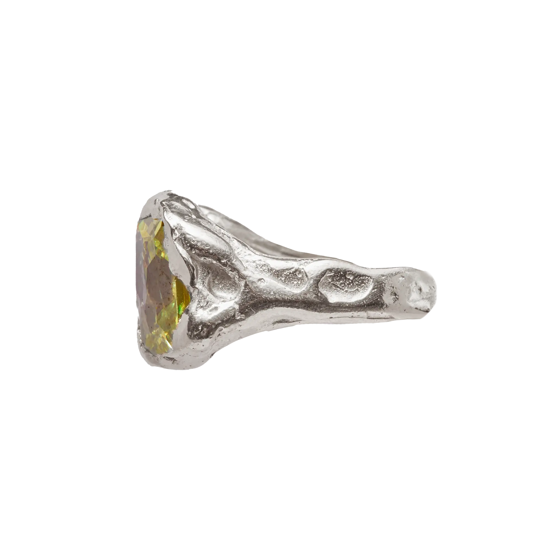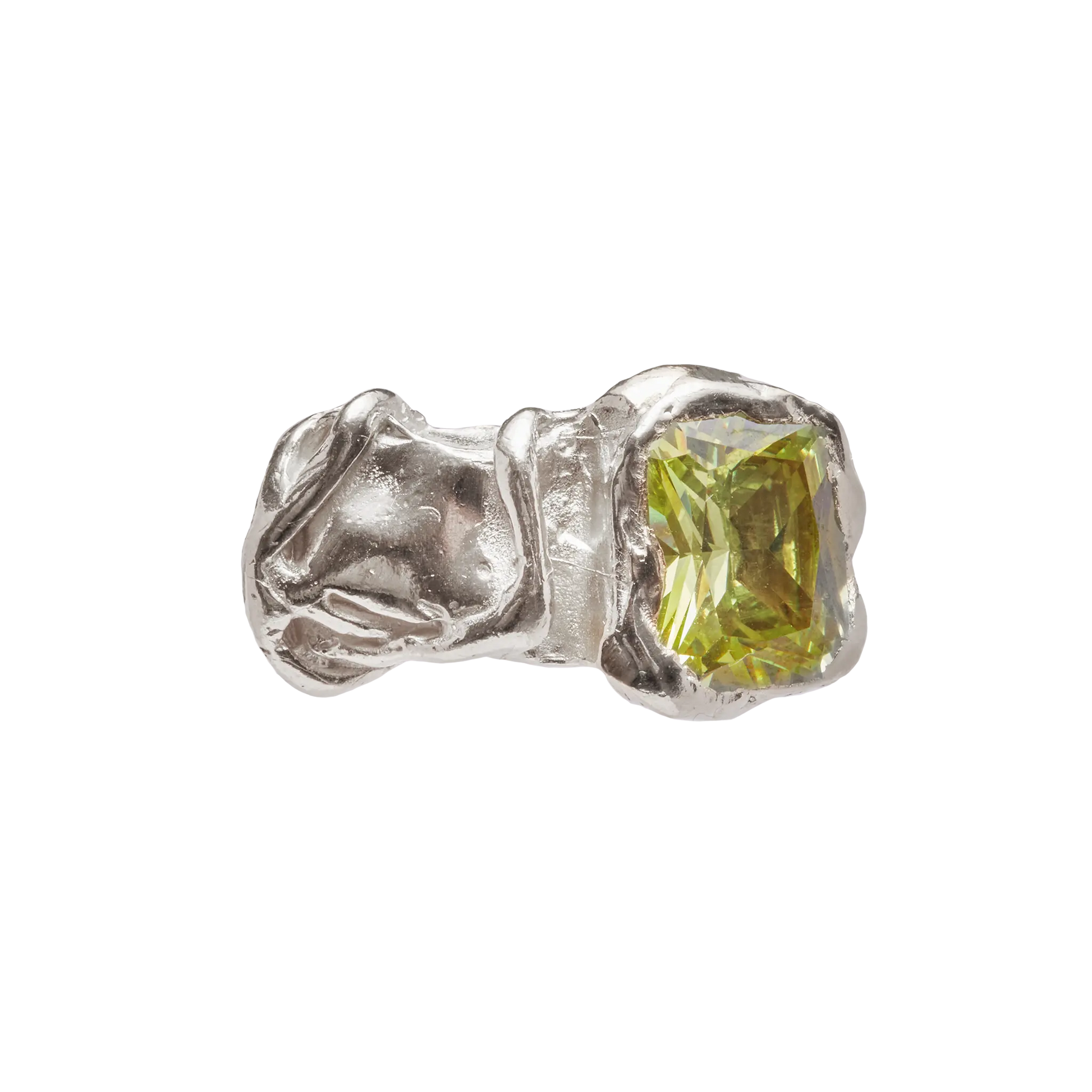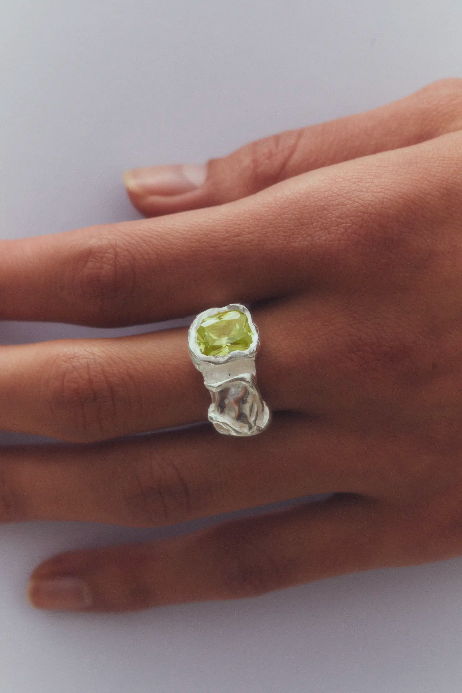 Vera Green, handmade recycled 925 sterling silver ring with apple green stone.