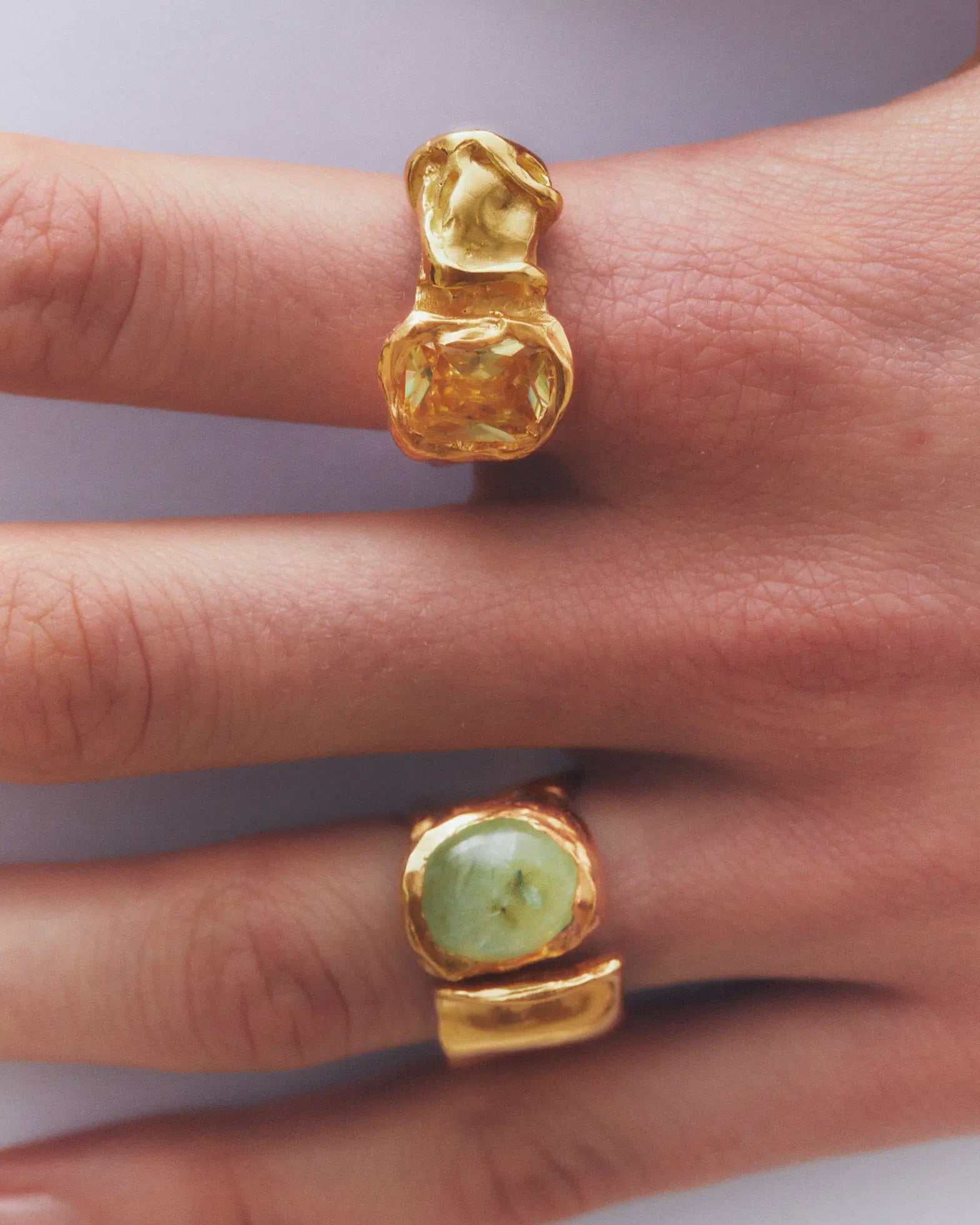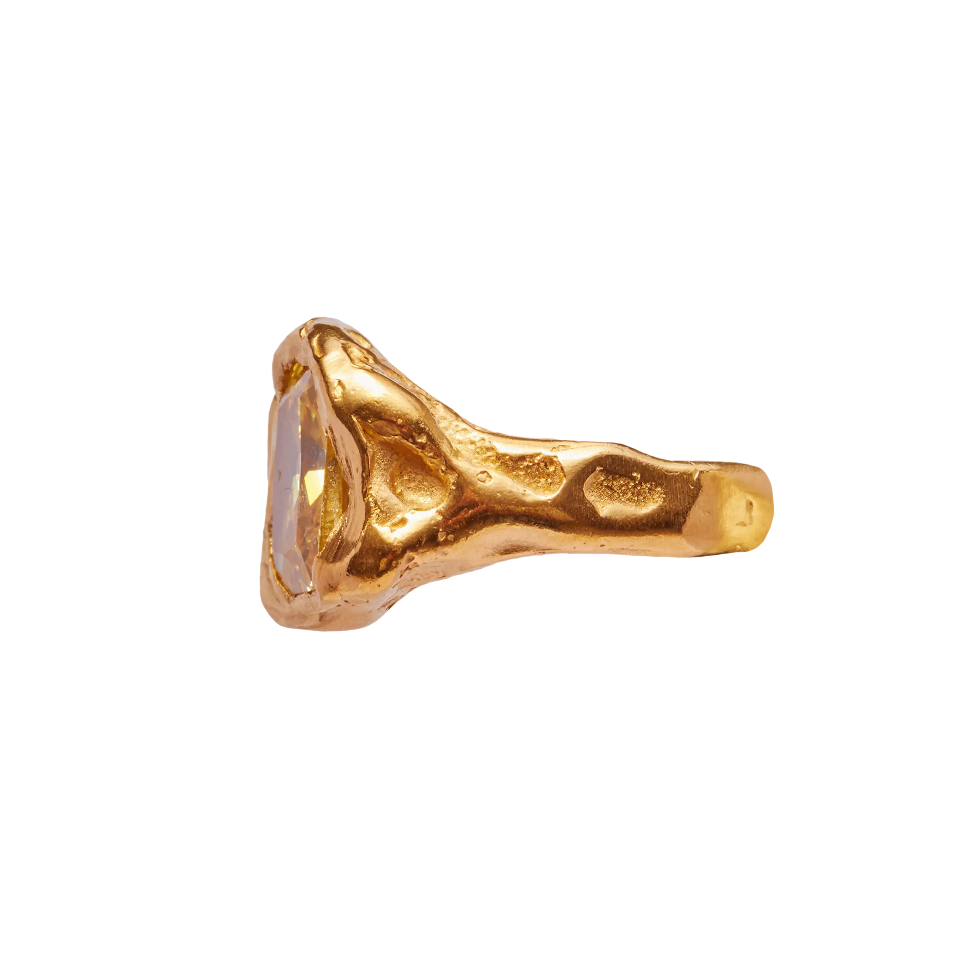 Vera Yellow, handmade gold plated recycled 925 sterling silver ring with lemon stone.