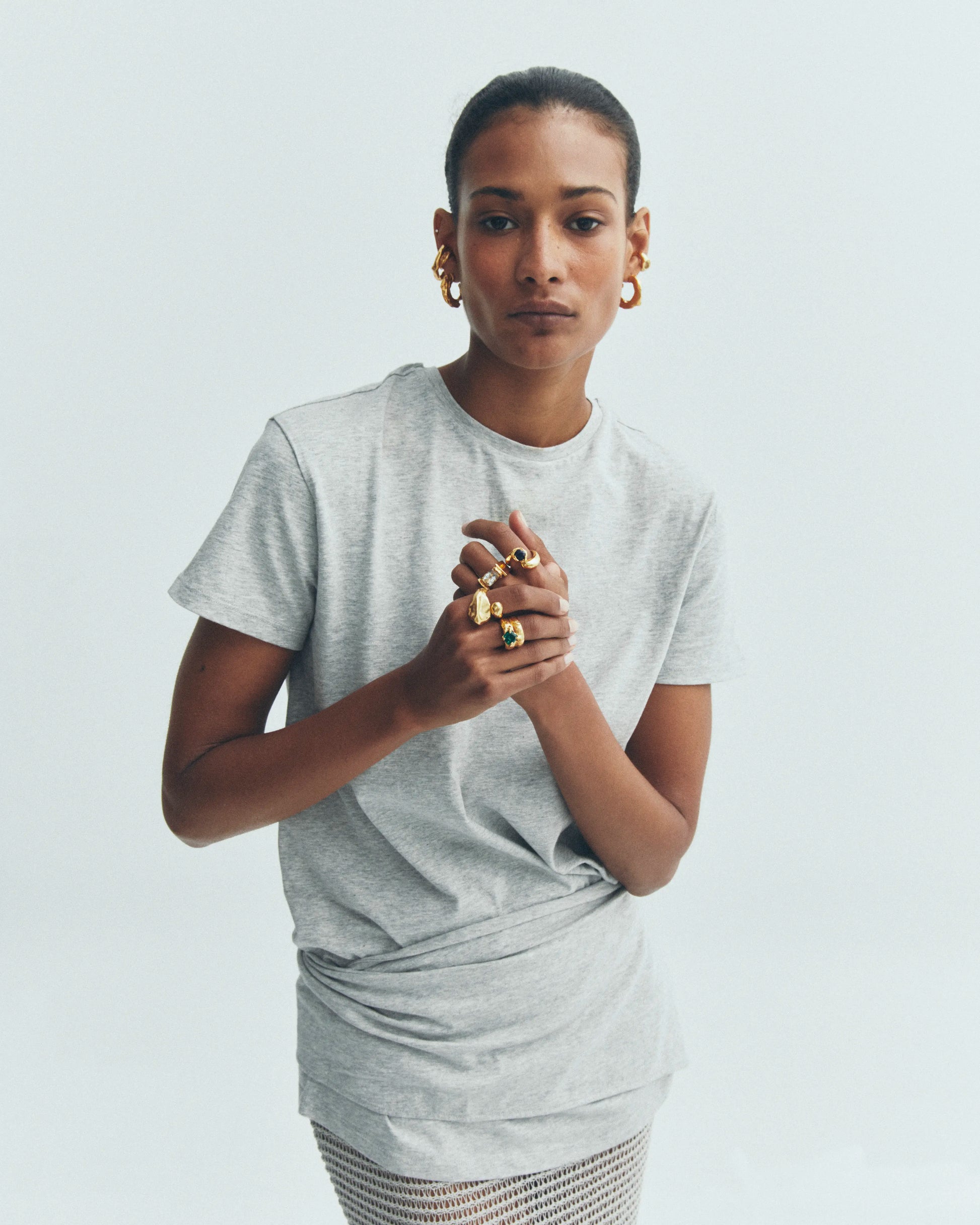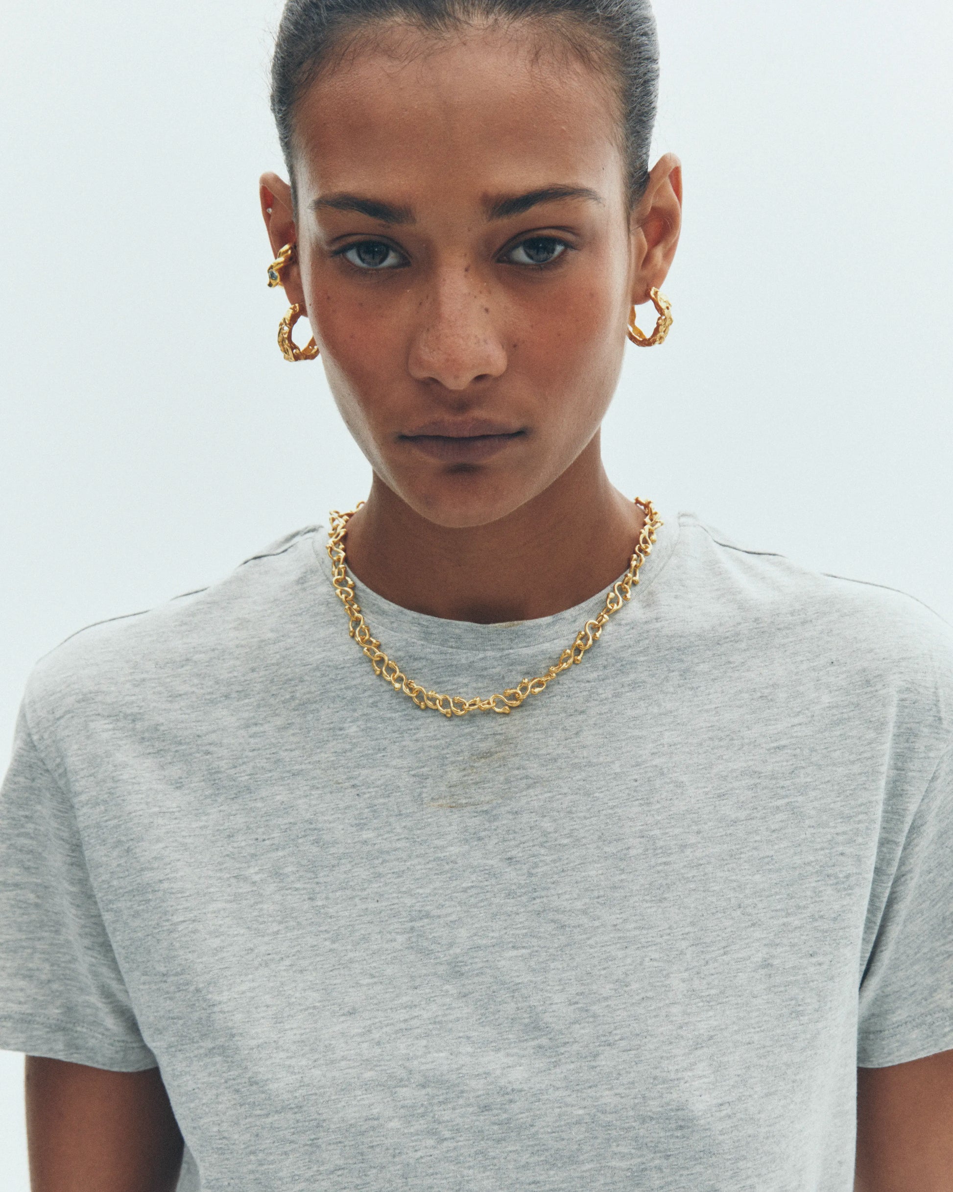 Cabo, handmade textured gold plated hoop earrings.