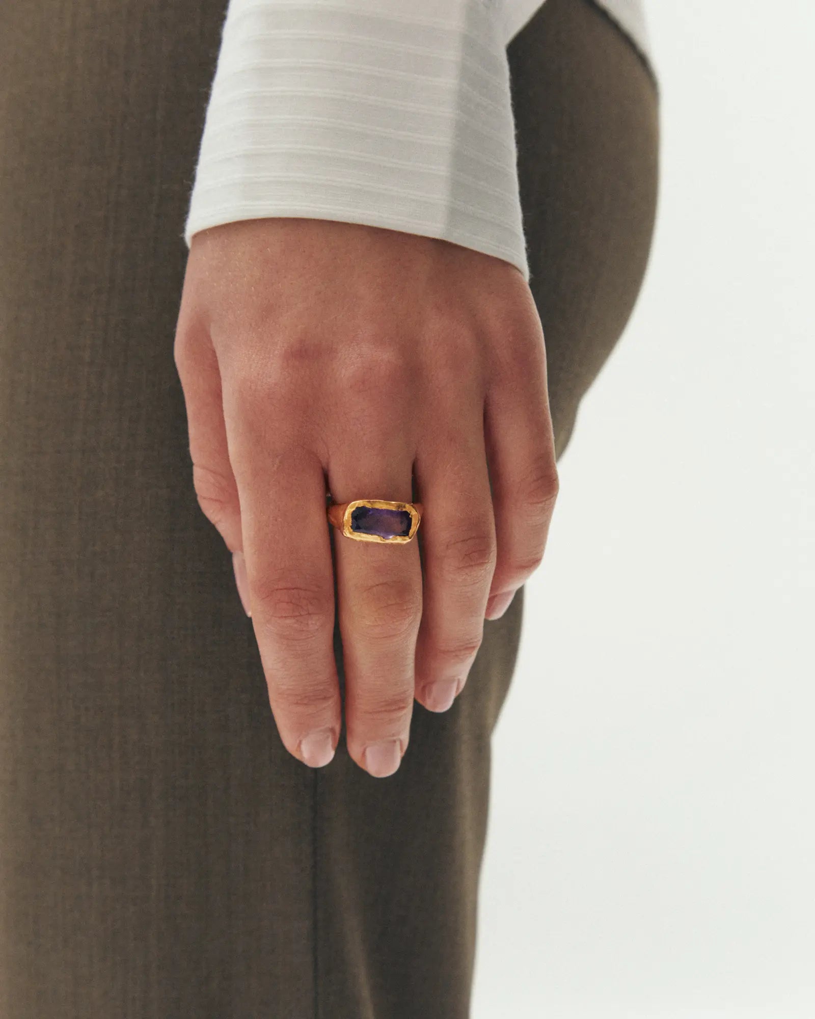 Febrero, handmade gold plated recycled 925 sterling silver ring with a natural Amethyst gem.