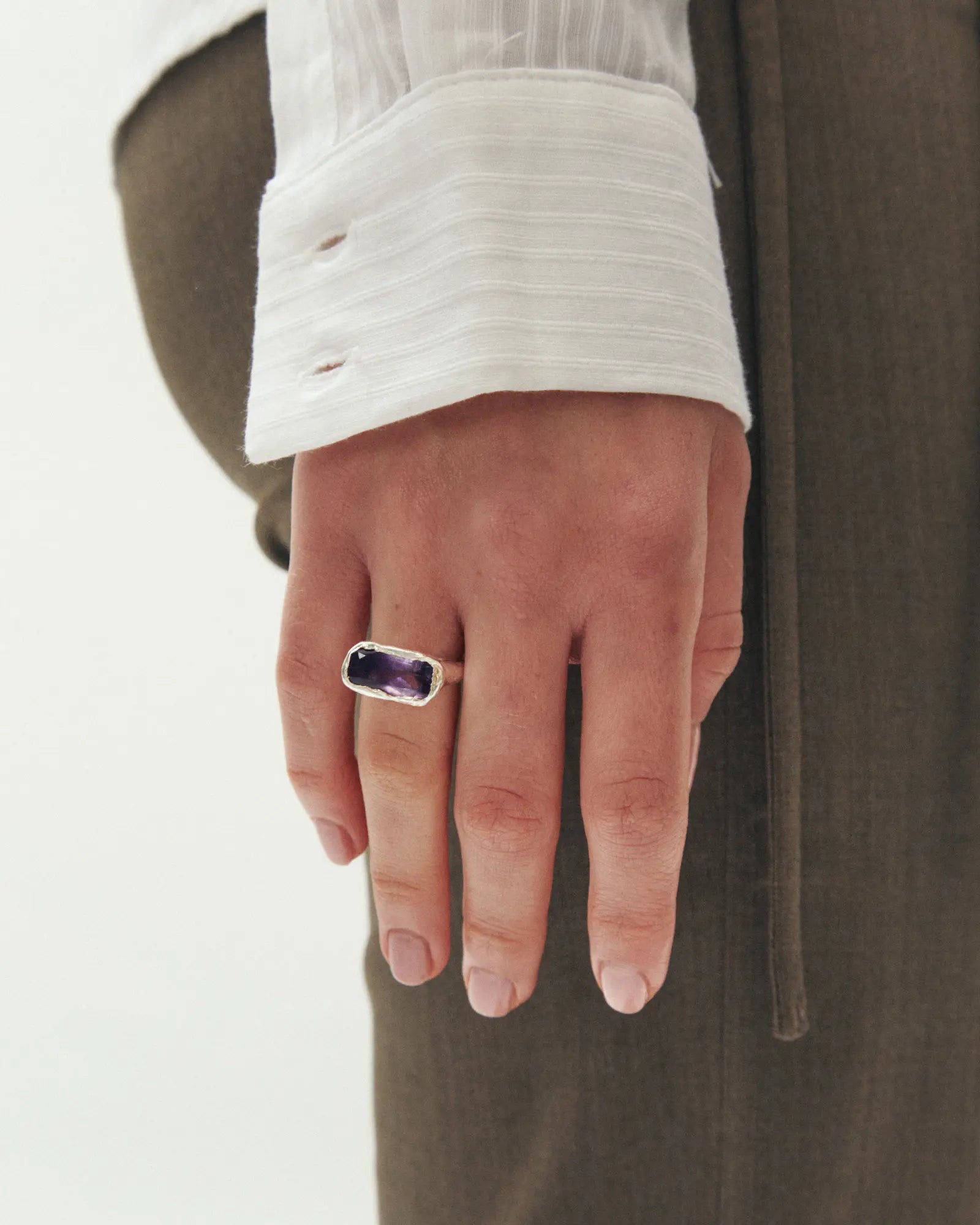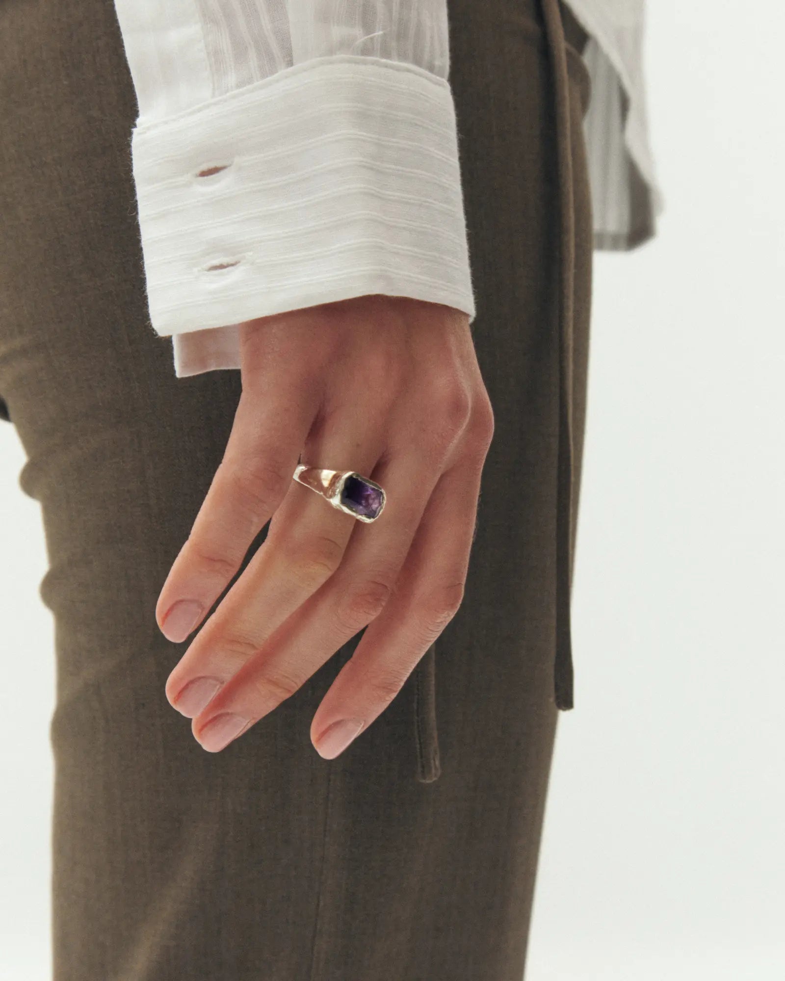 Febrero, handmade recycled 925 sterling silver ring with a natural Amethyst gem.