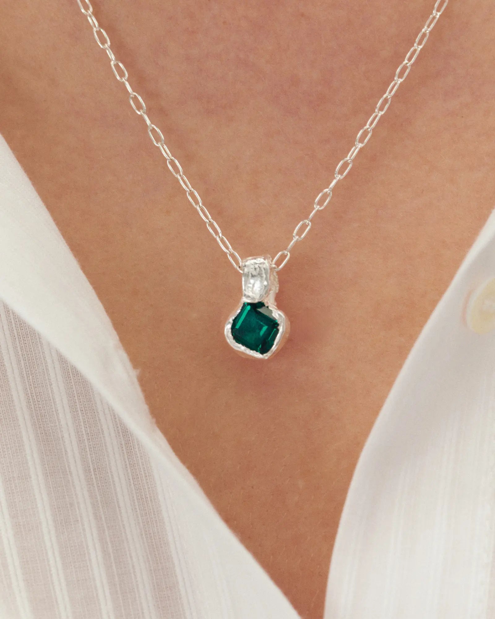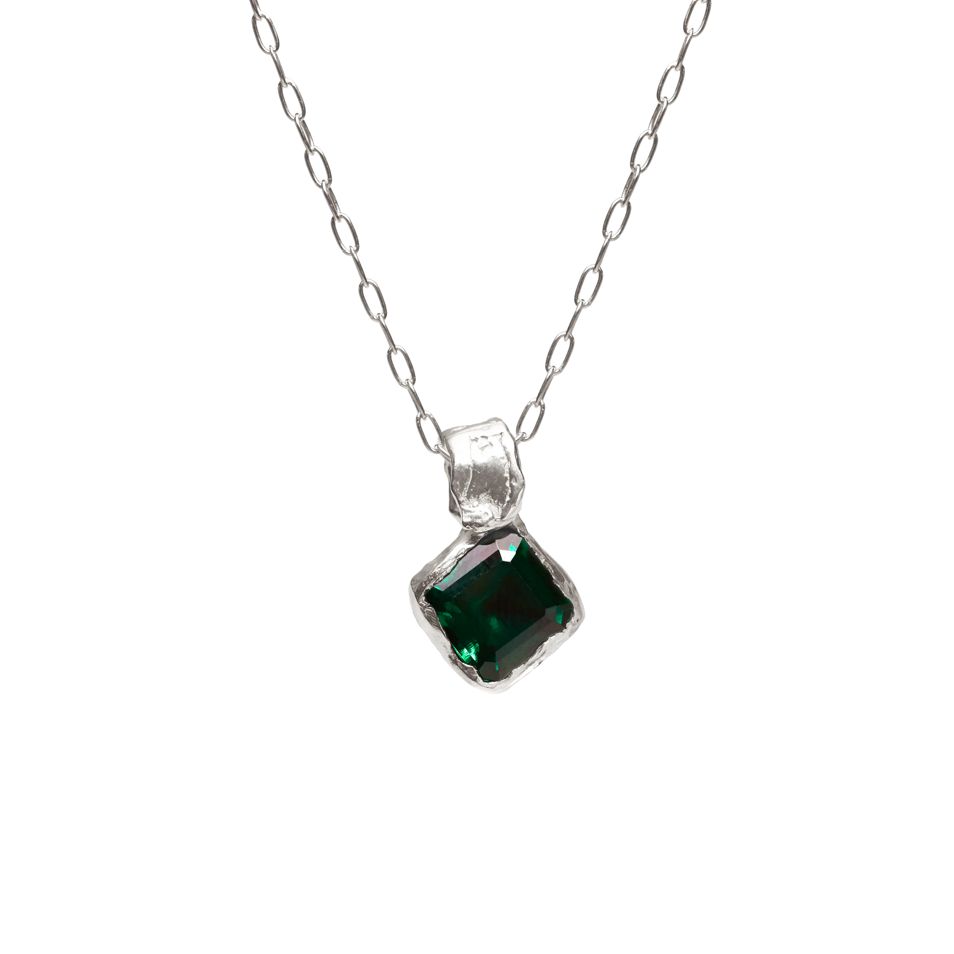 Mayo, handmade recycled 925 sterling silver necklace with a natural Lab Grown Emerald gem.