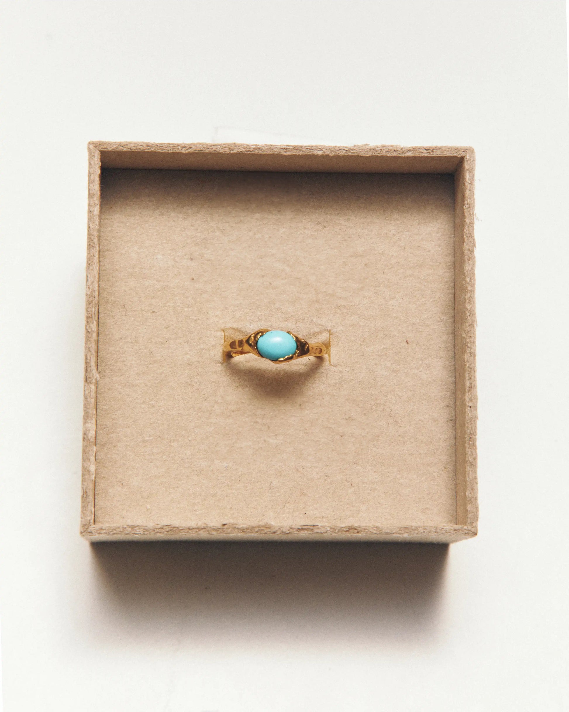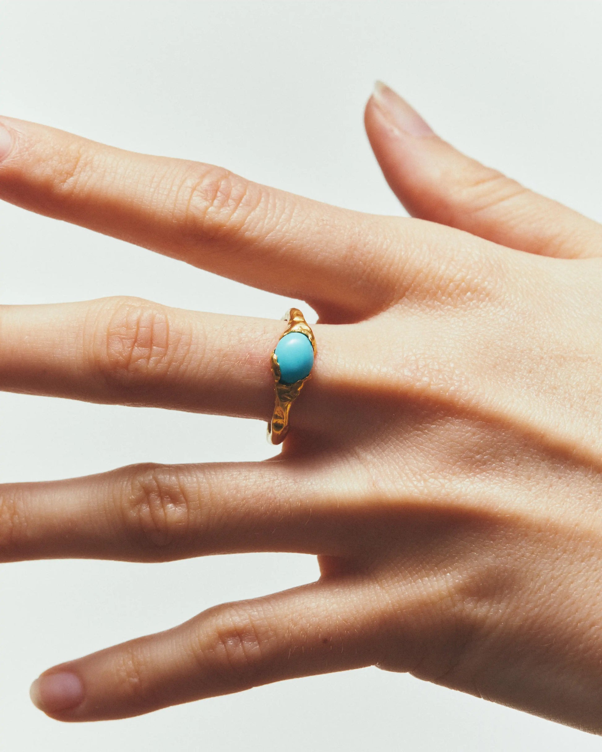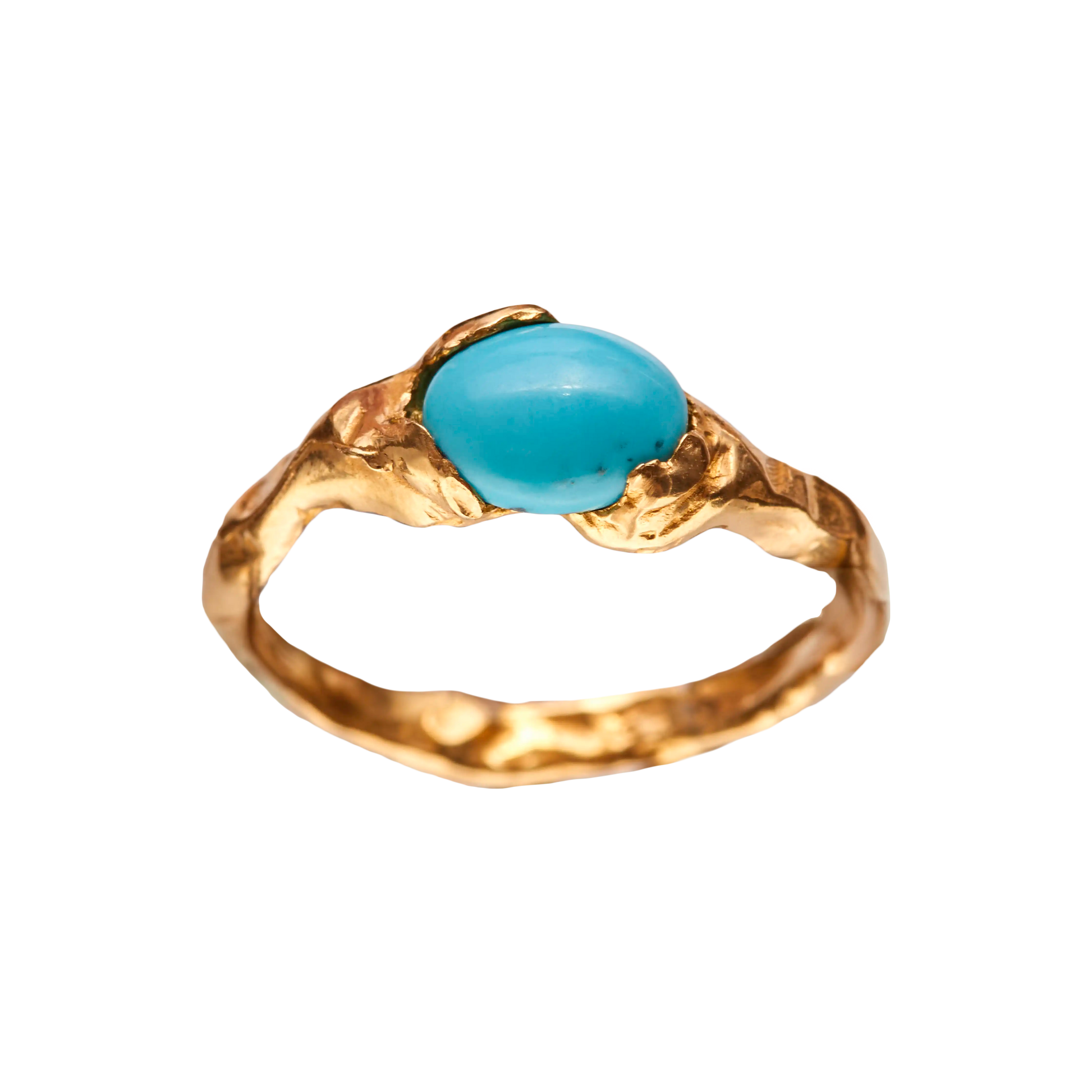 Diciembre, handmade gold plated recycled 925 sterling silver ring with a natural Turquoise gem.