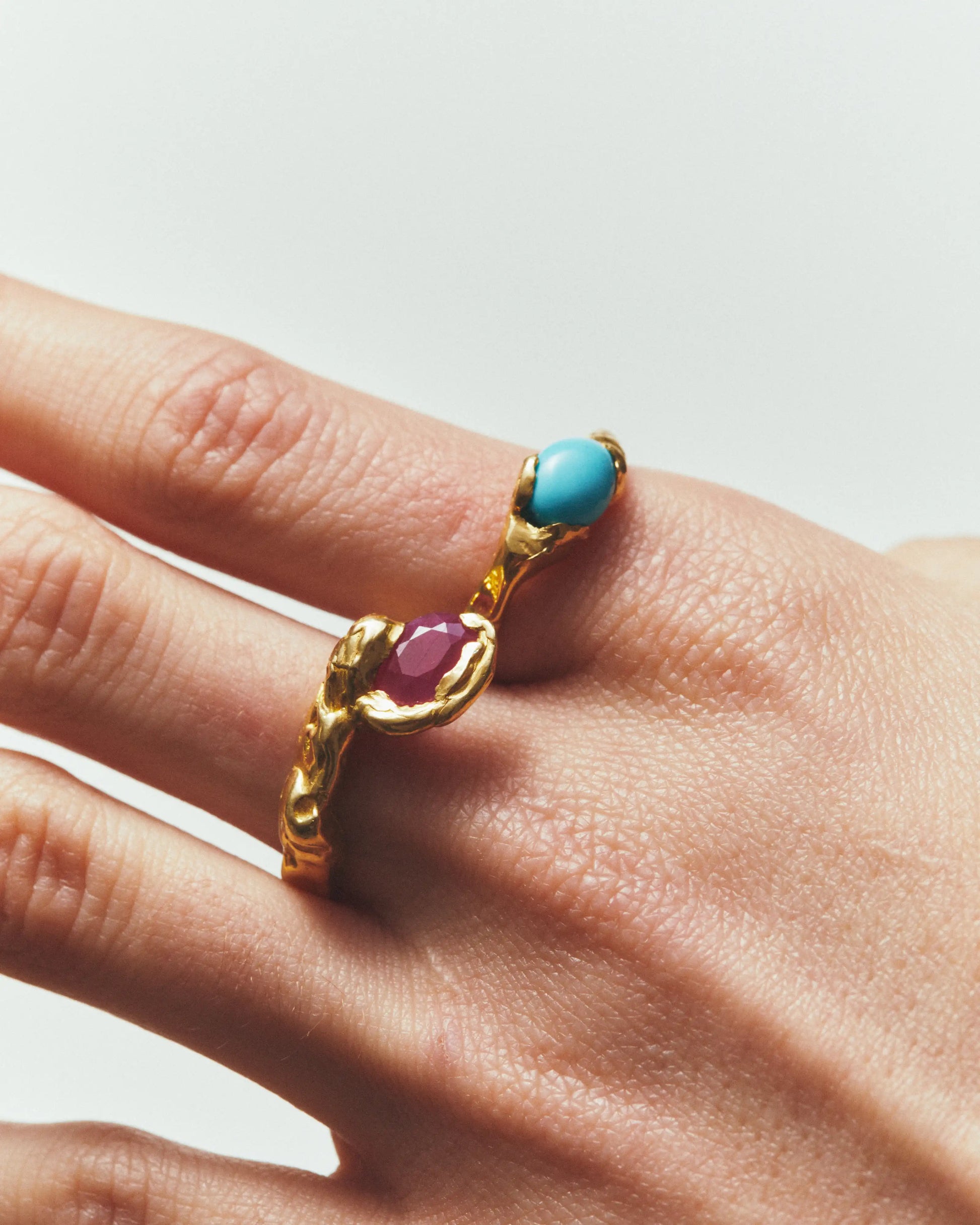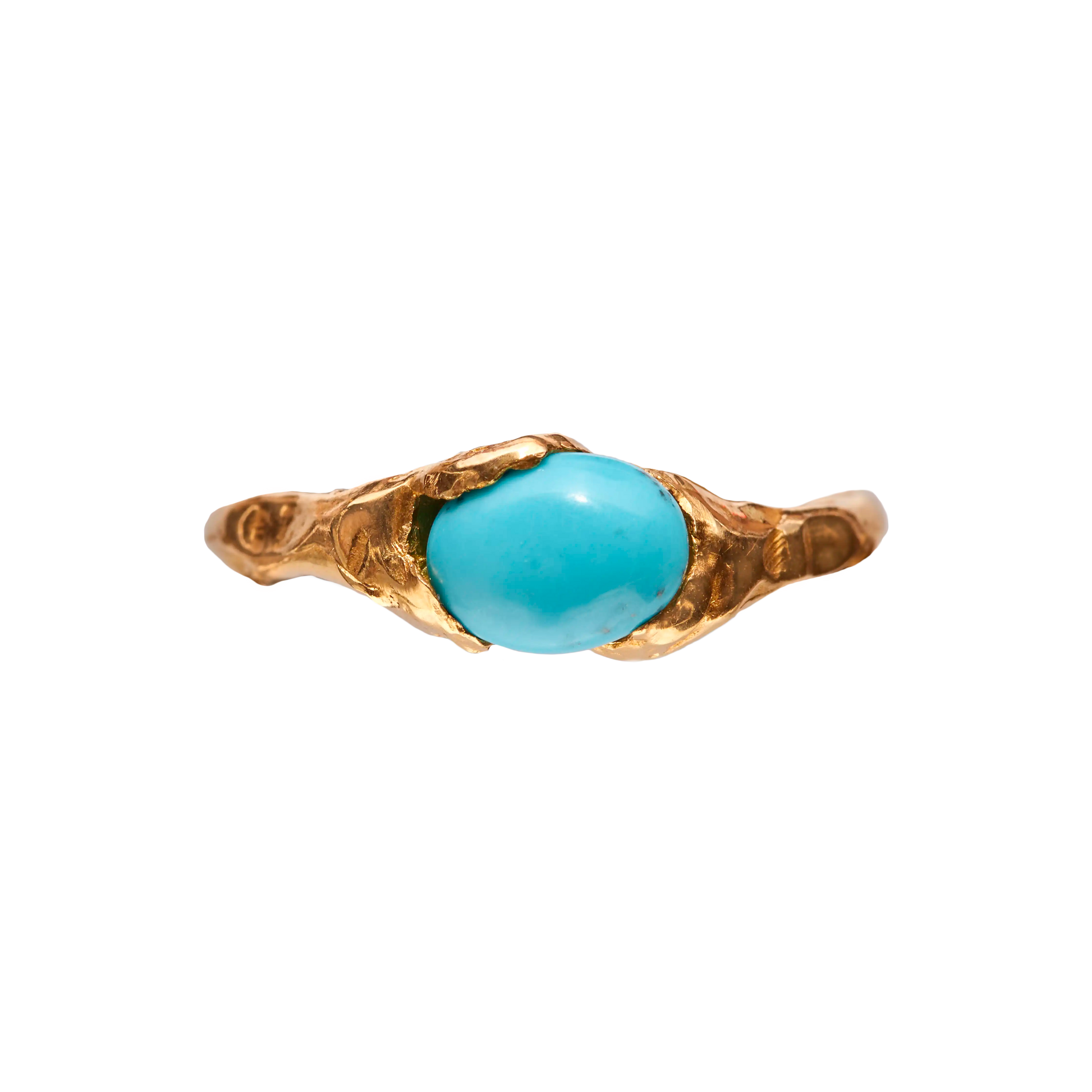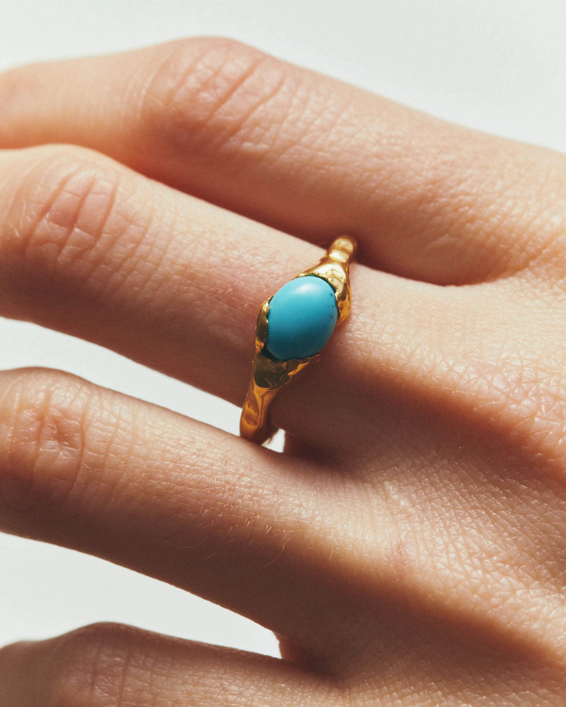 Diciembre, handmade gold plated recycled 925 sterling silver ring with a natural Turquoise gem.