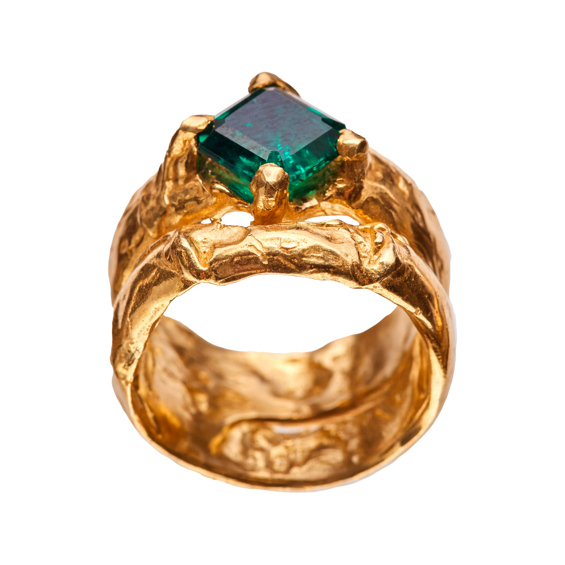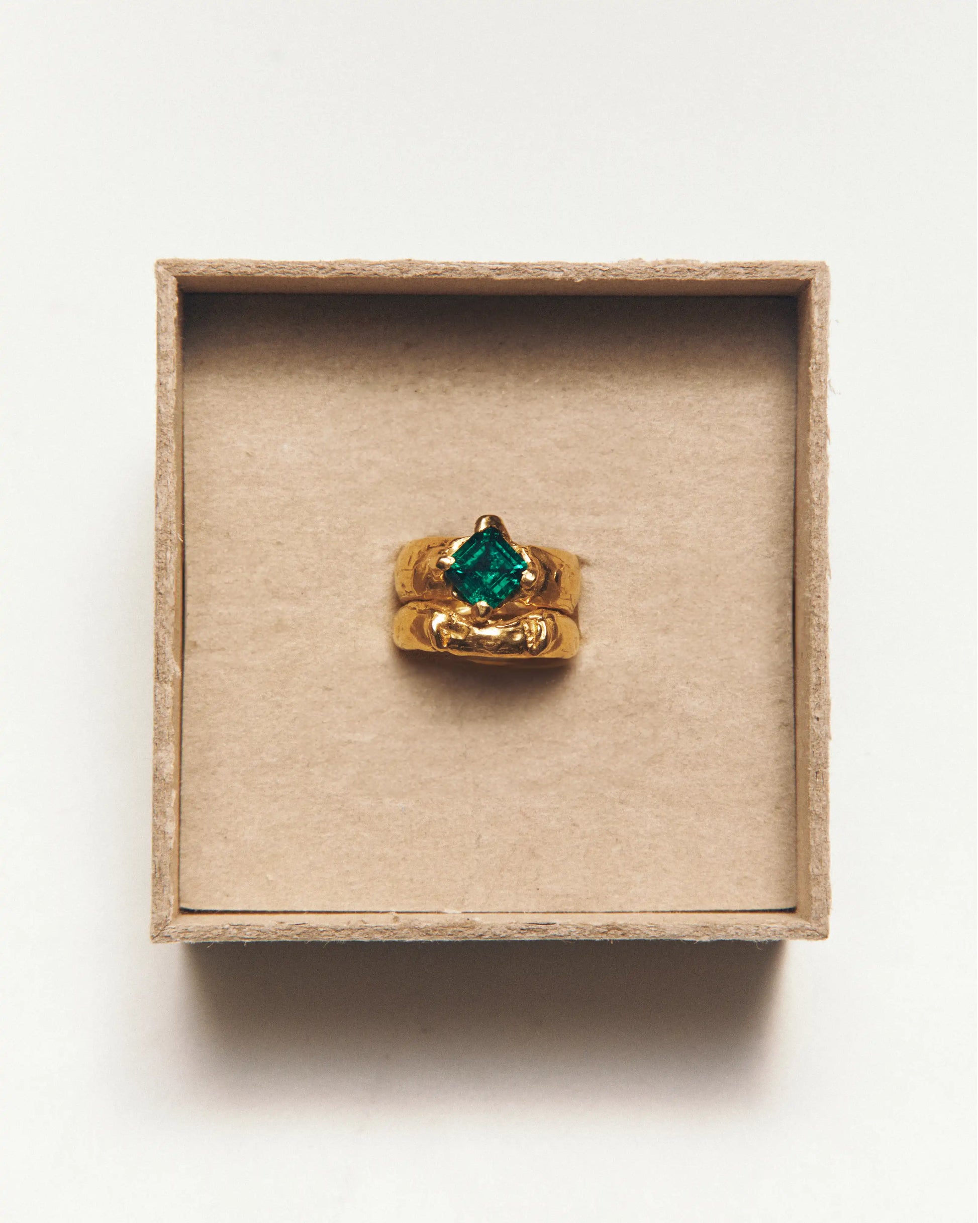 Mayo, handmade gold plated recycled 925 sterling silver ring with a natural Emerald gem.