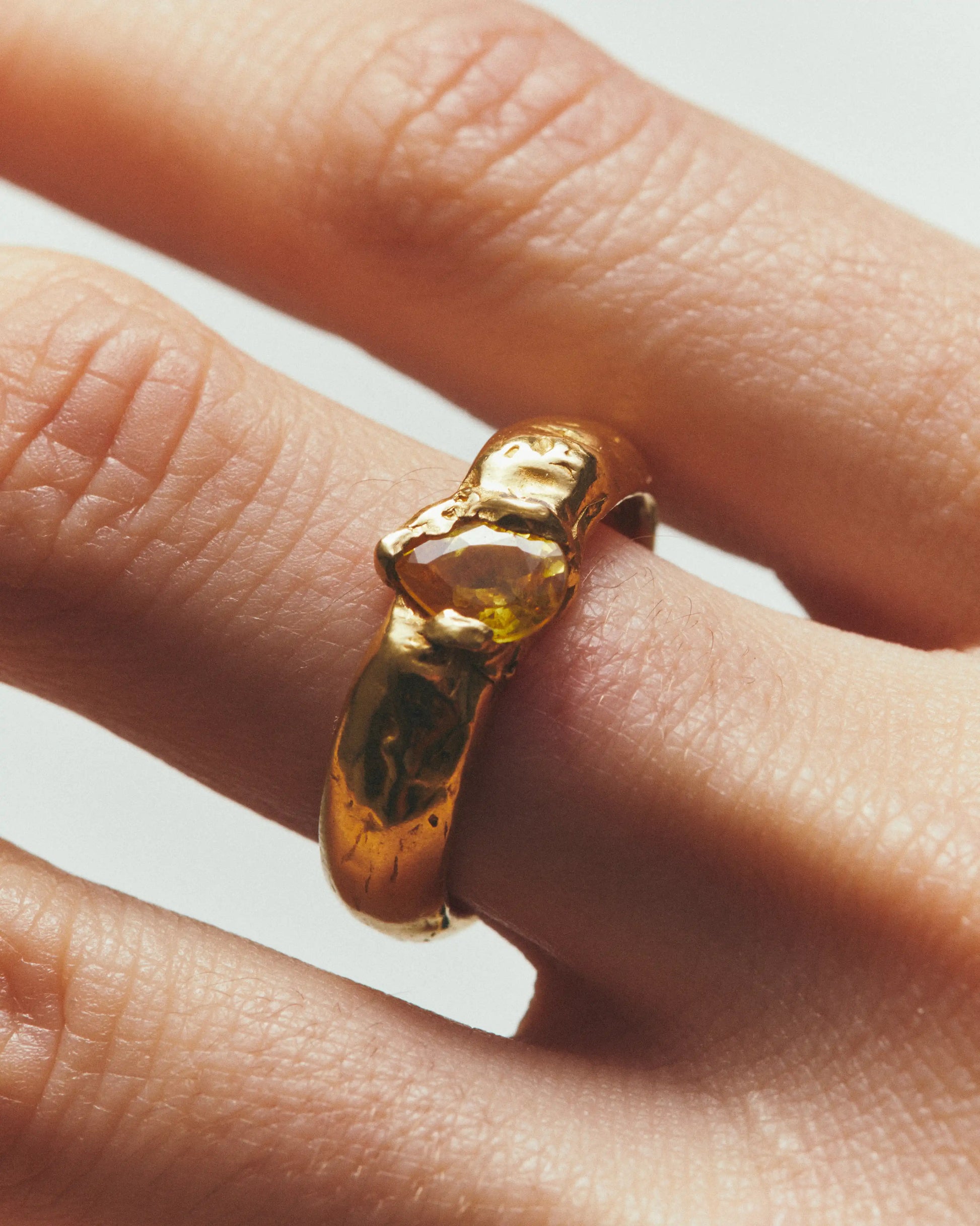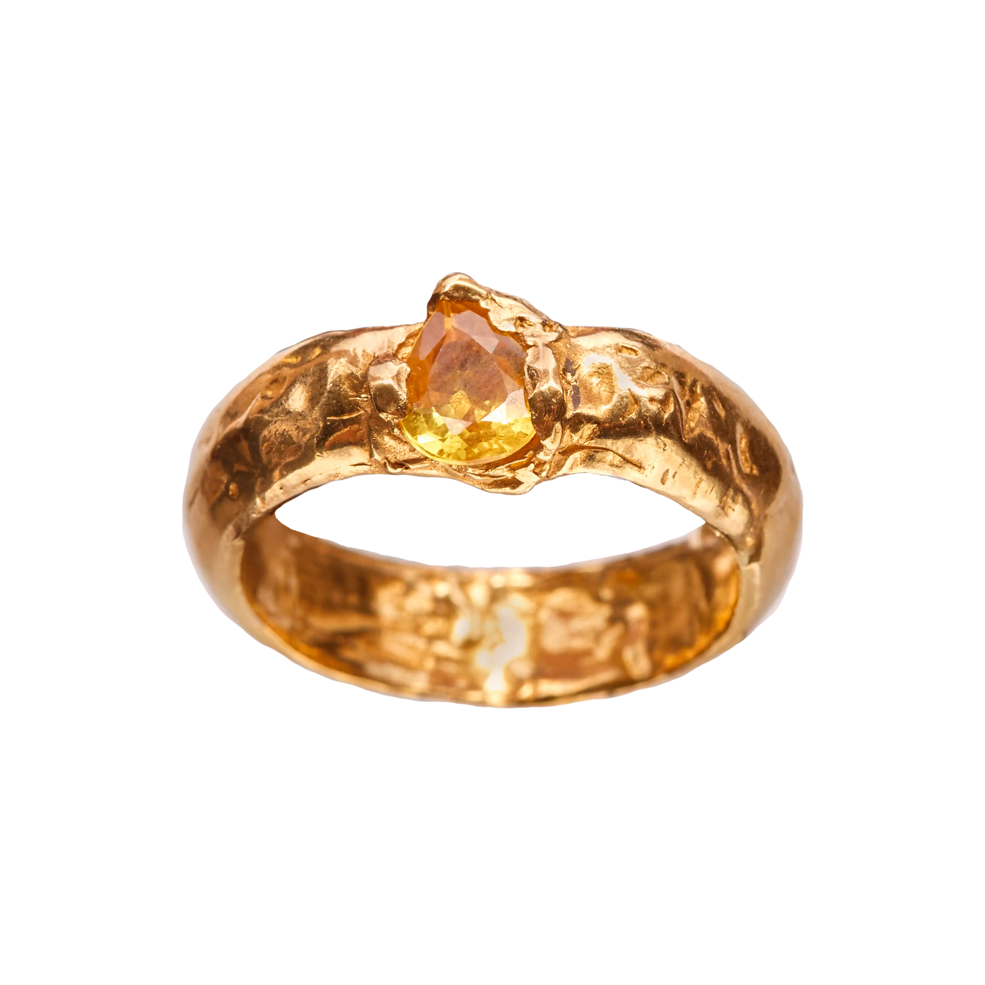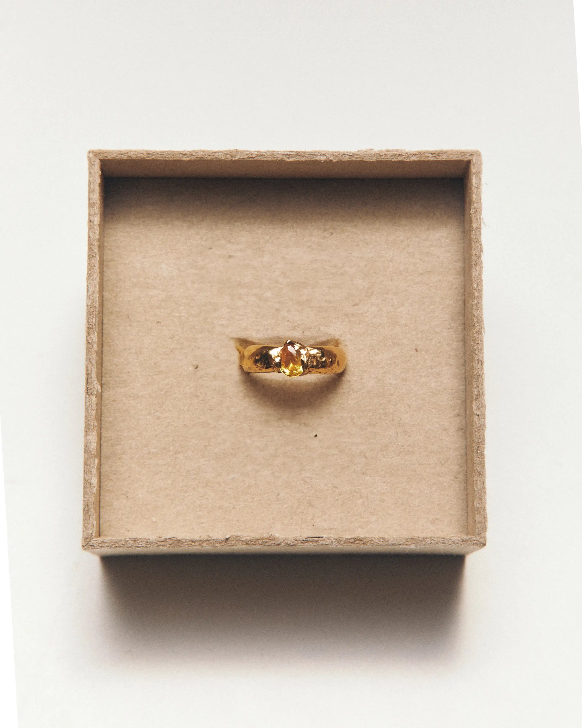 Noviembre, handmade gold plated recycled 925 sterling silver ring with a natural Golden Sapphire gem.