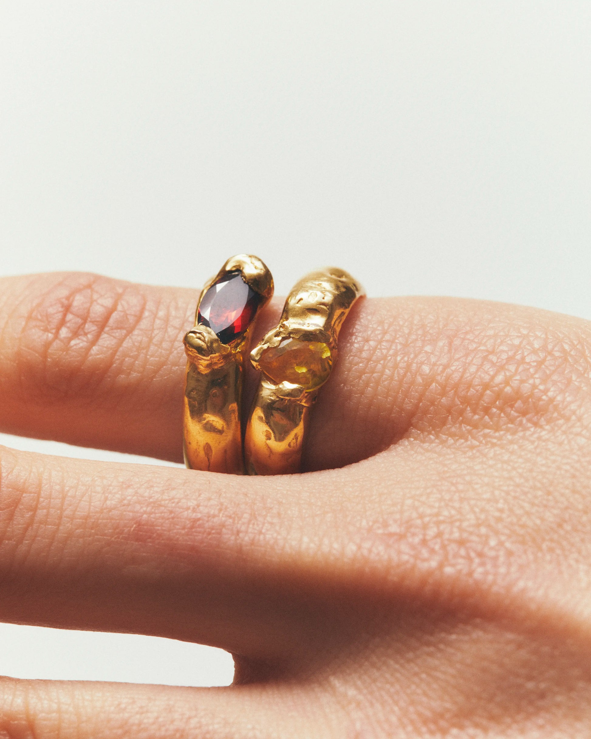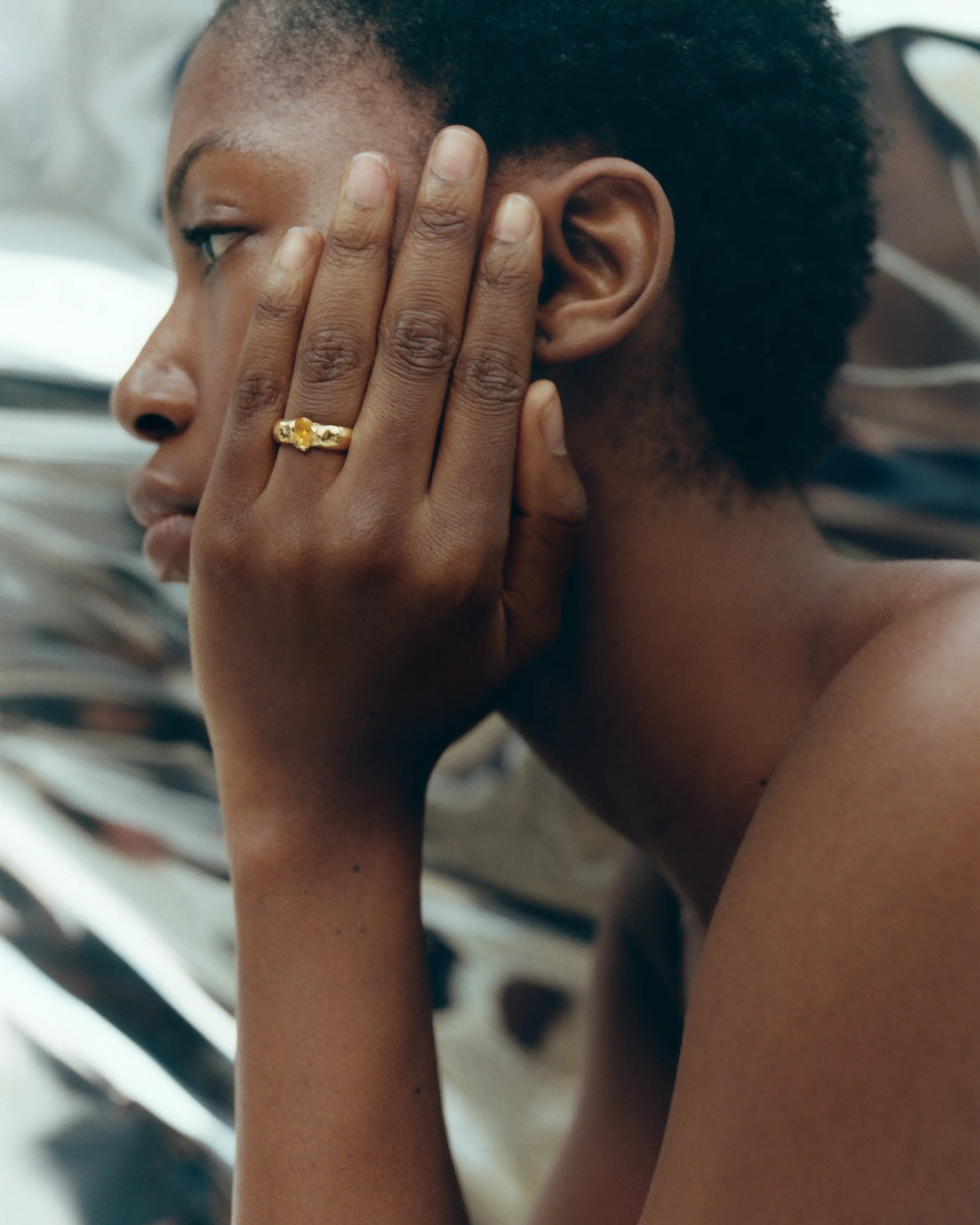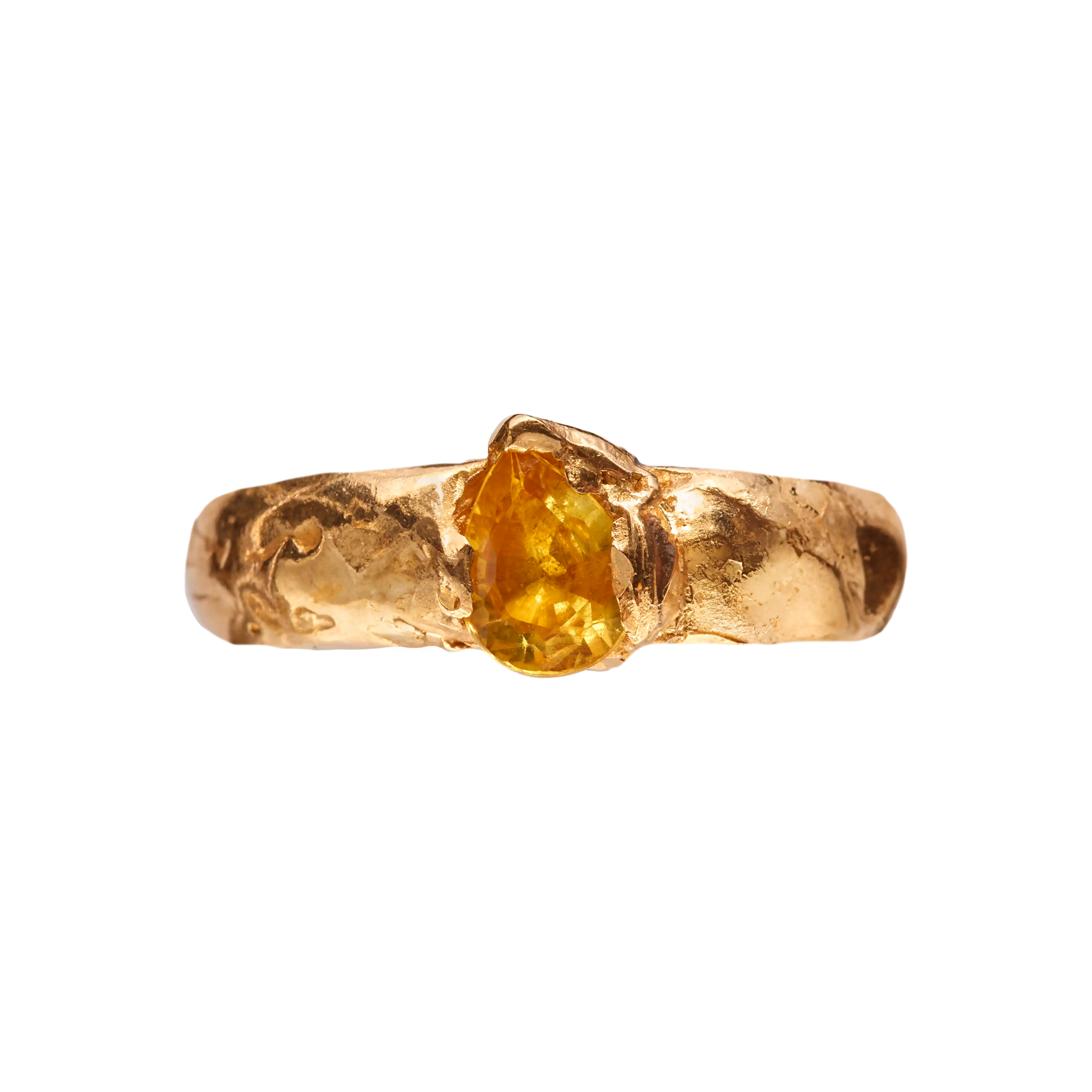 Noviembre, handmade gold plated recycled 925 sterling silver ring with a natural Golden Sapphire gem.