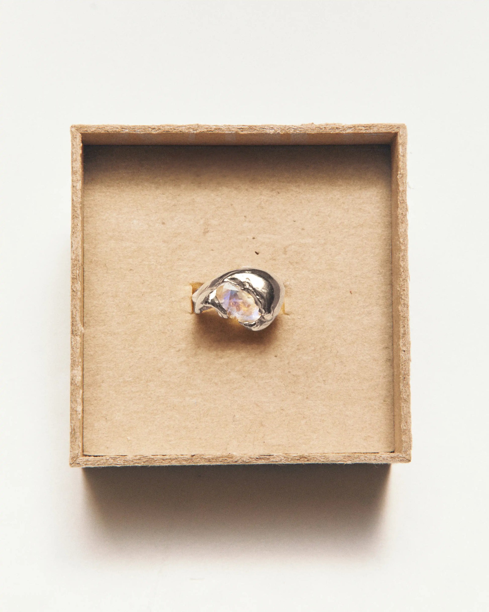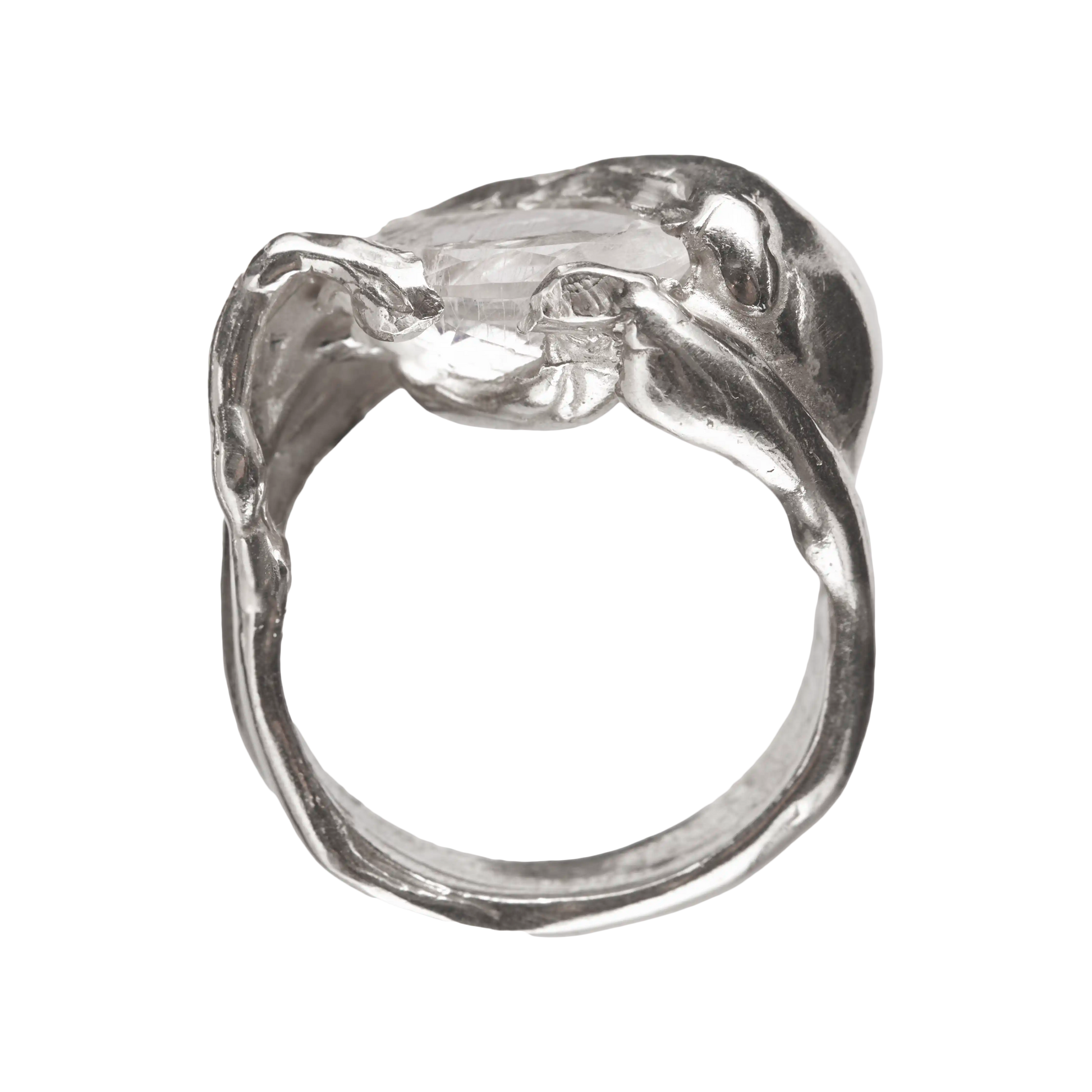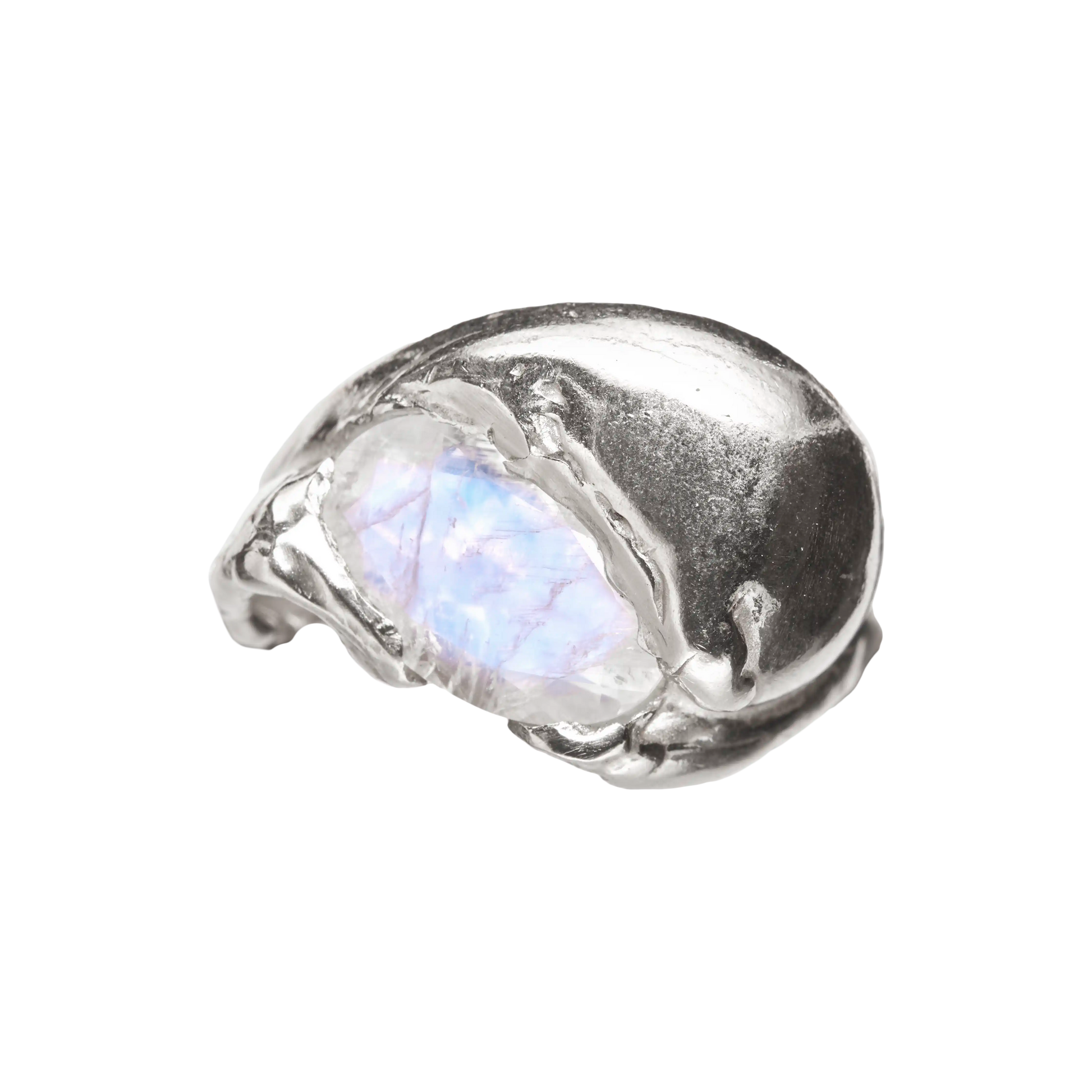 Junio, handmade recycled 925 sterling silver ring with a natural Moonstone gem.
