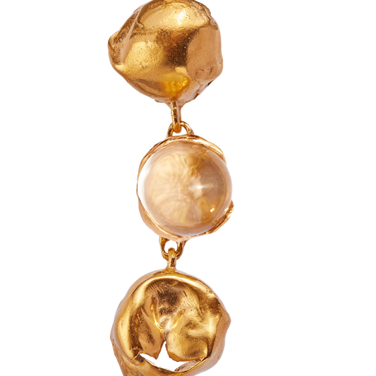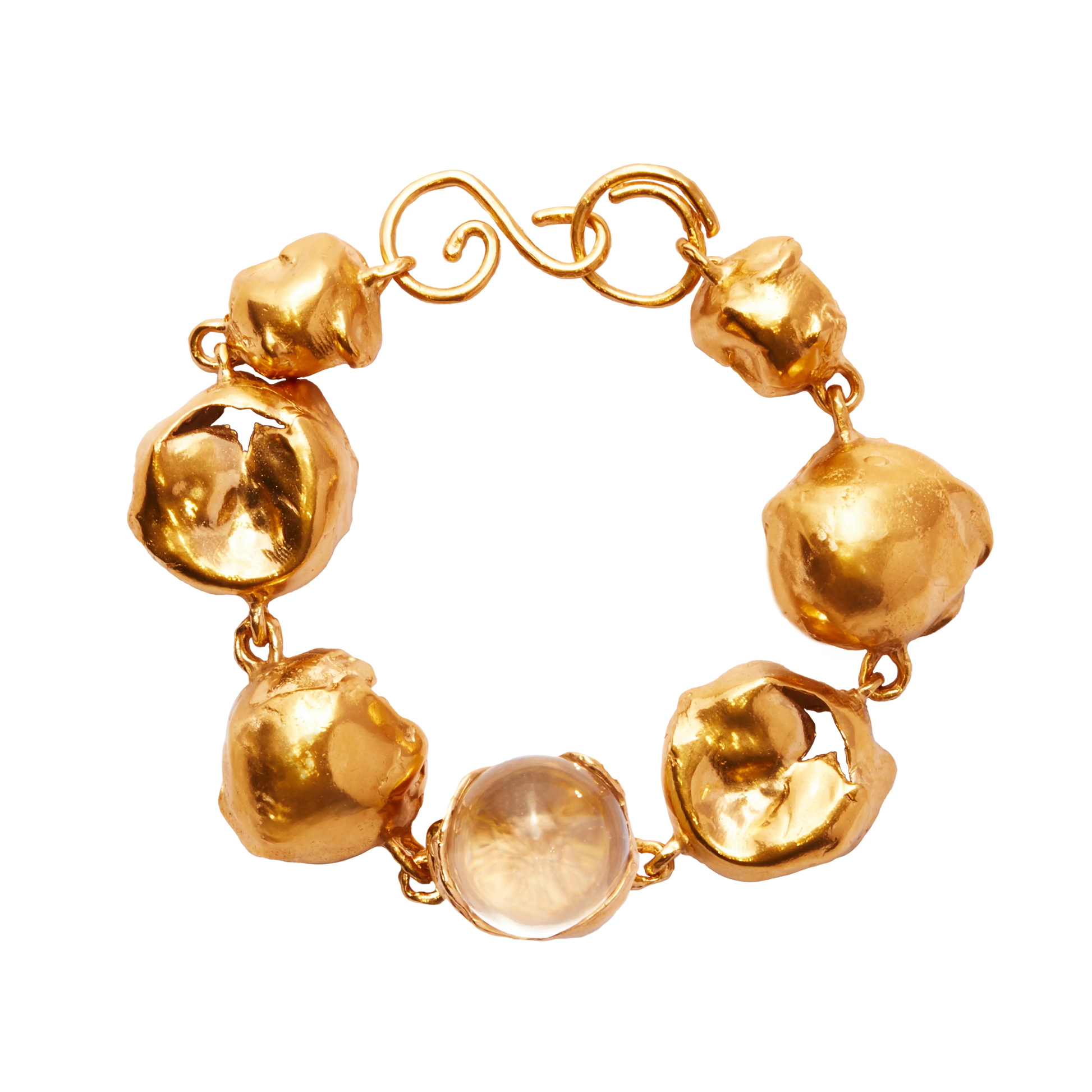 Pruna Agua, handmade gold plated bracelet with white crystal stone.