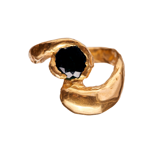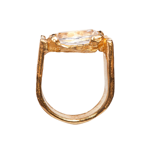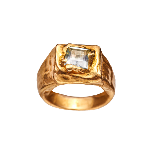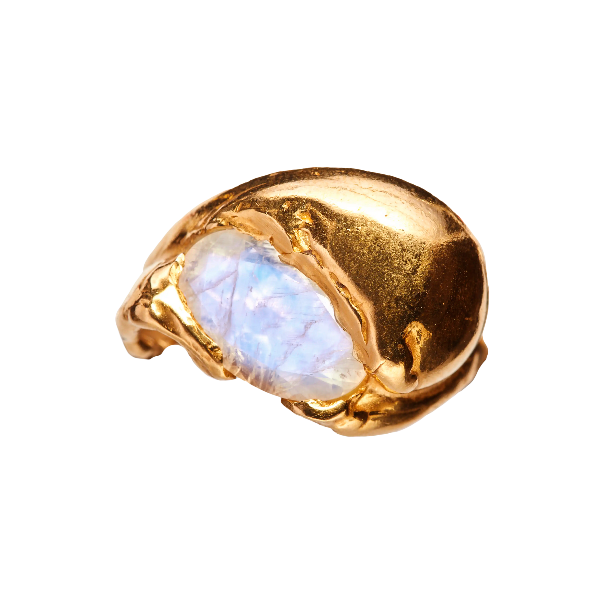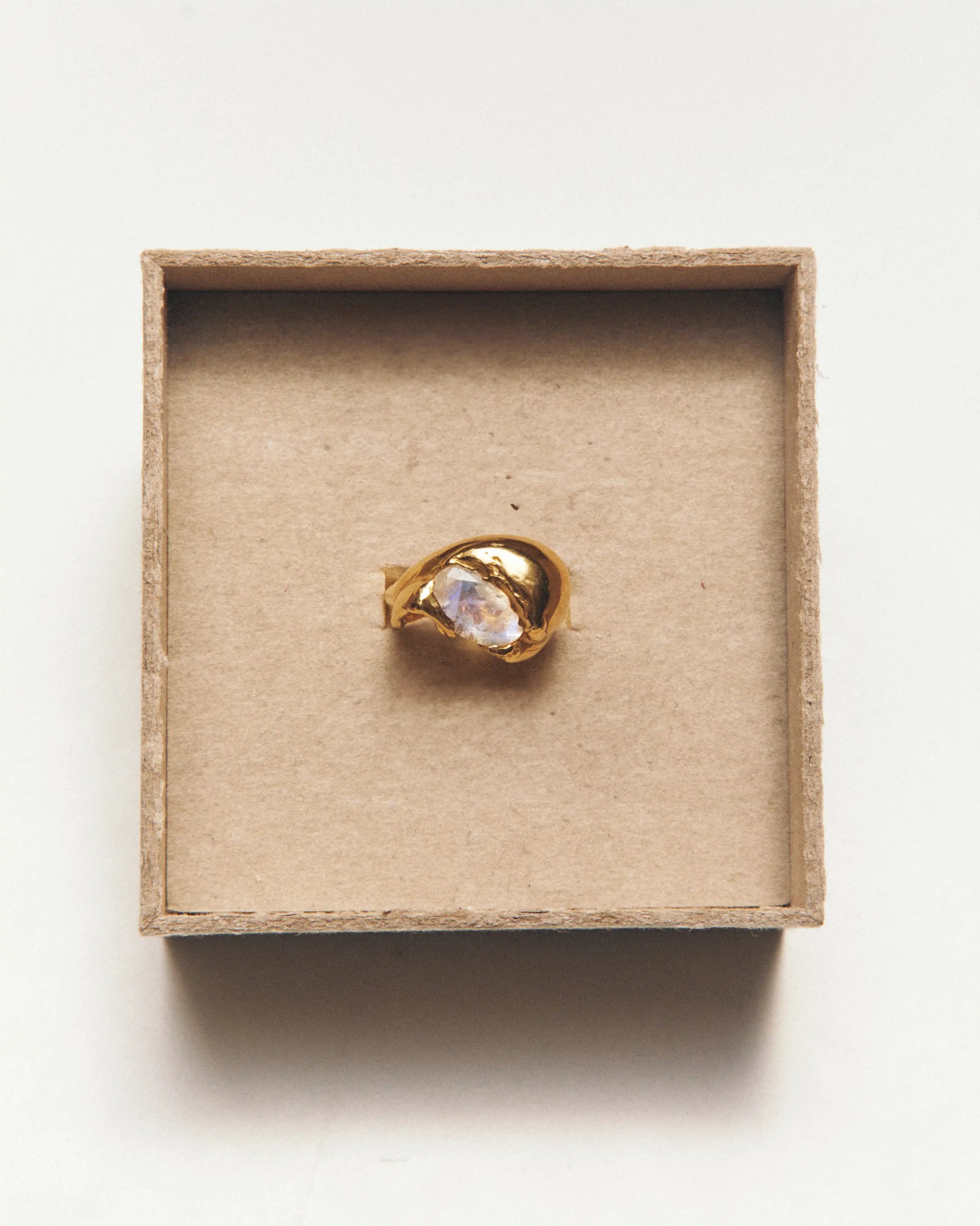 Junio, handmade gold plated recycled 925 sterling silver ring with a natural Moonstone gem.