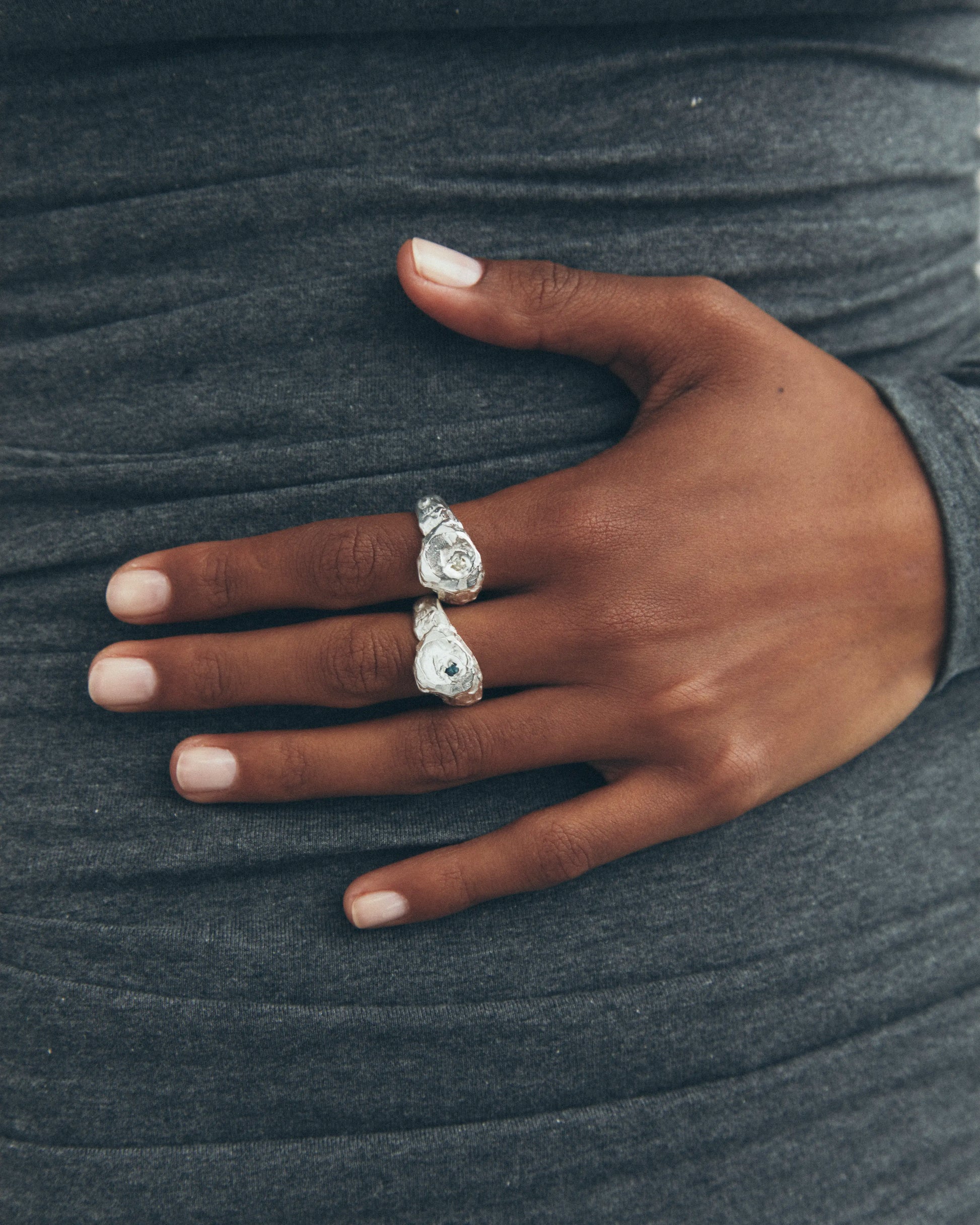 Marea Blue, handmade recycled 925 sterling silver ring with natural London Blue Topaz stone.