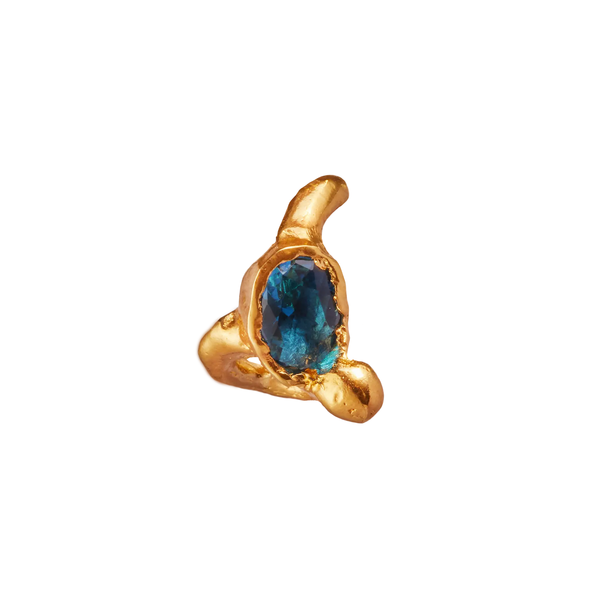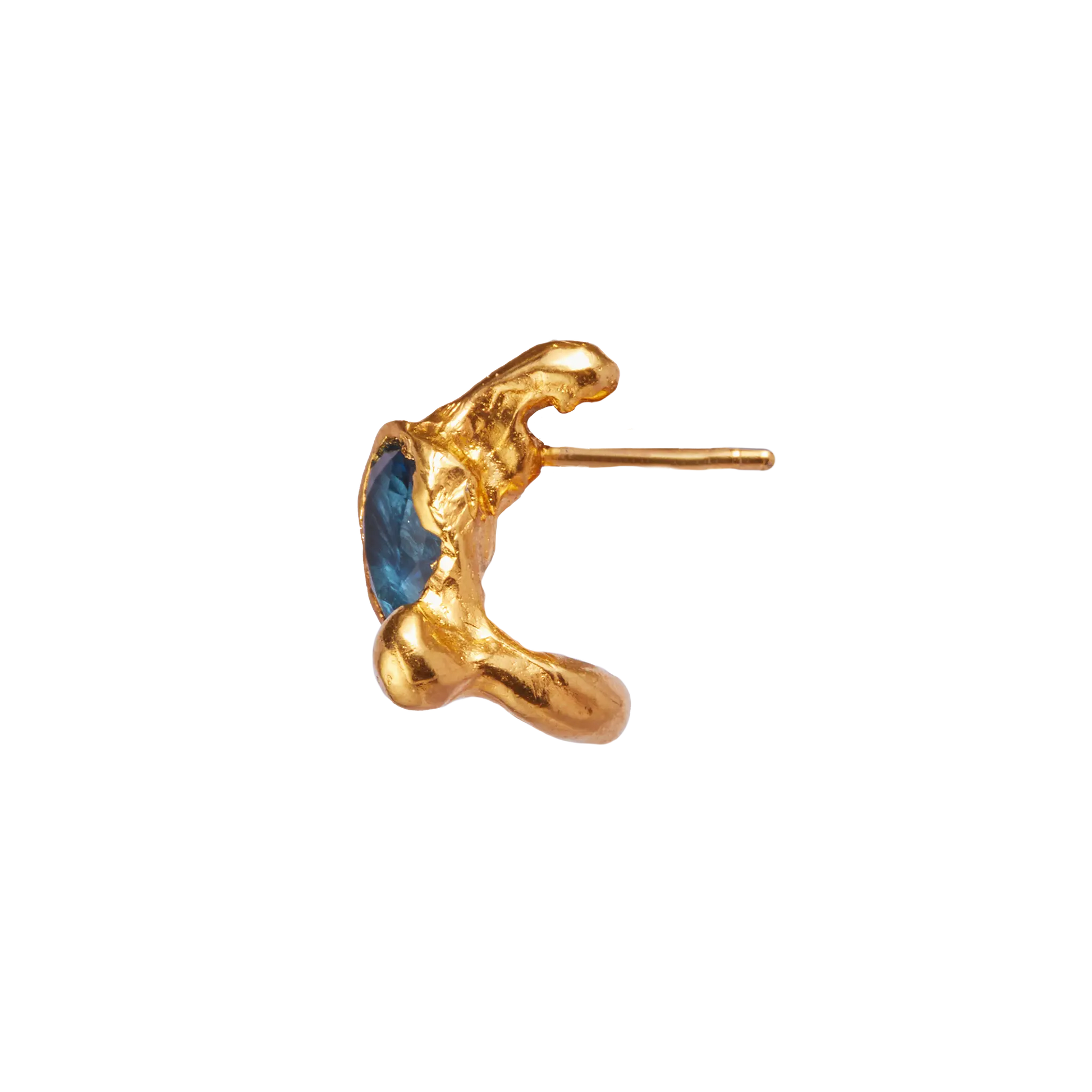 El Salto Blue, gold plated ear piercing with Blue Topaz stone. This earring is sold by unit.
