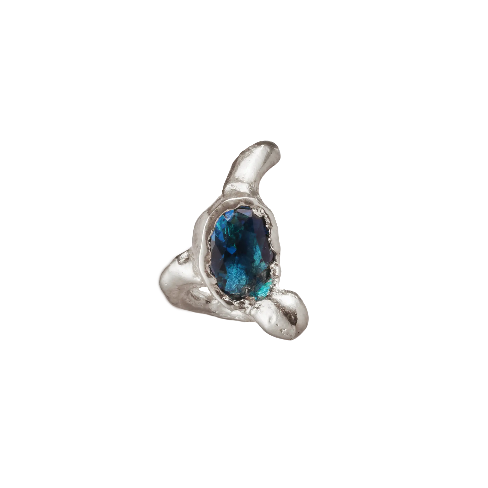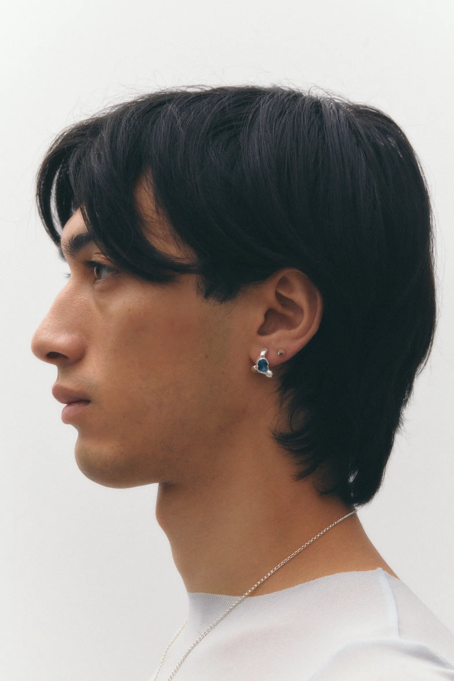 recycled 925 sterling silver ear piercing with Blue Topaz stone. This earring is sold by unit.