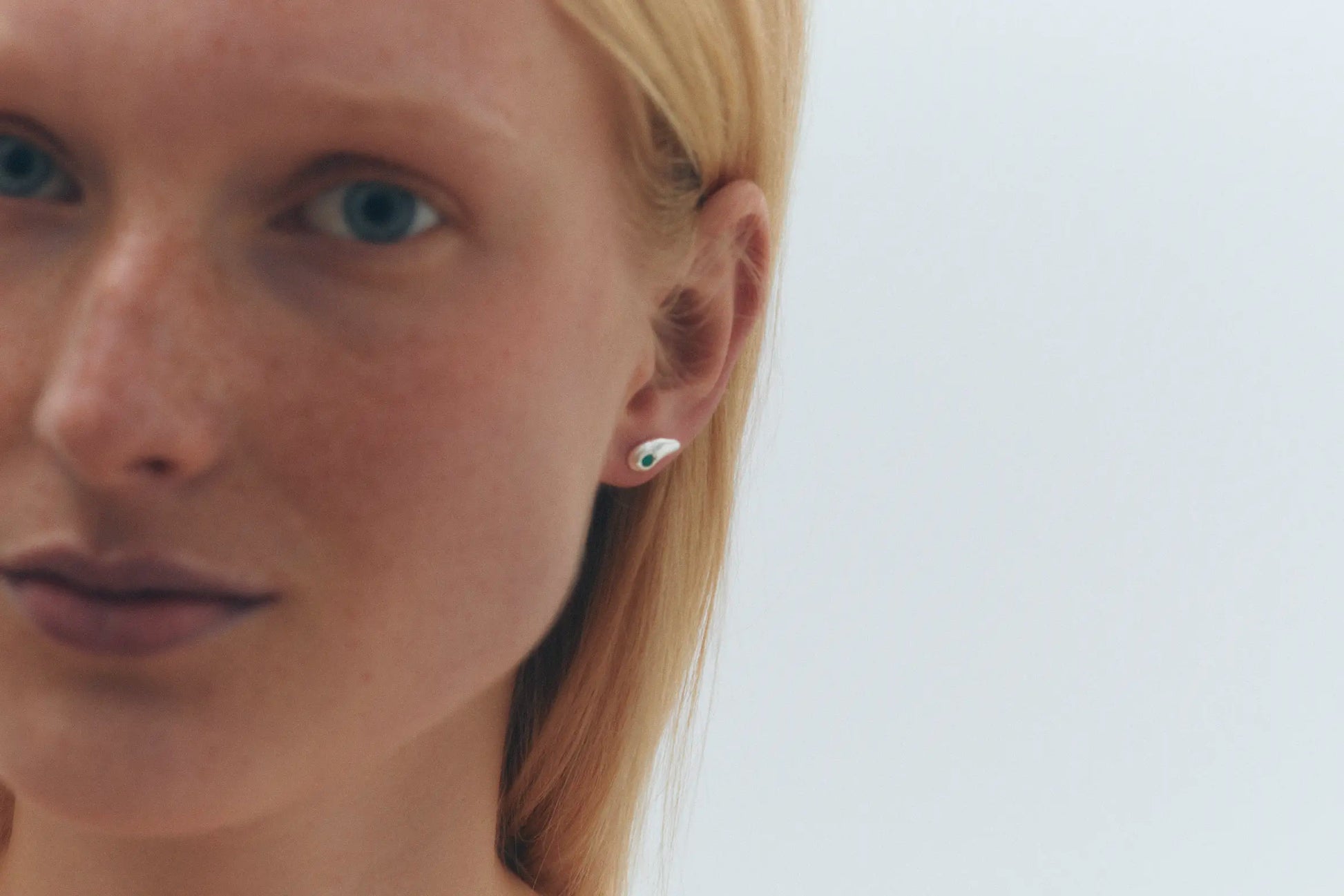 Mare Green, recycled 925 sterling silver ear piercing with green onyx natural stone.
