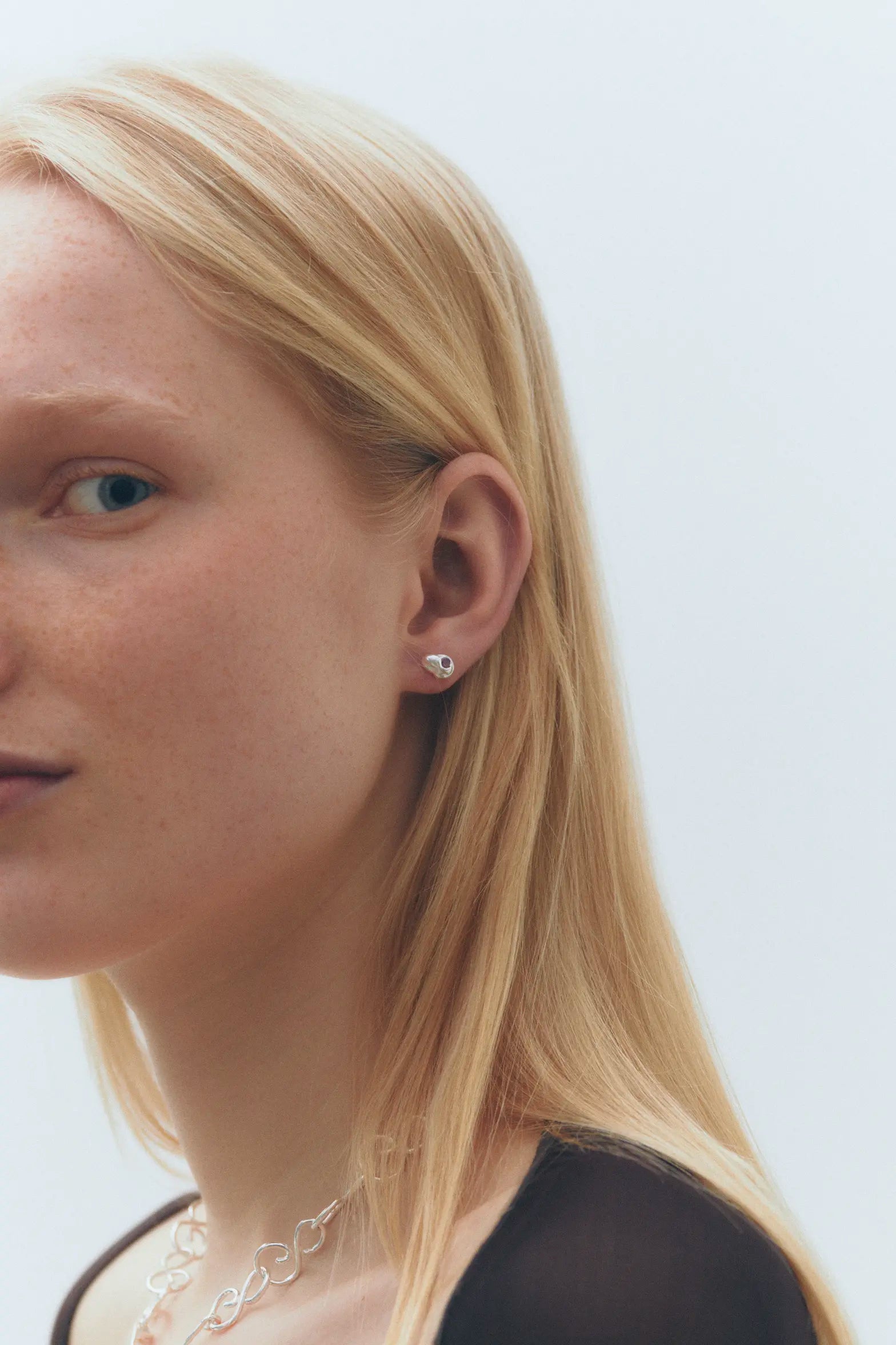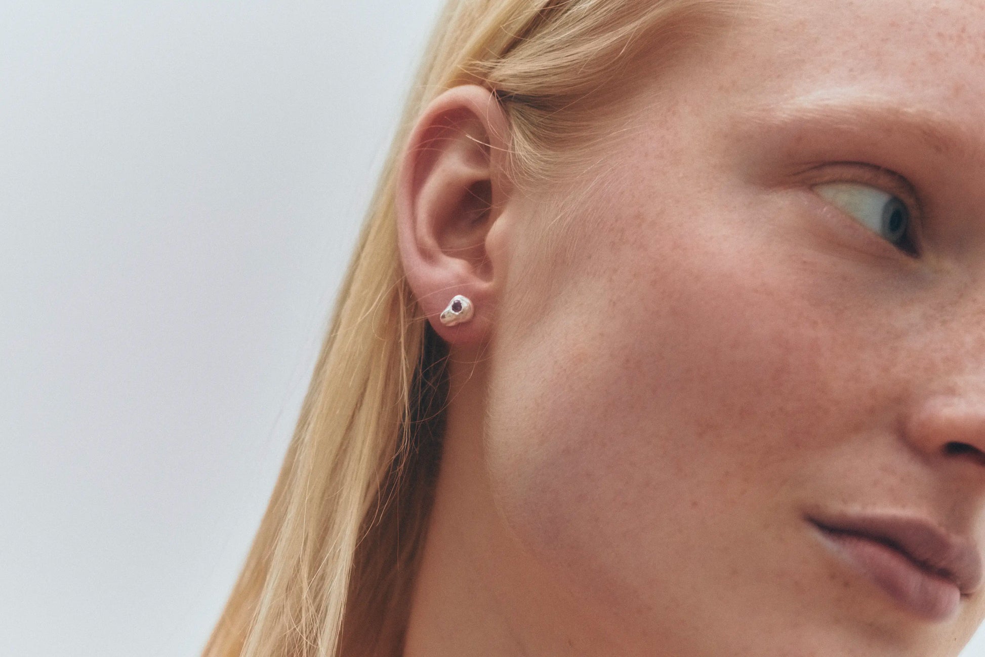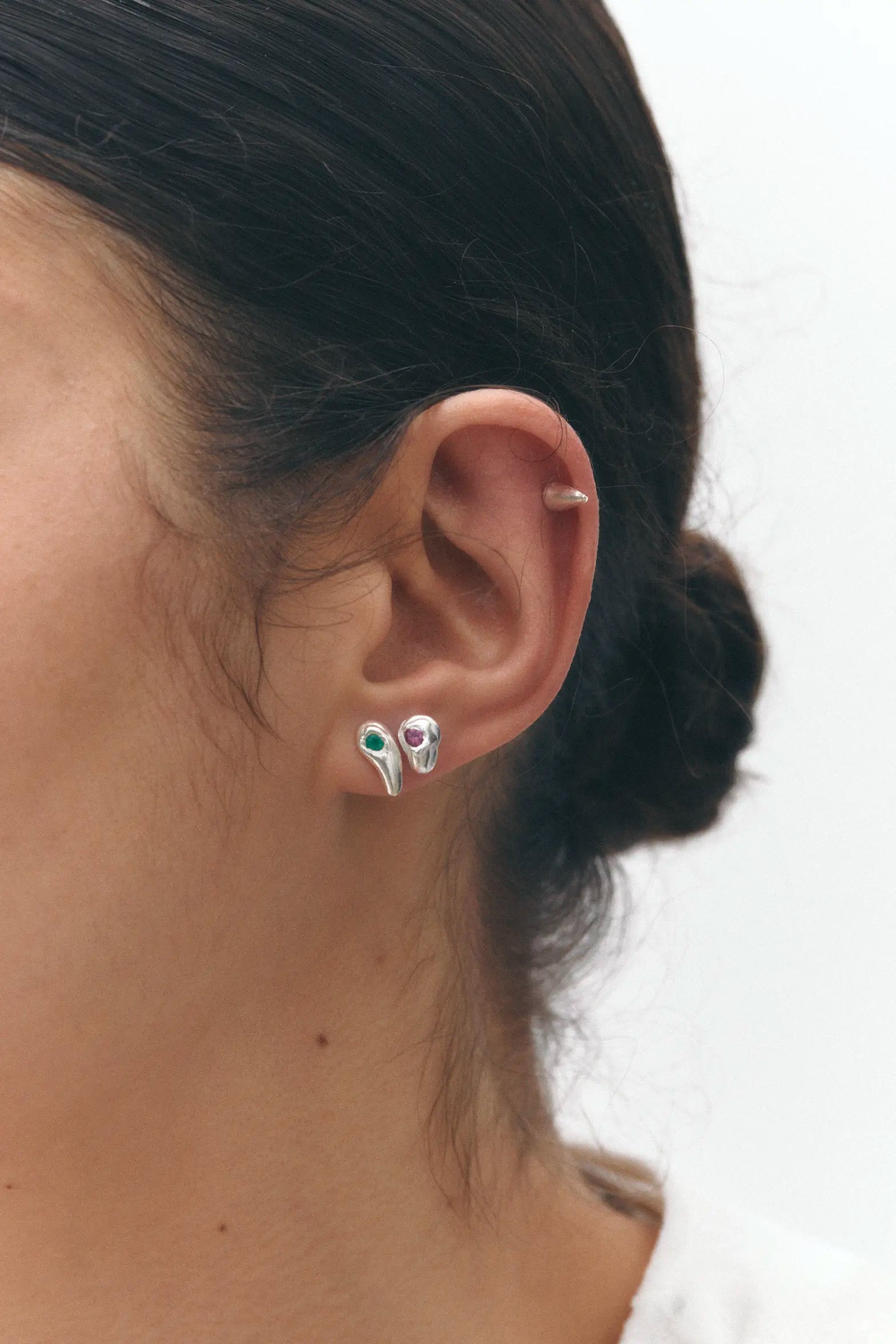 Mare Rose, gold plated ear piercing with natural rose garnet stone.