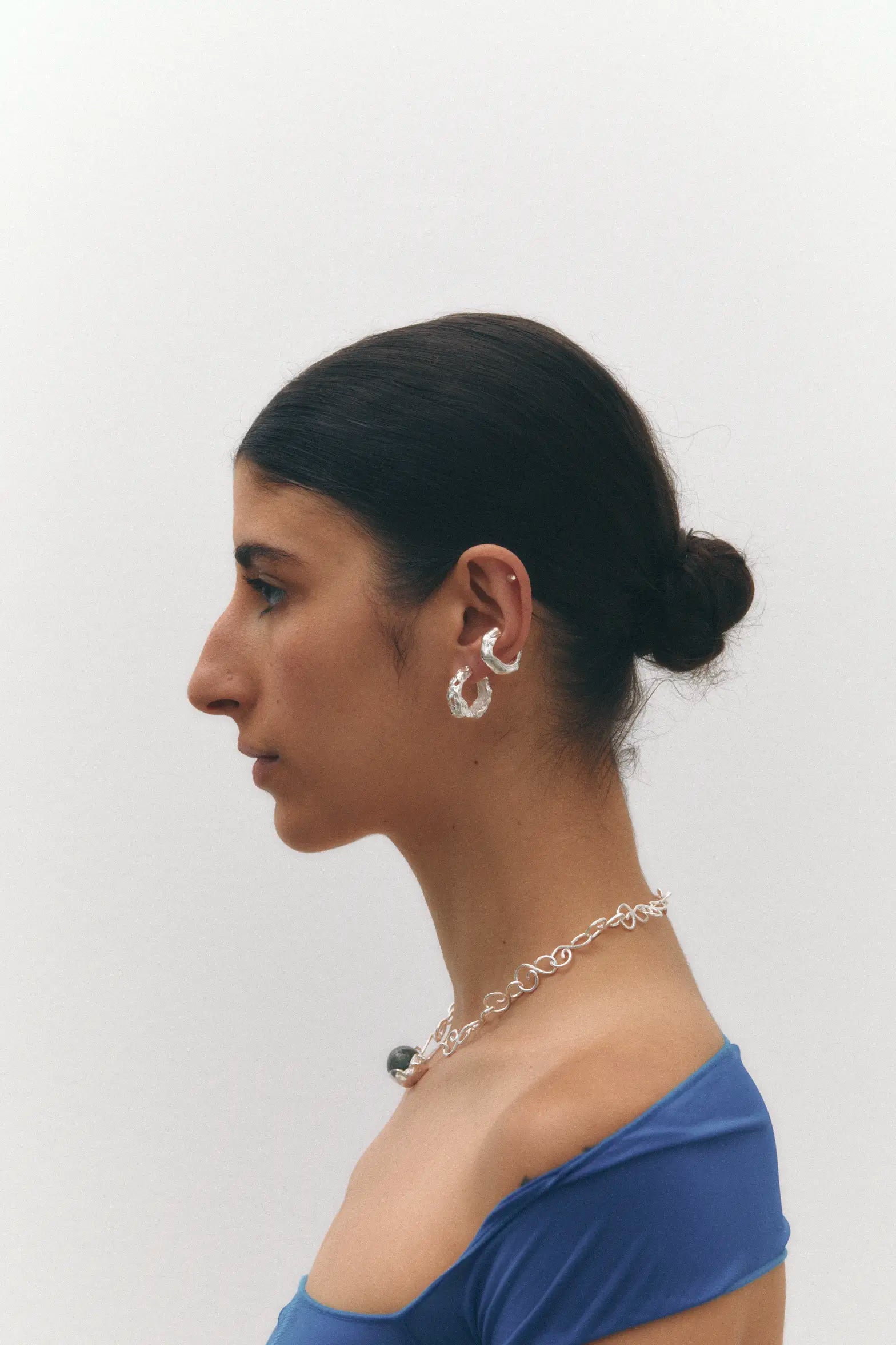 Cabo, handmade recycled 925 sterling silver hoop earrings with texture.