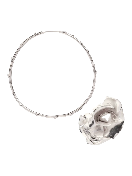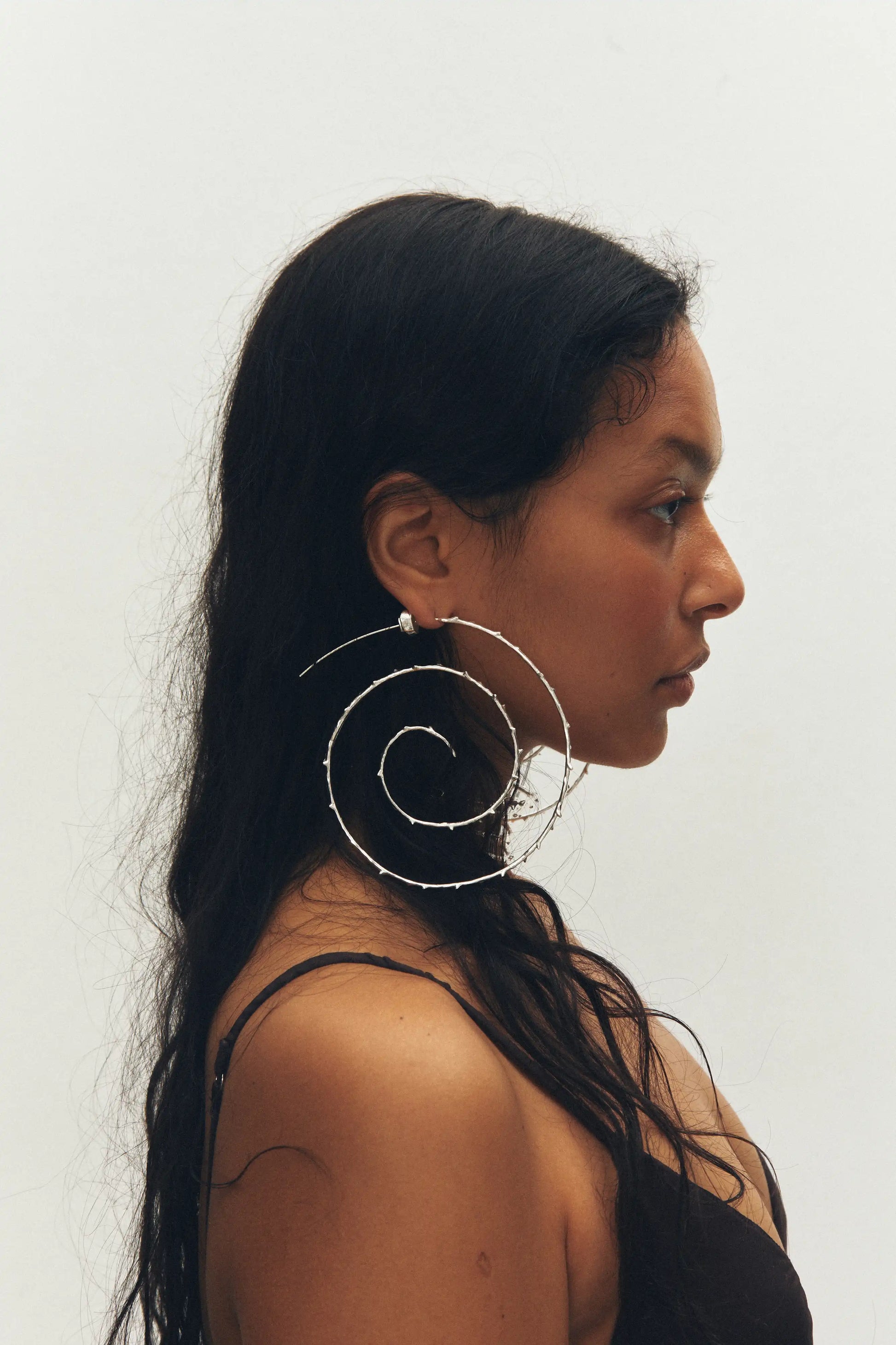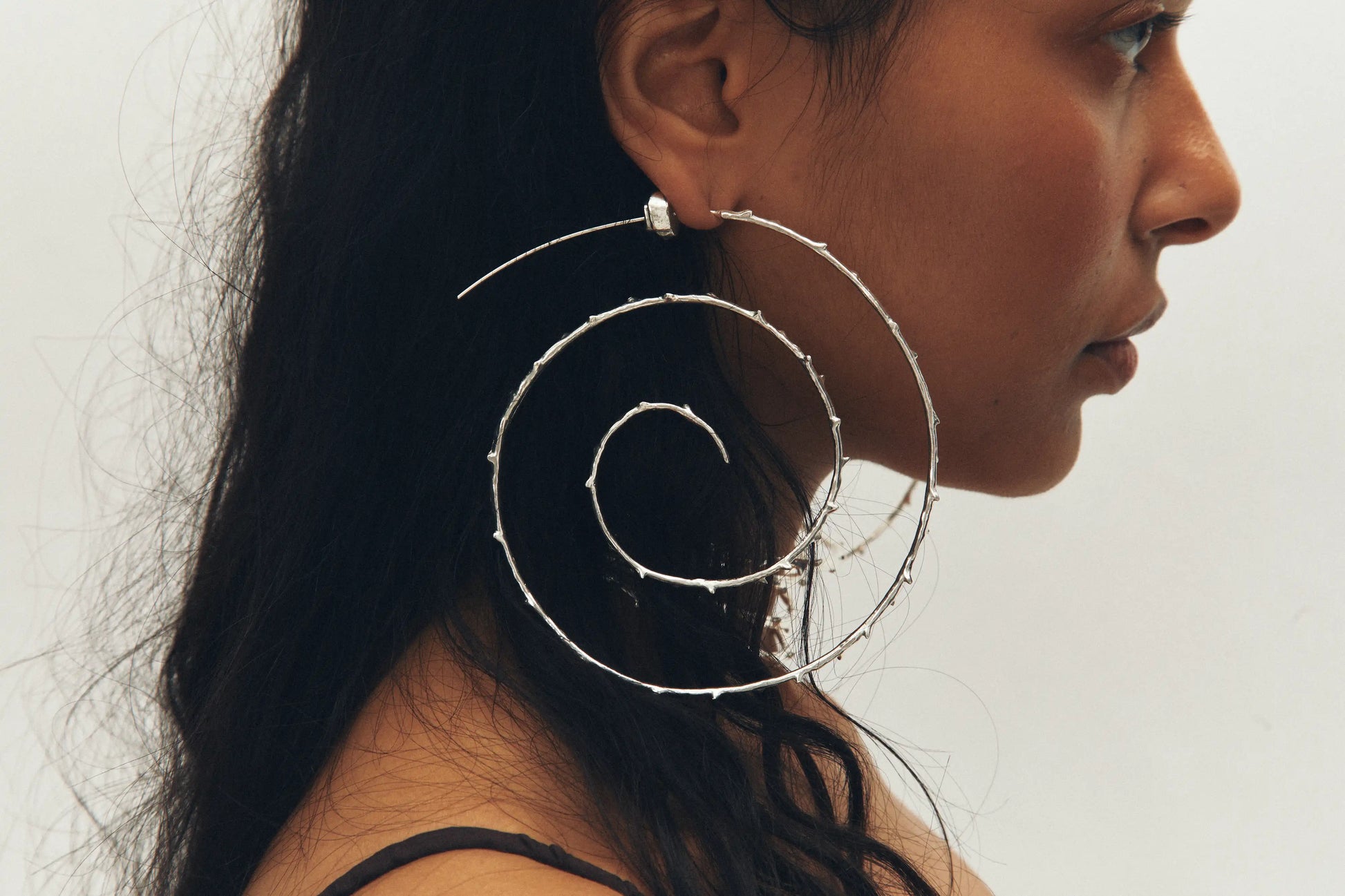 Espiña, handmade recycled 925 sterling silver hoop earrings.