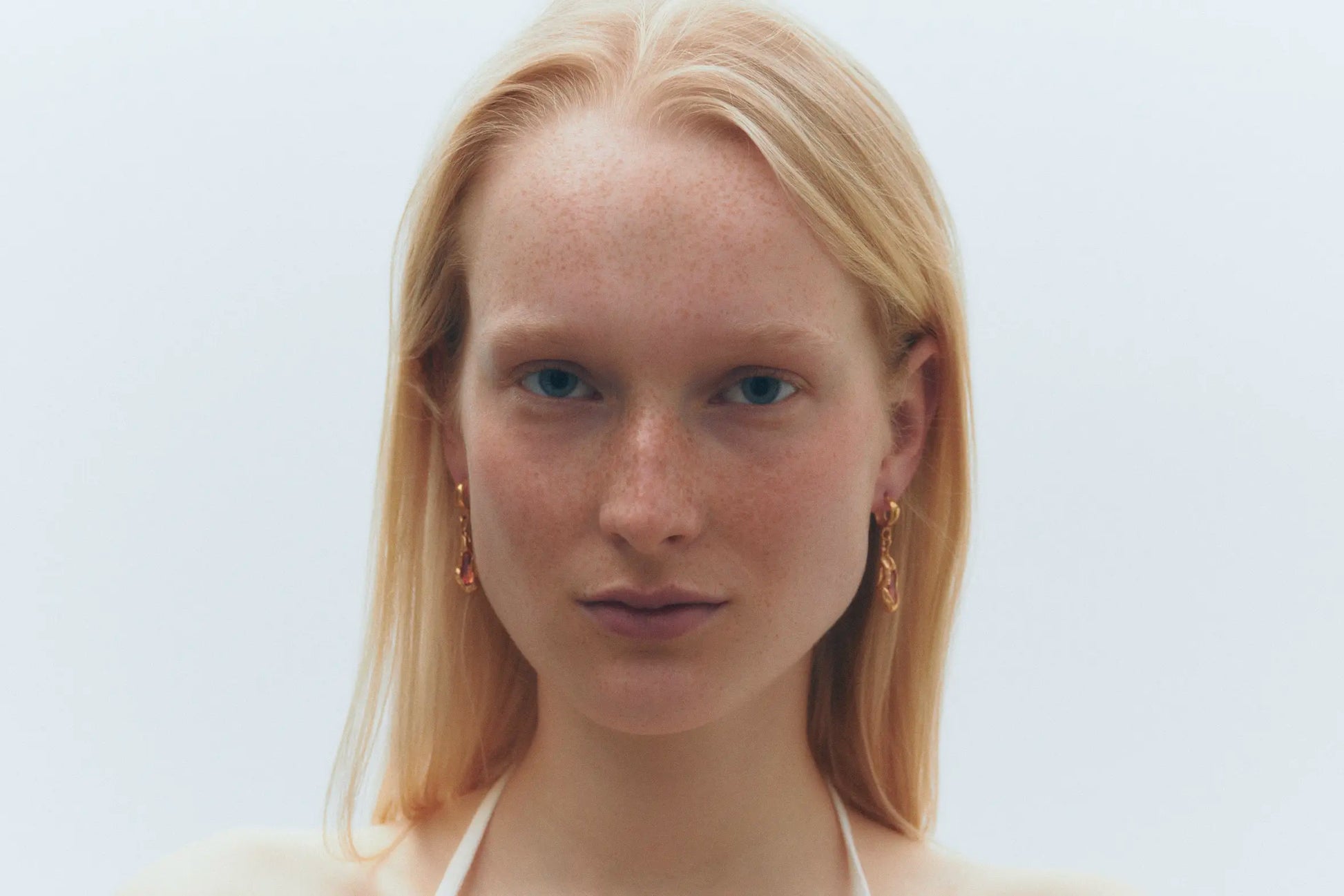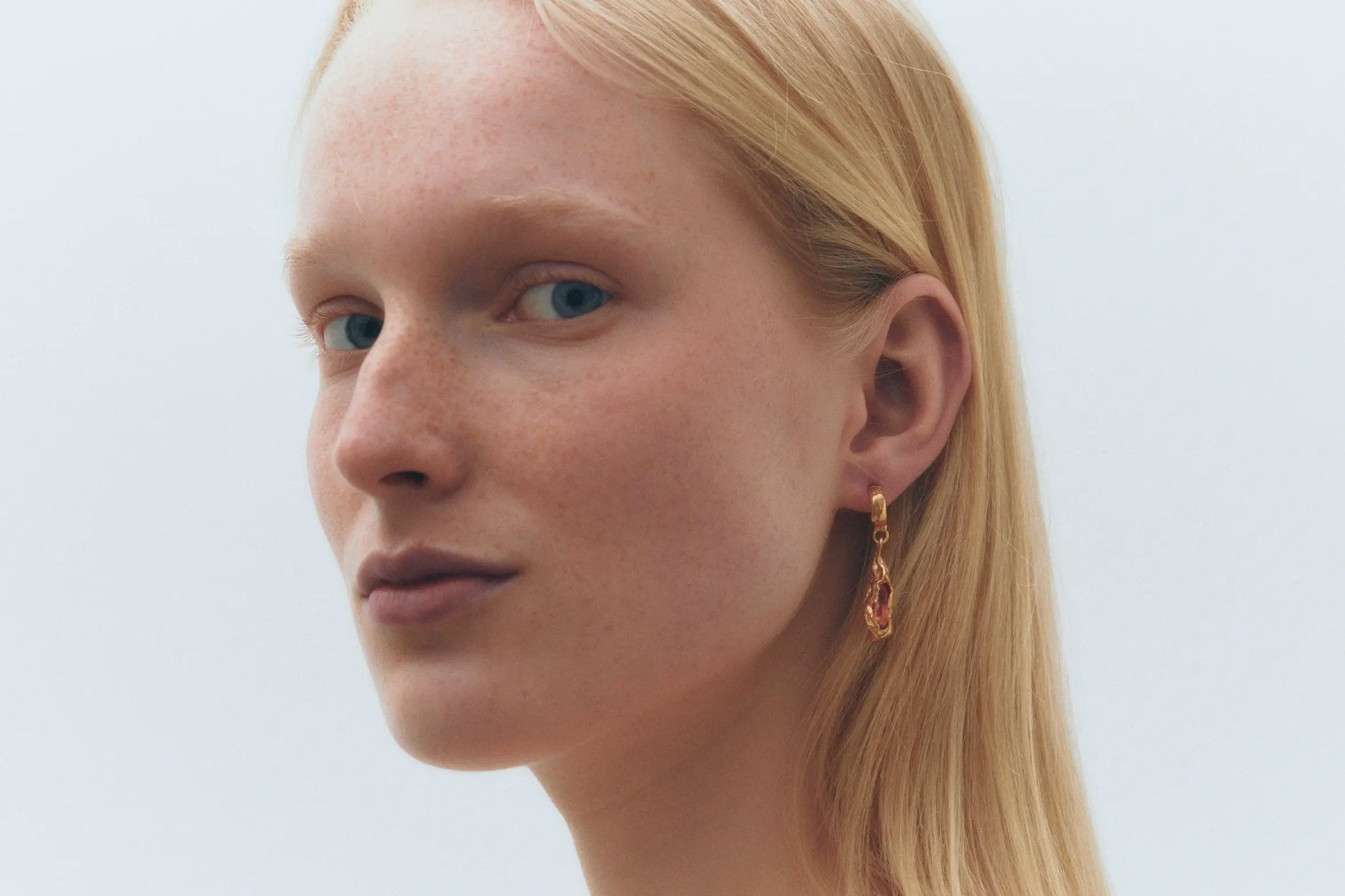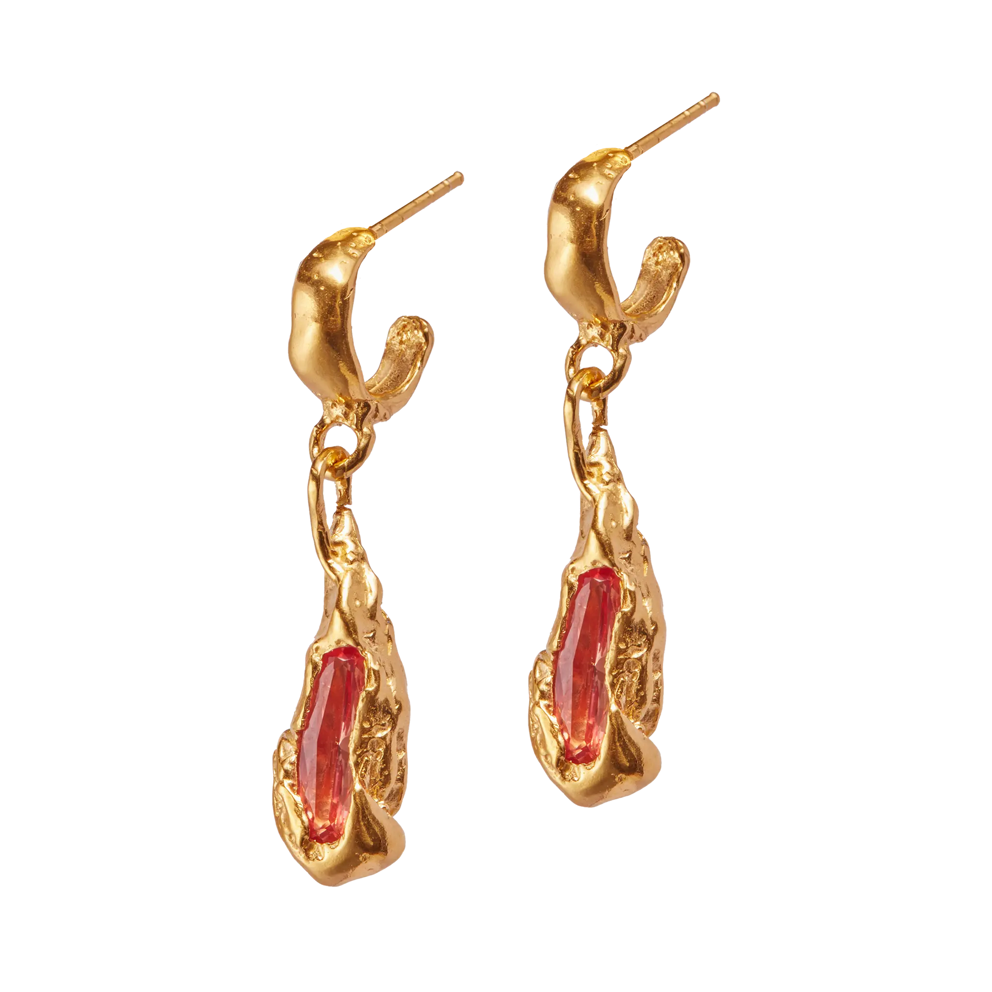 Naranja Hoop, handmade gold plated long earrings with citrine stone.