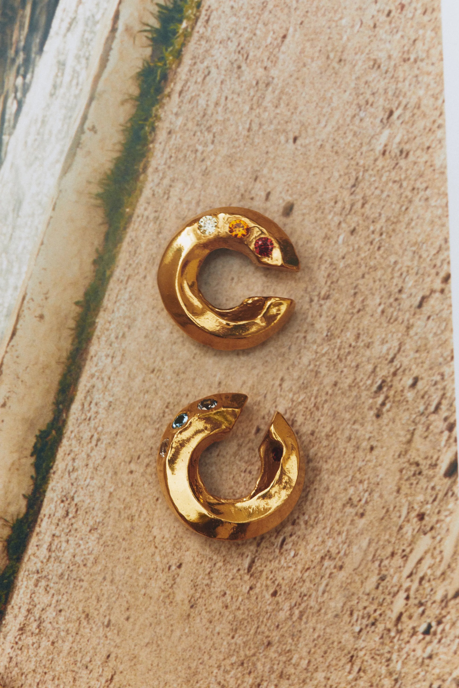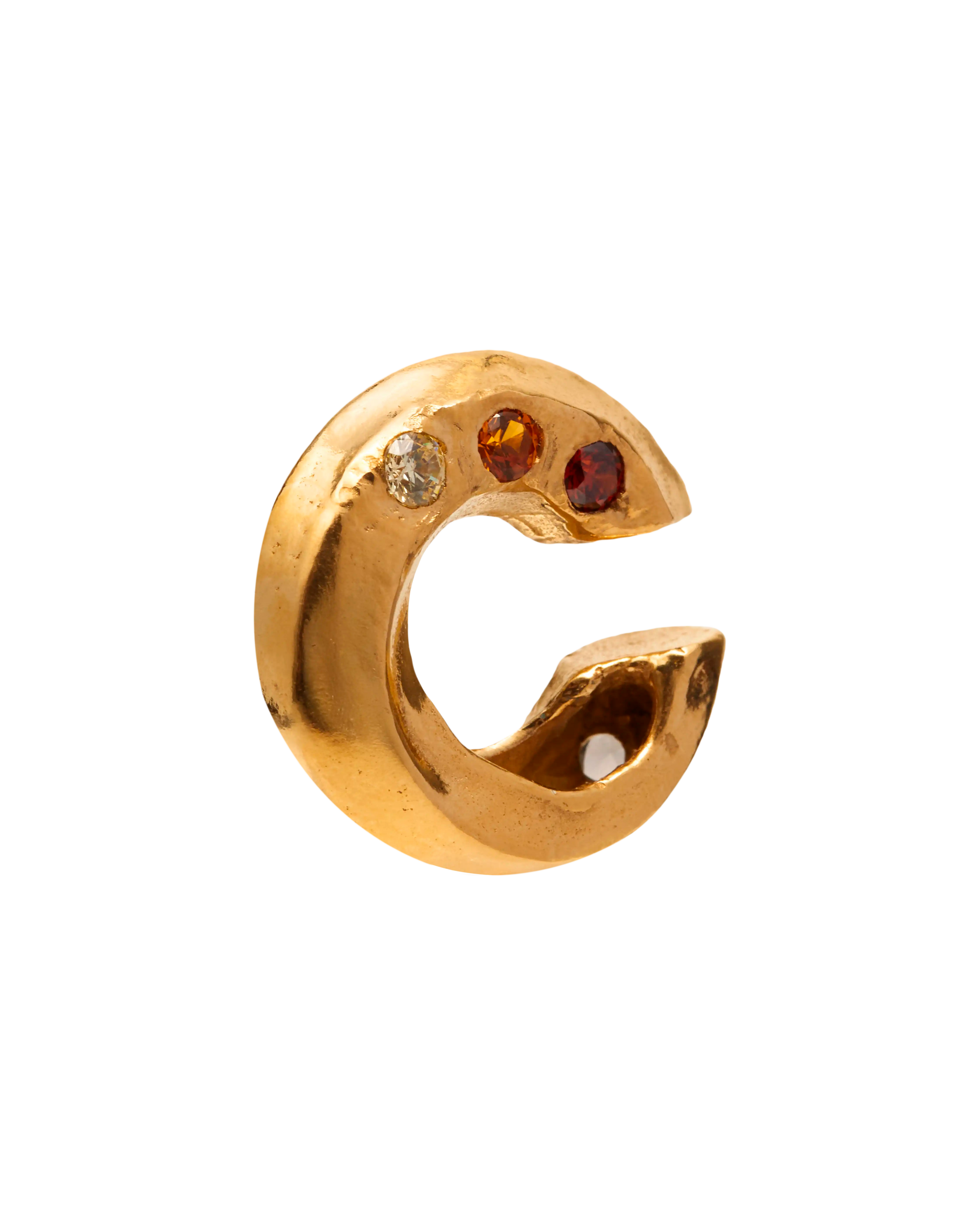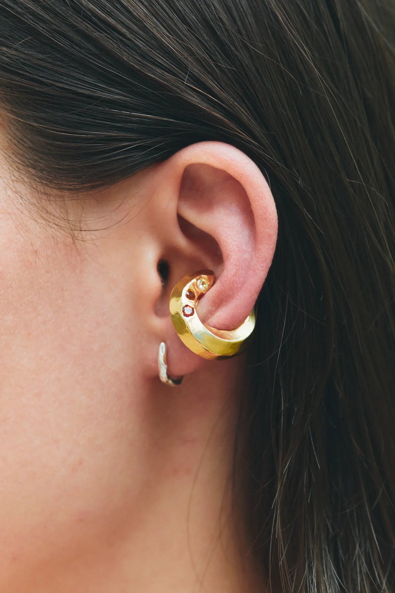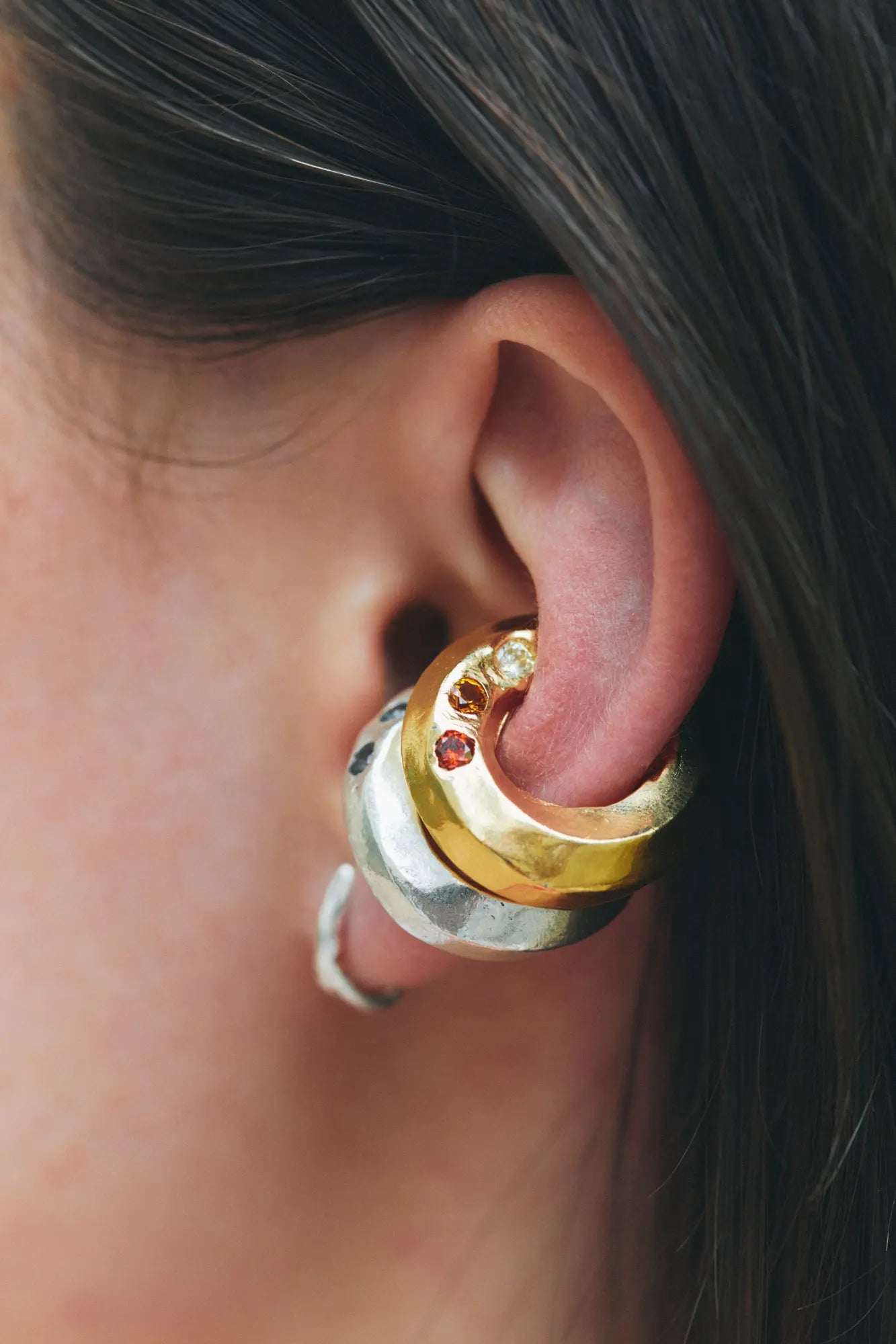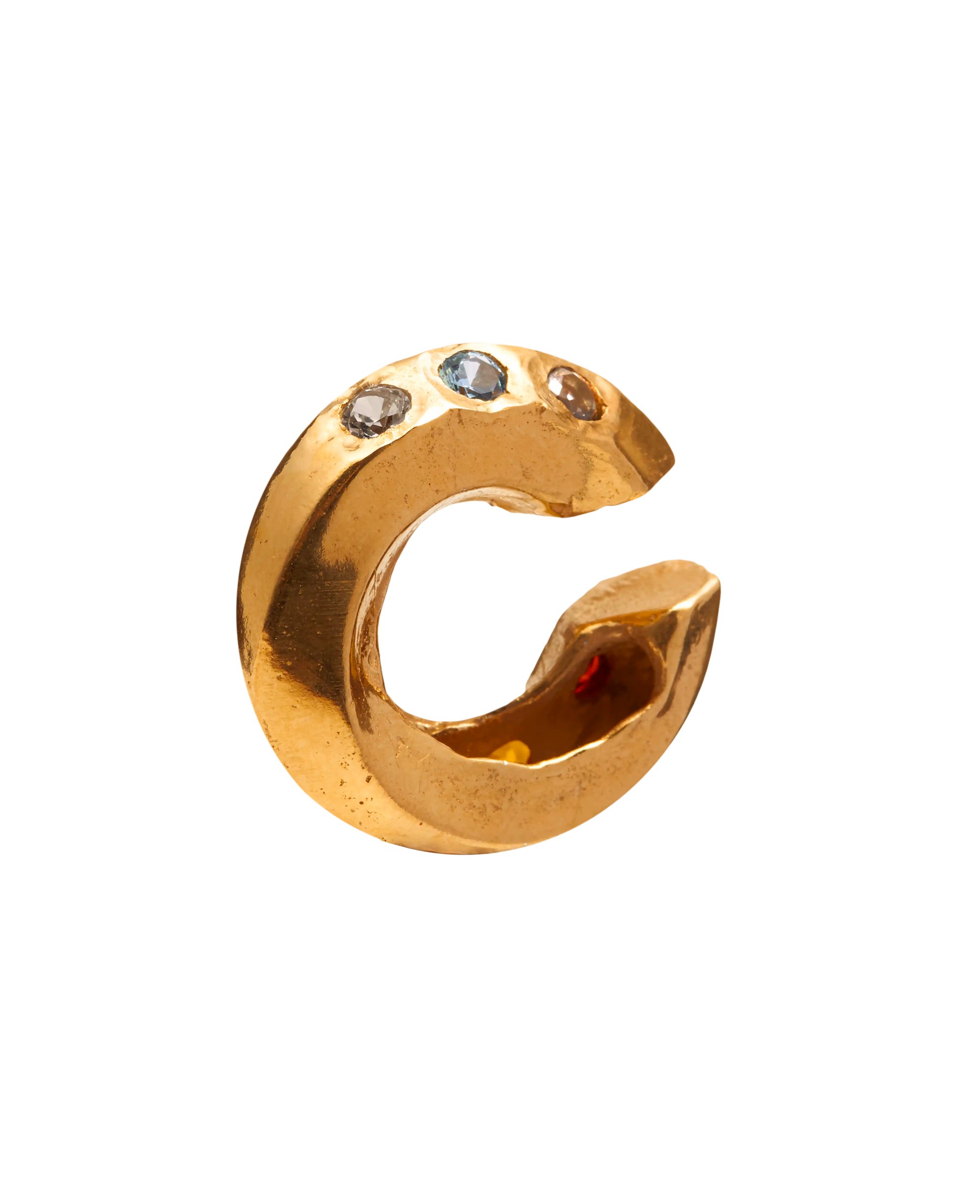 Sol y sombra, handmade gold plated ear cuff with Cubic Zirconia, Lab-Grown Sapphire and Lab-grown Nano Crystal stones.