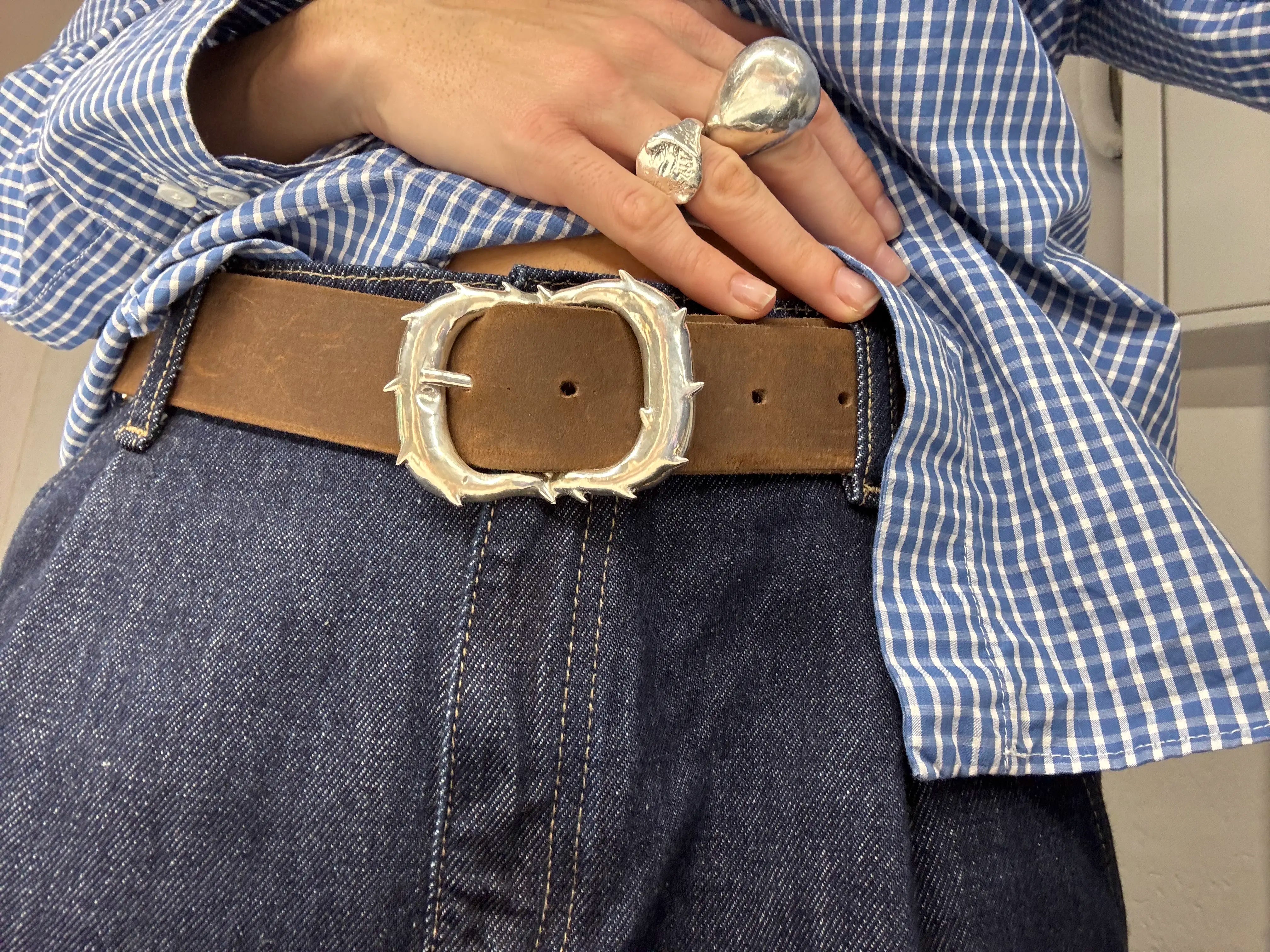 Una hebilla escultórica elaborada con metales preciosos, inspirada en las espinas de una rosa.