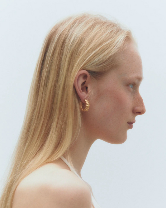 Fada L, pendiente artesanal bañado en oro. Este pendiente se vende por unidad.