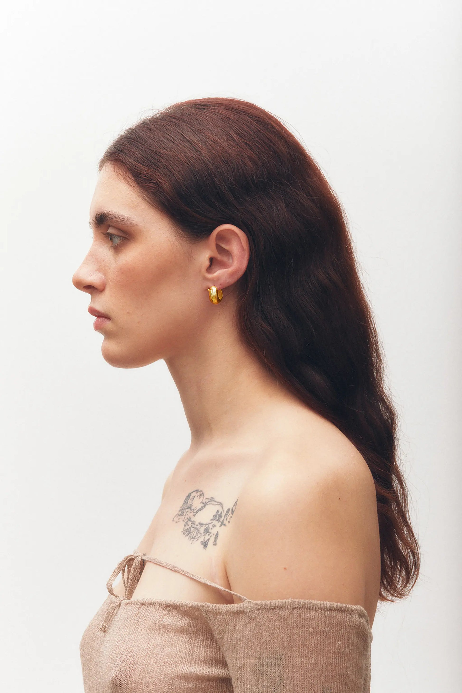 Fada S, pendiente artesanal bañado en oro. Este pendiente se vende por unidad.